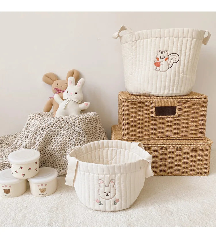 Premium Cotton Fabric: The main material, soft and durable cotton fabric, ensures a gentle touch for your baby's delicate items while maintaining a sturdy structure.