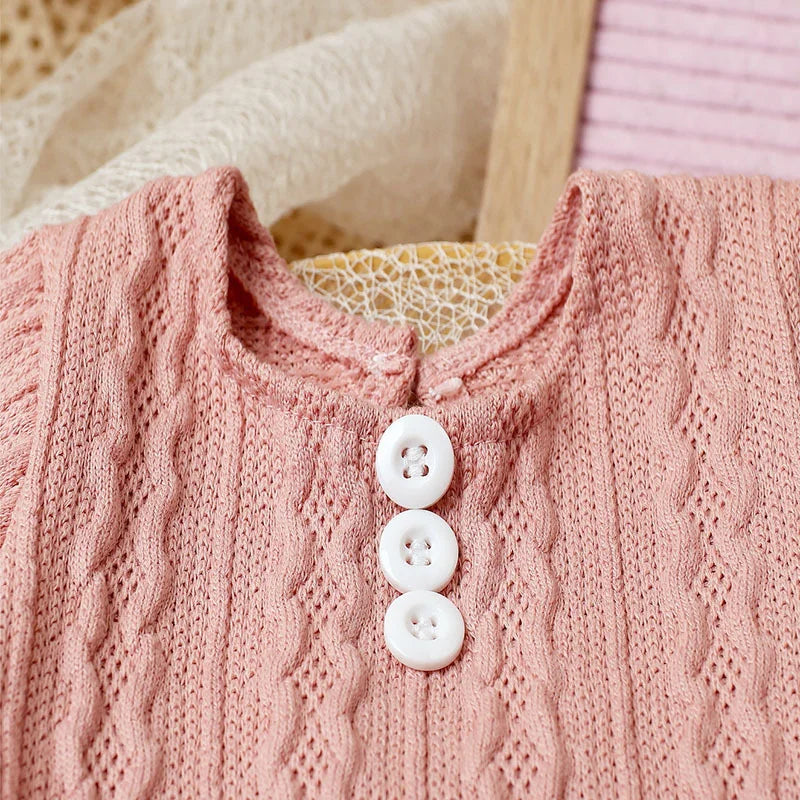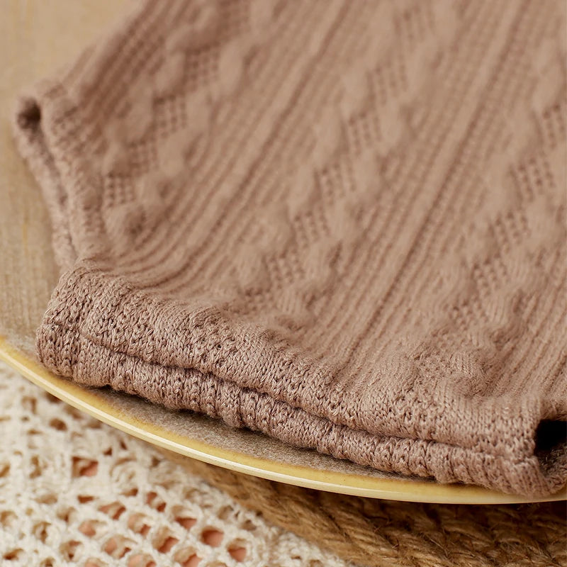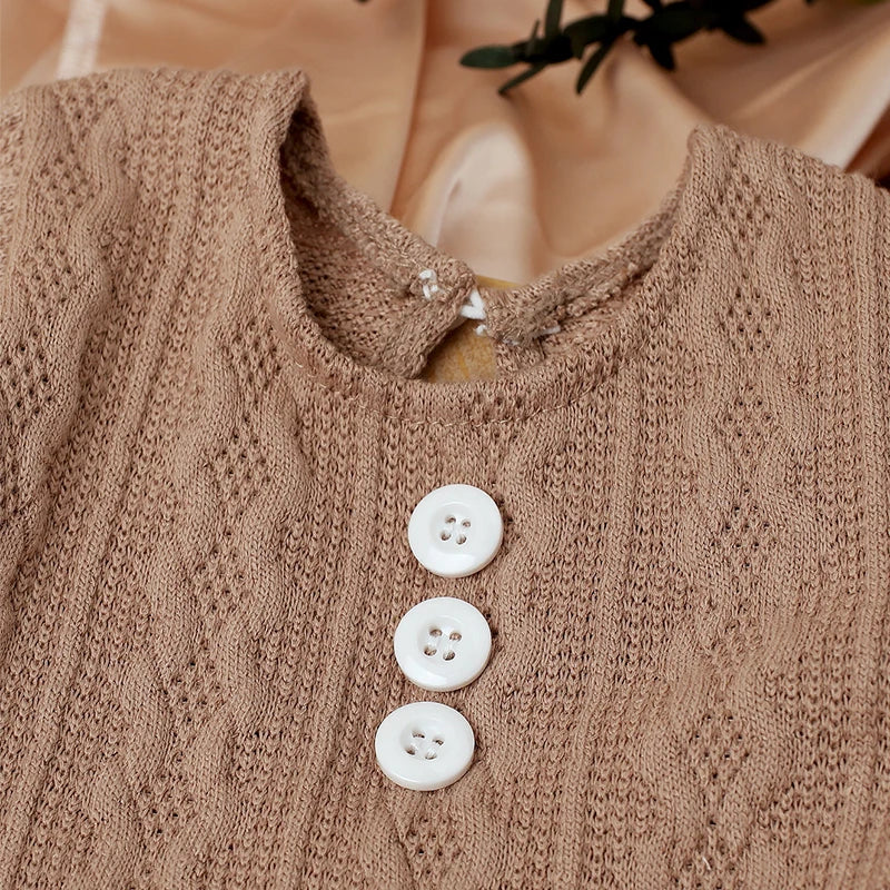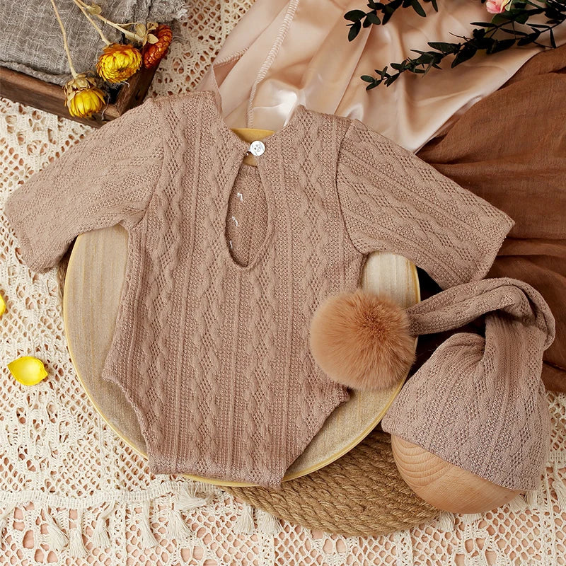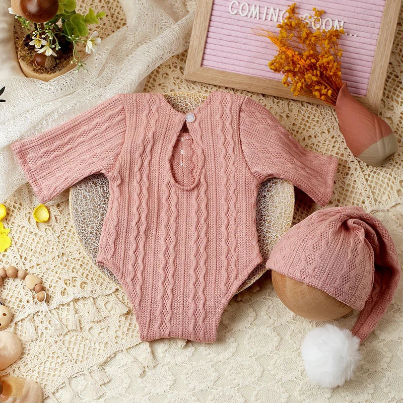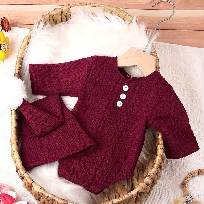 Charming Design: Crafted from soft and cozy polyester material, this knitted jumpsuit set features a timeless design that adds a touch of sweetness to your newborn's first photoshoot.