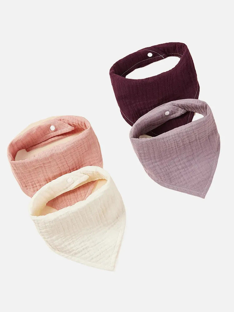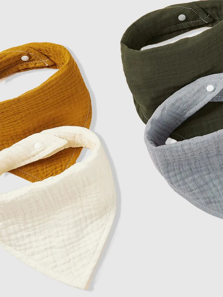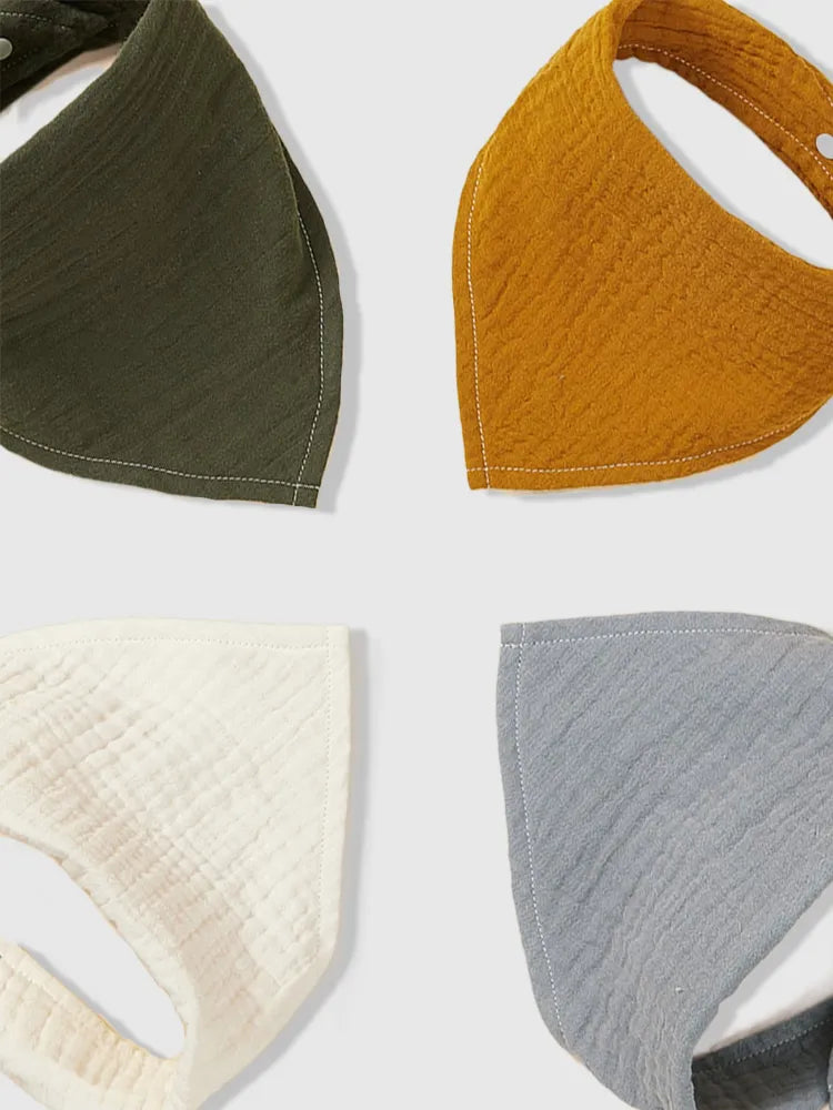 Ideal for newborns up to 18 months, this 4-pack set guarantees you always have a fresh and stylish bib on hand. Whether it's playtime at home or outings with family, our Bandana Drool Bibs add a touch of charm to every moment.