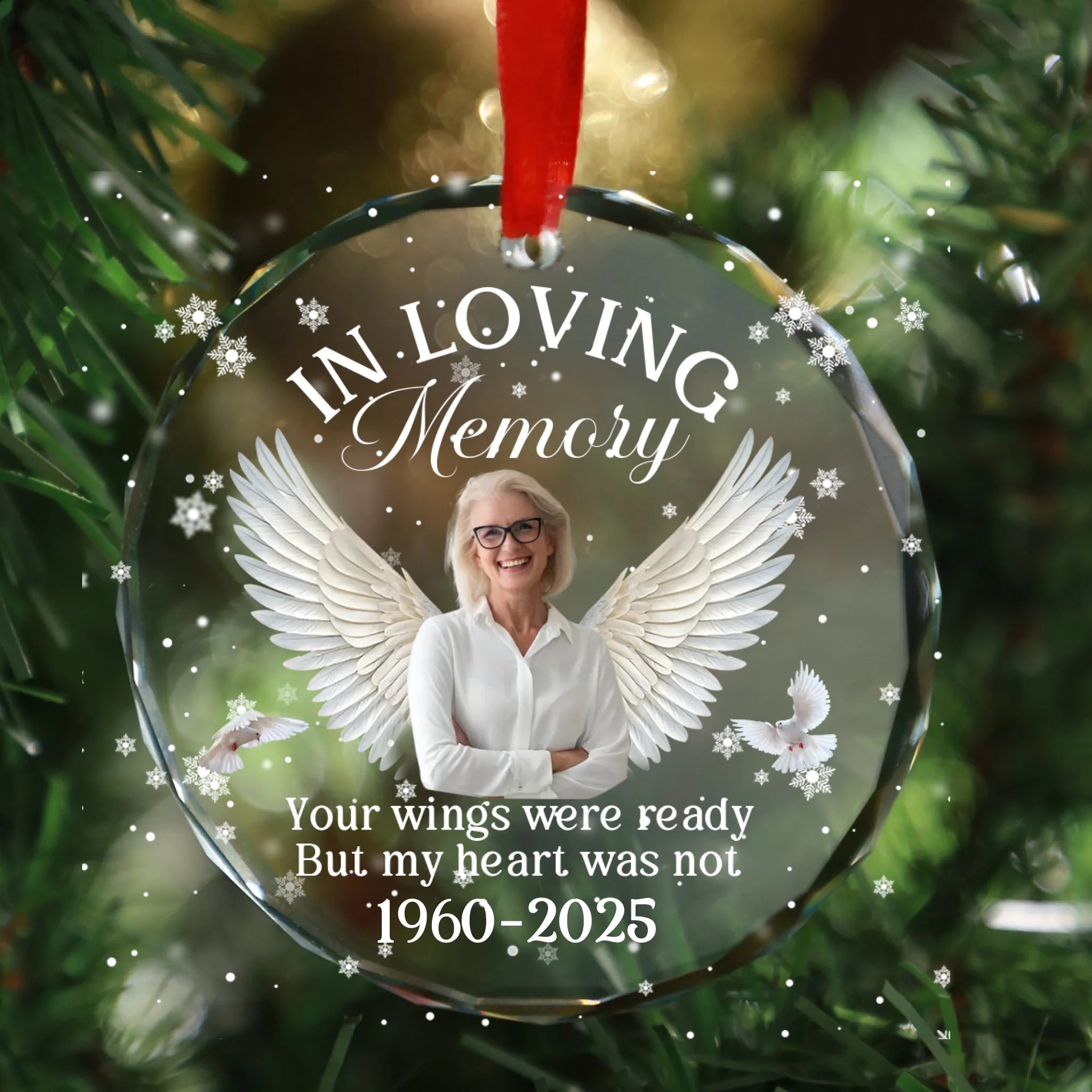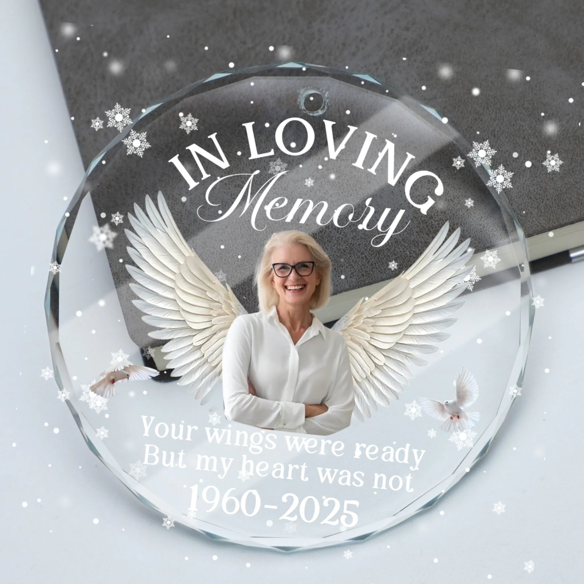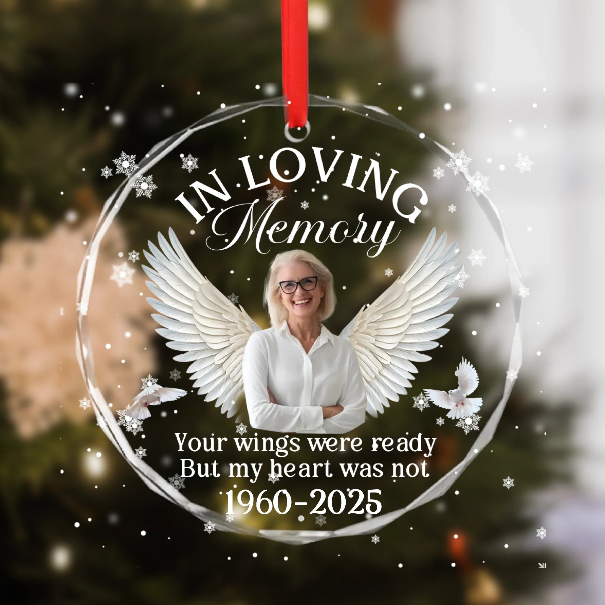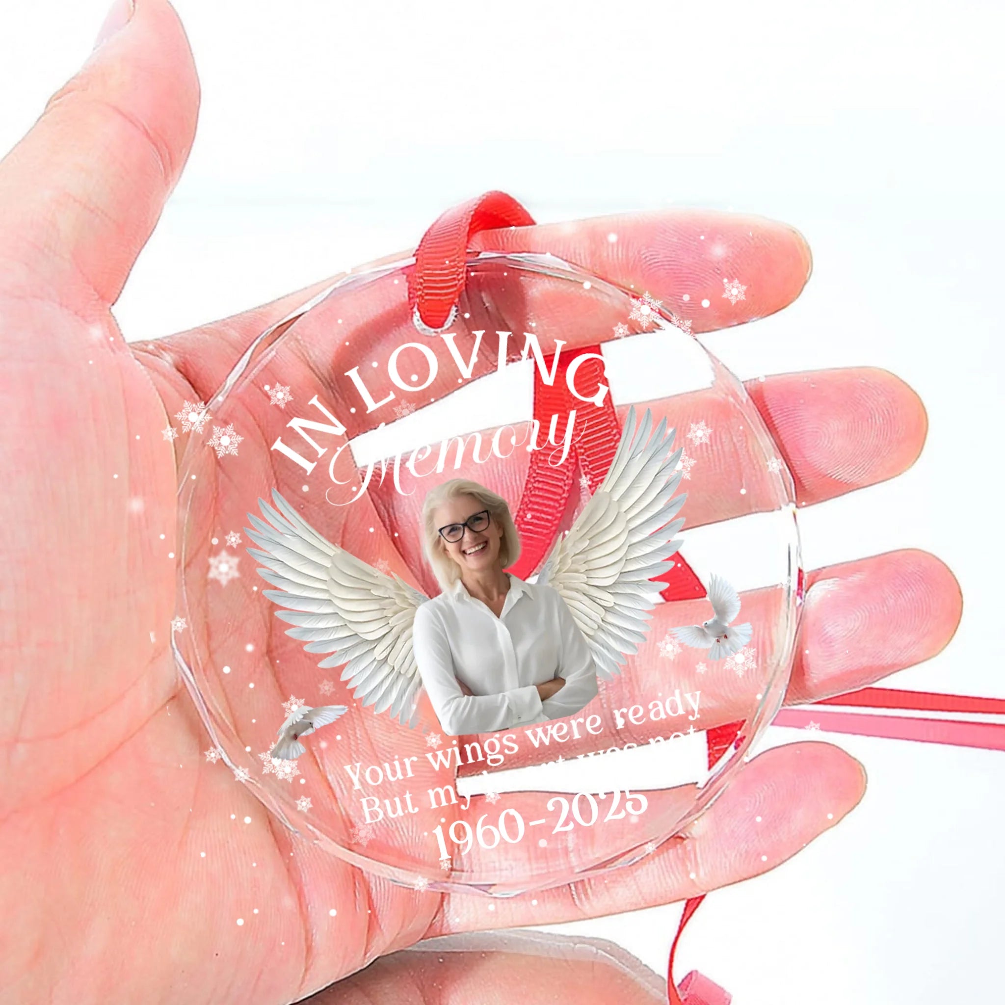 Personalized Angel Wings Memorial Ornament – In Loving Memory Custom Photo Circle Glass Keepsake for Loss of Loved One