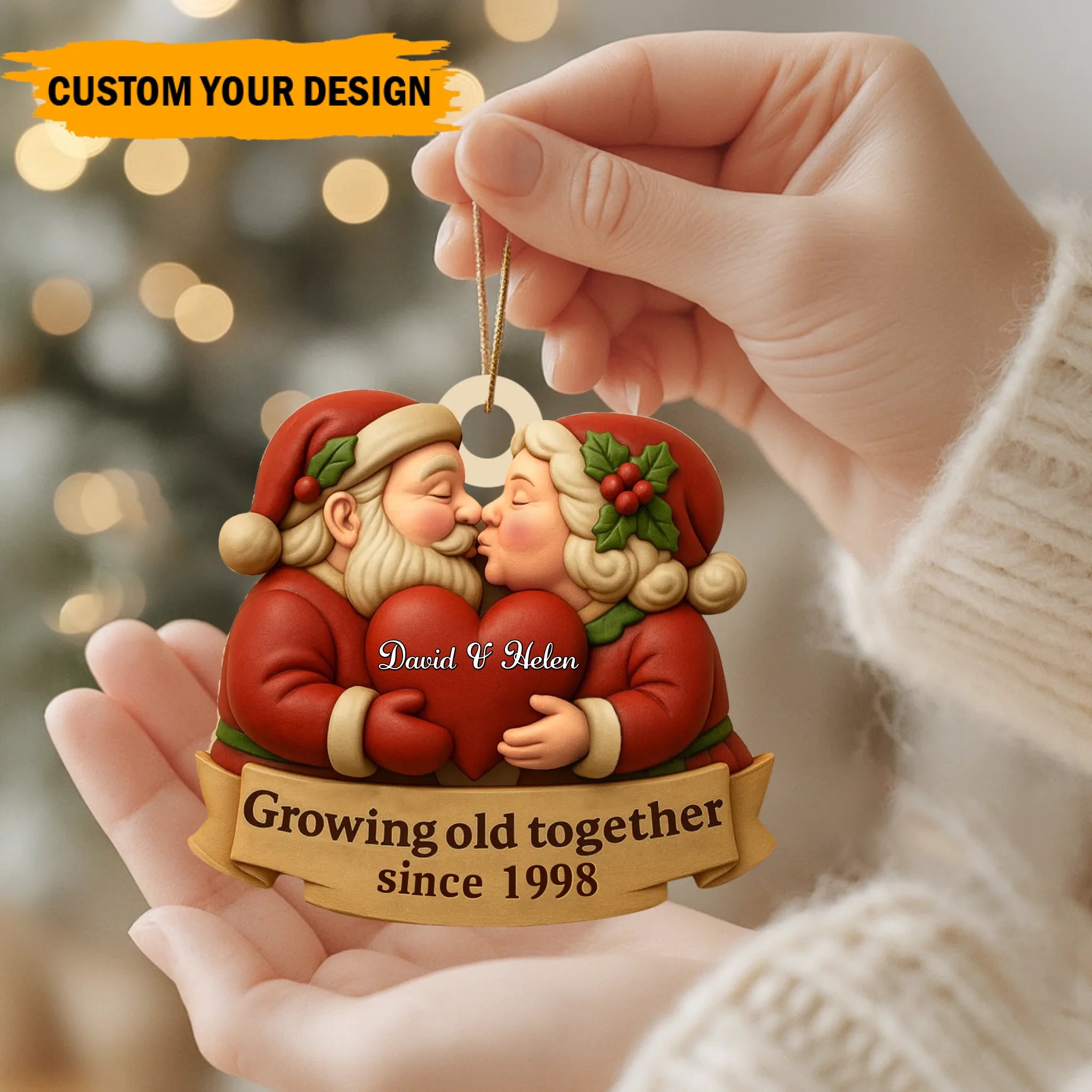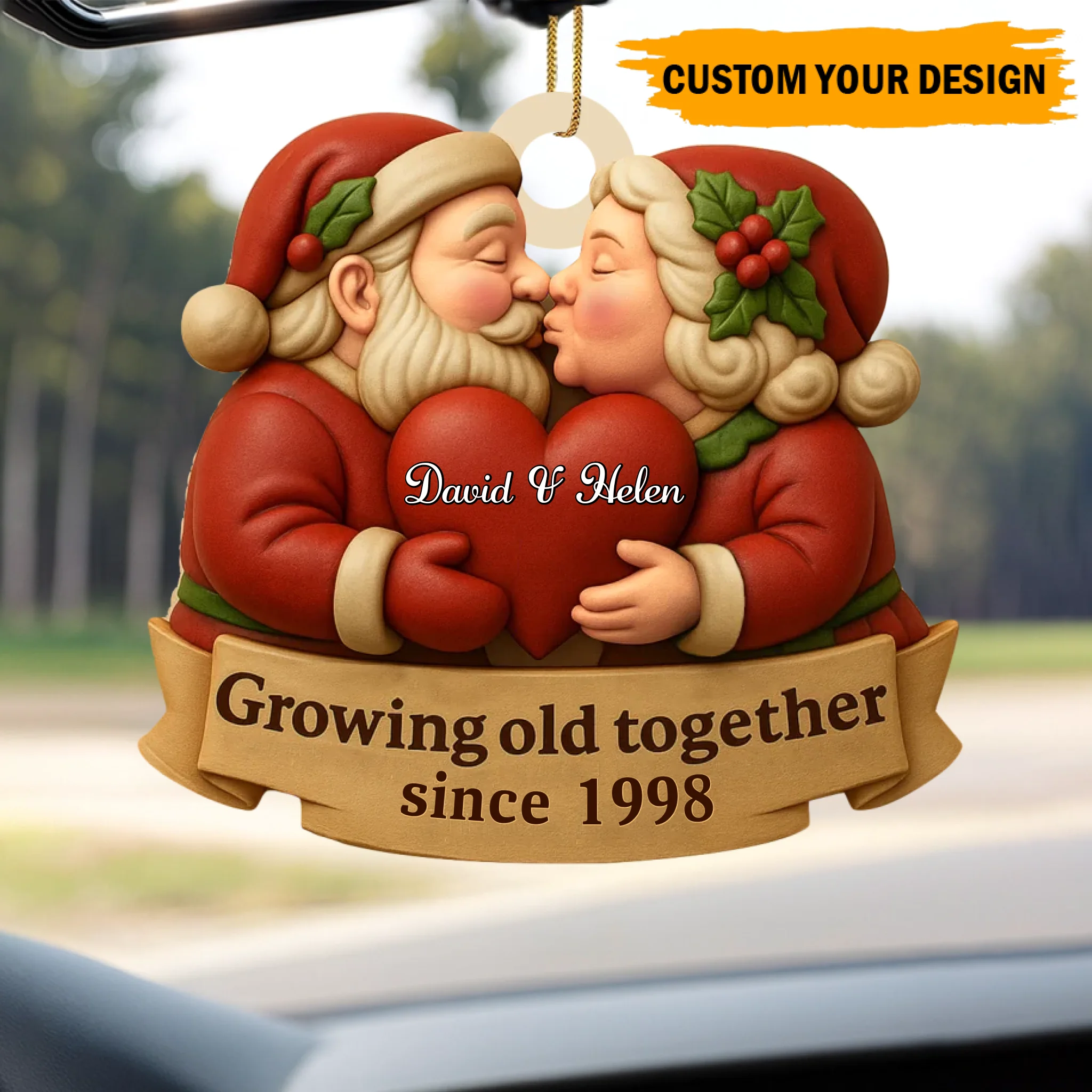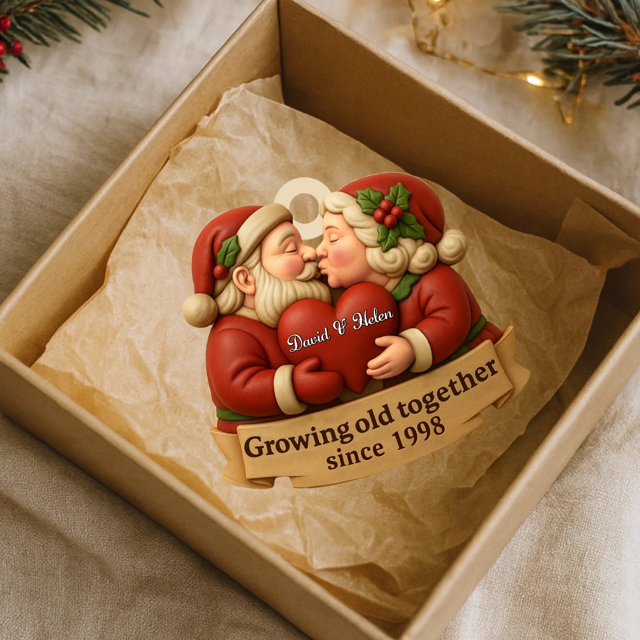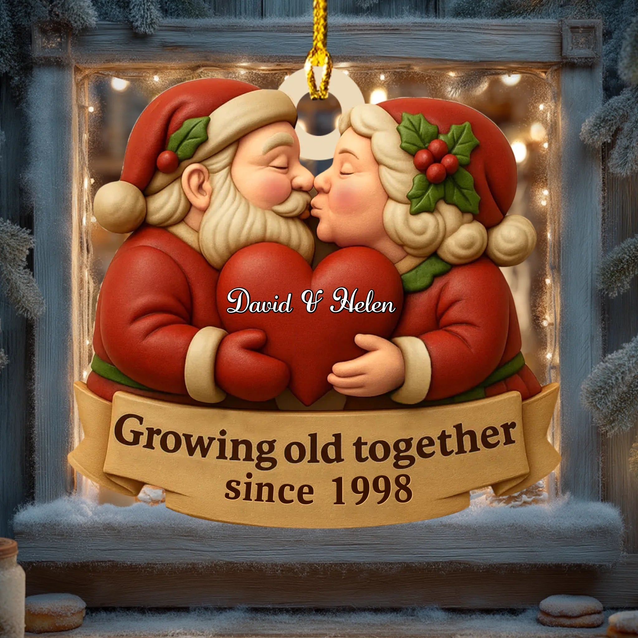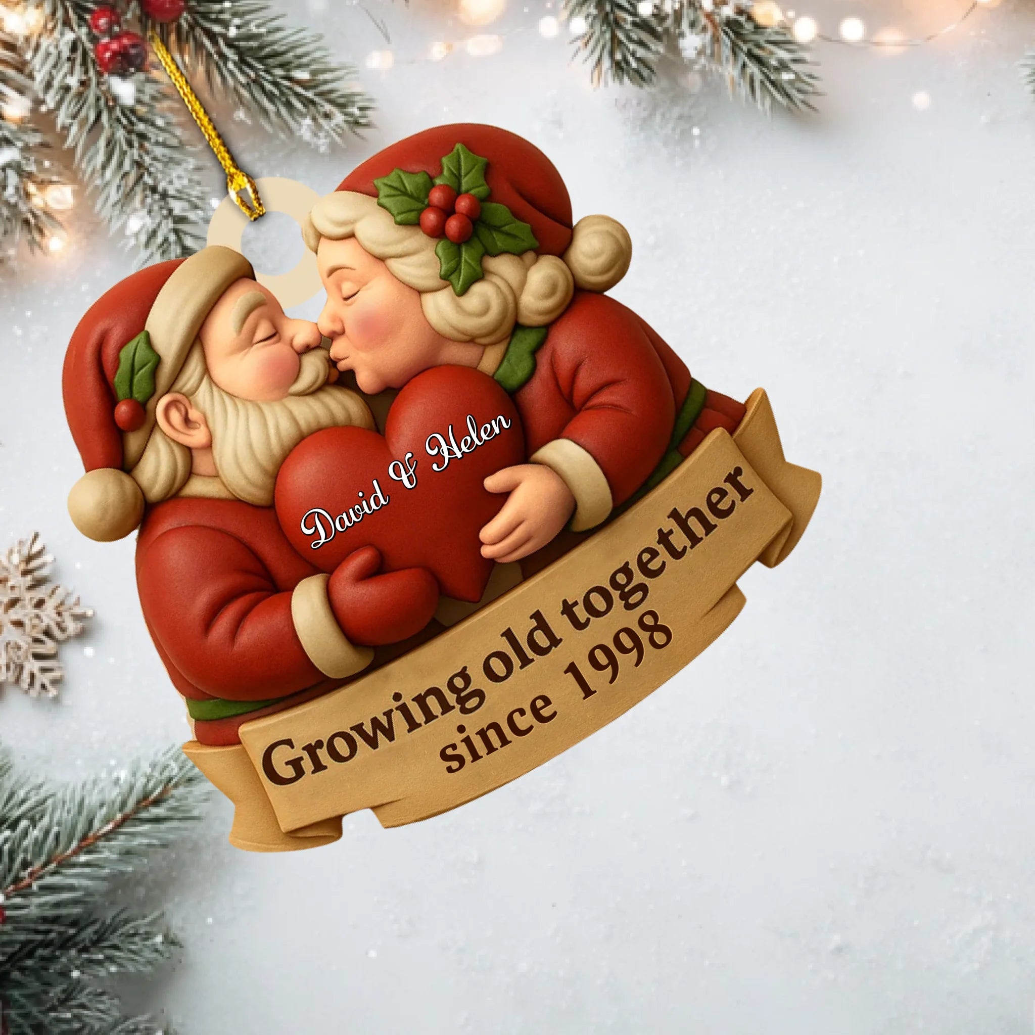 Personalized Couple Santa Wooden Ornament – Custom “Growing Old Together Since [Year]” Christmas Gift for Couples, Parents, or Grandparents