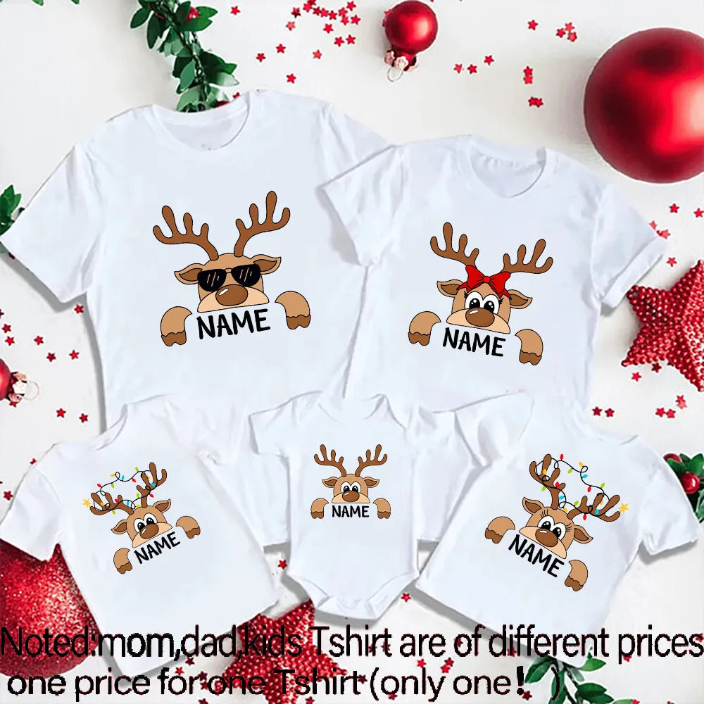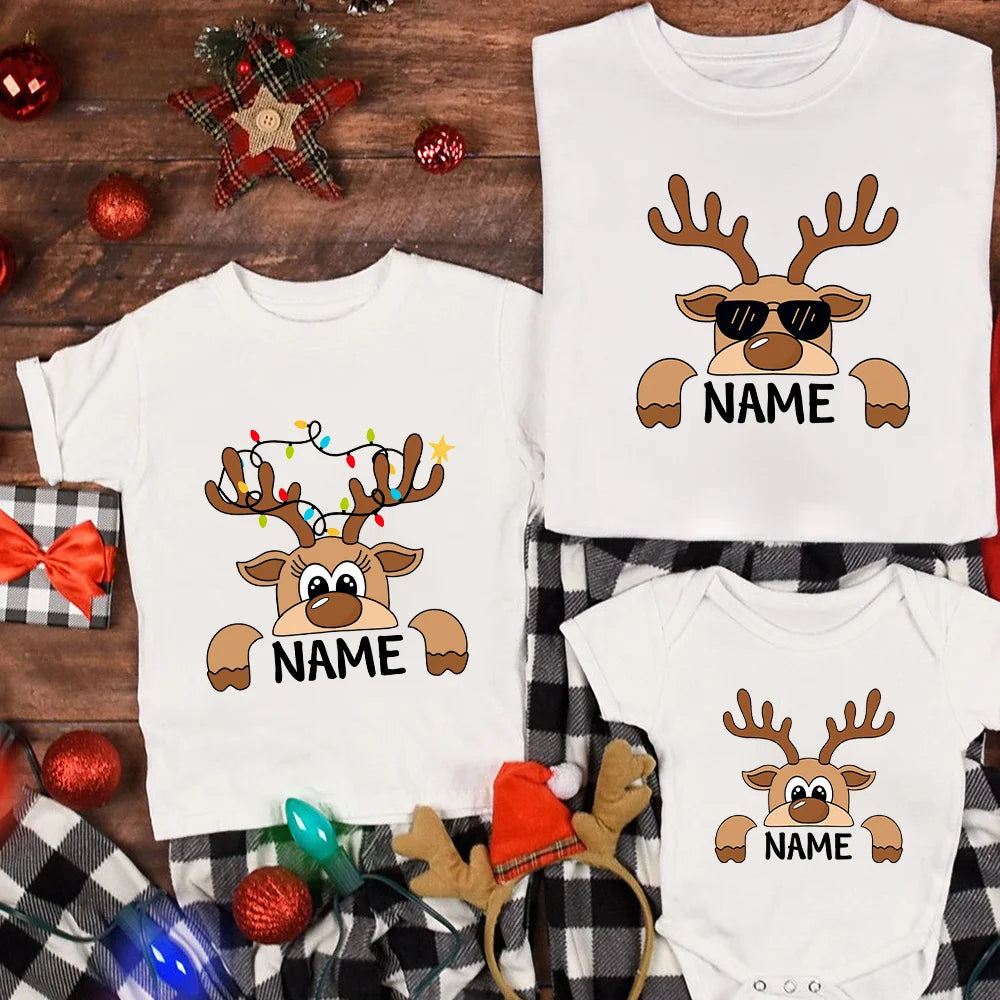 Personalized Family Christmas Reindeer Shirts Custom Family Name Matching Outfits β Mom, Dad, Kids & Baby