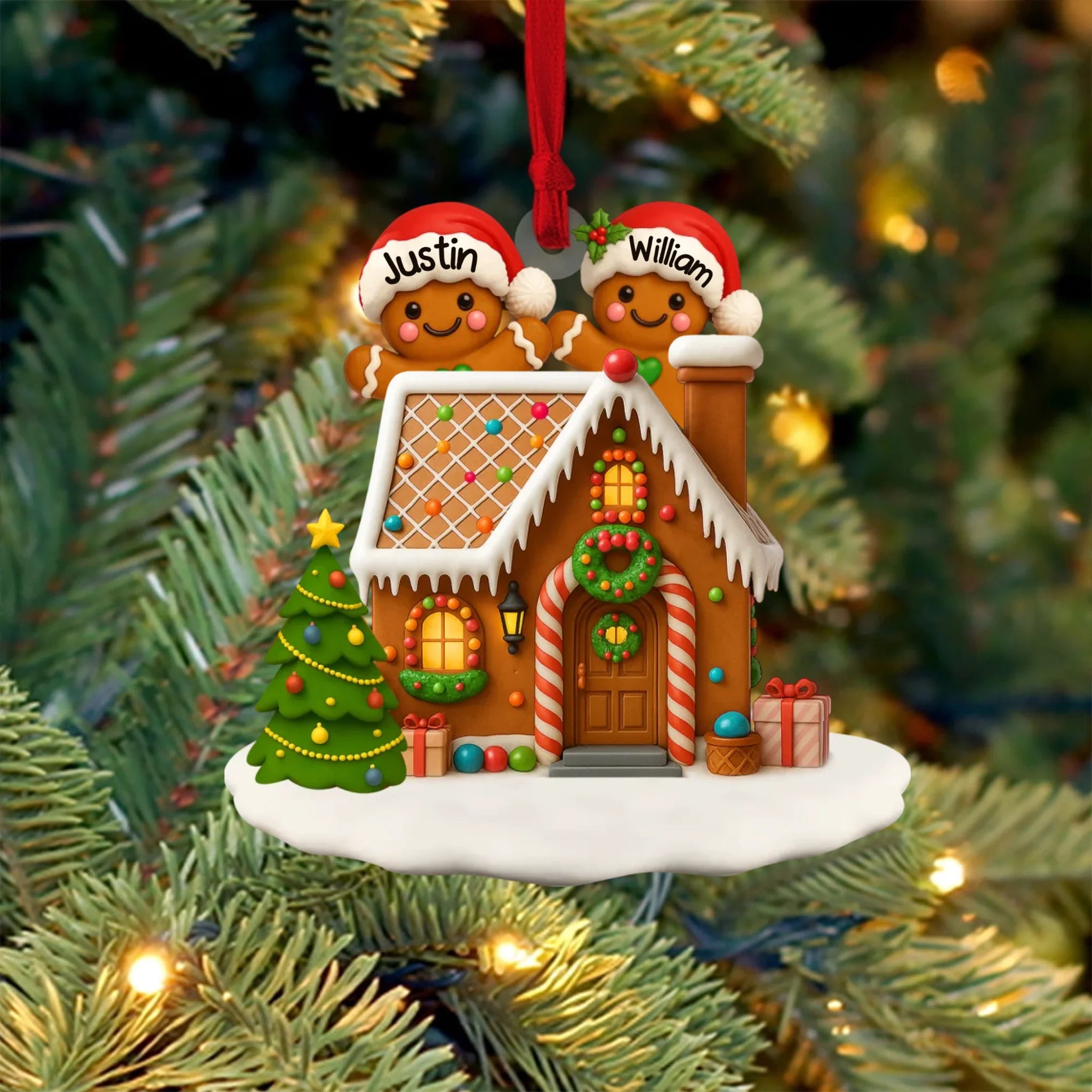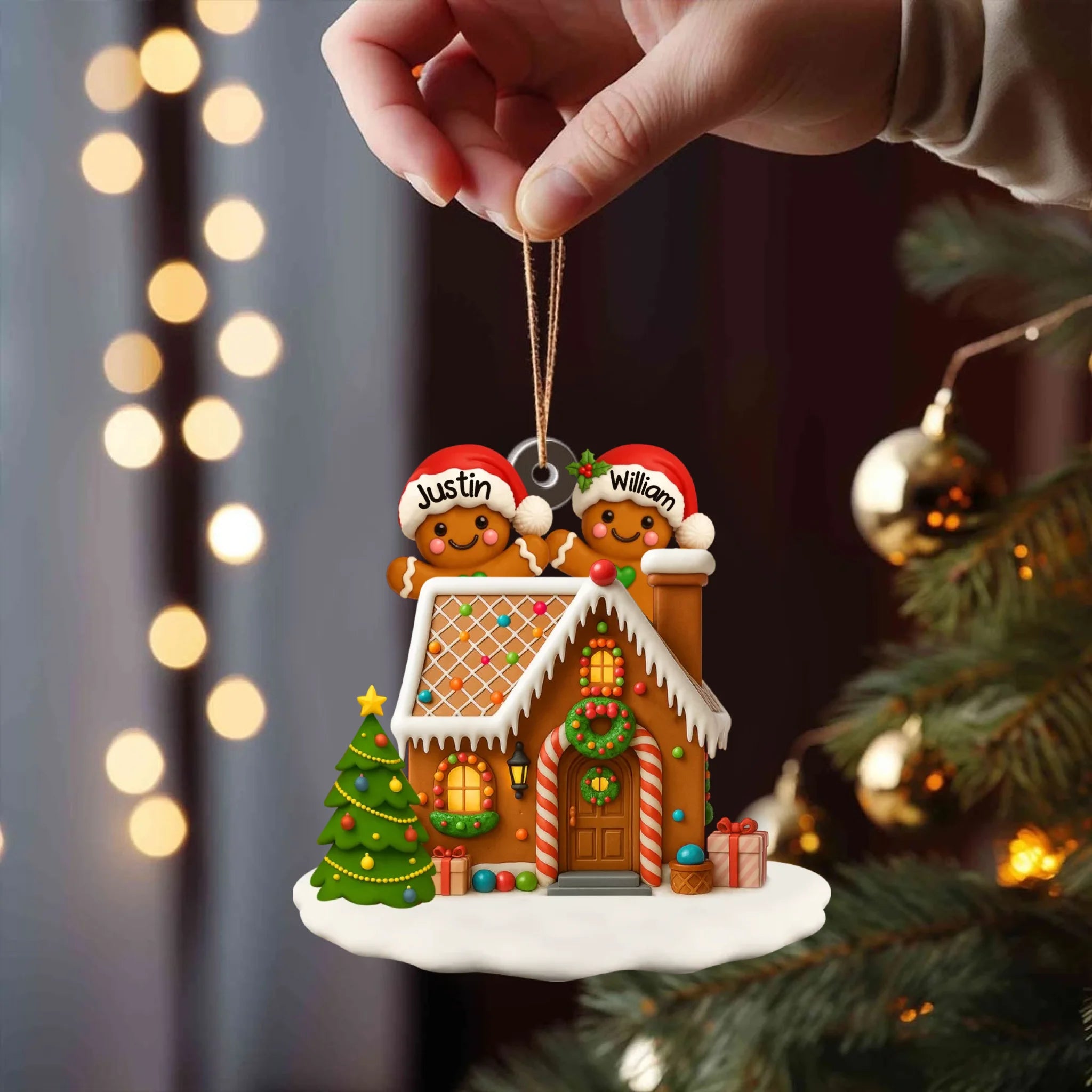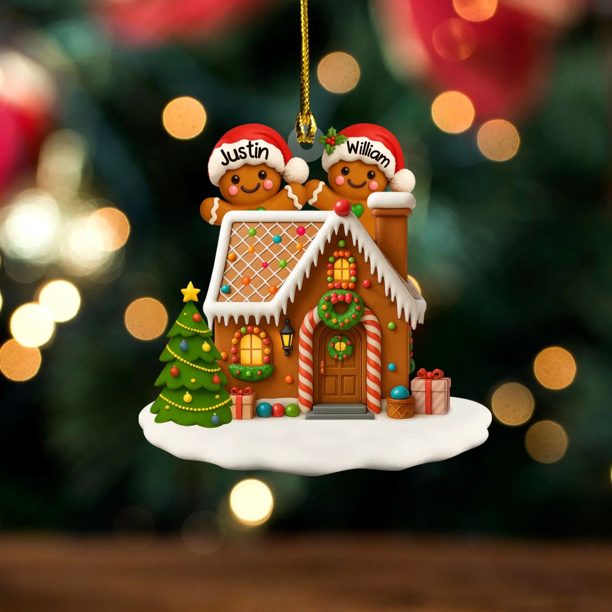 Personalized Gingerbread Family Acrylic Ornament - Christmas Tree & Home Decor Gift
