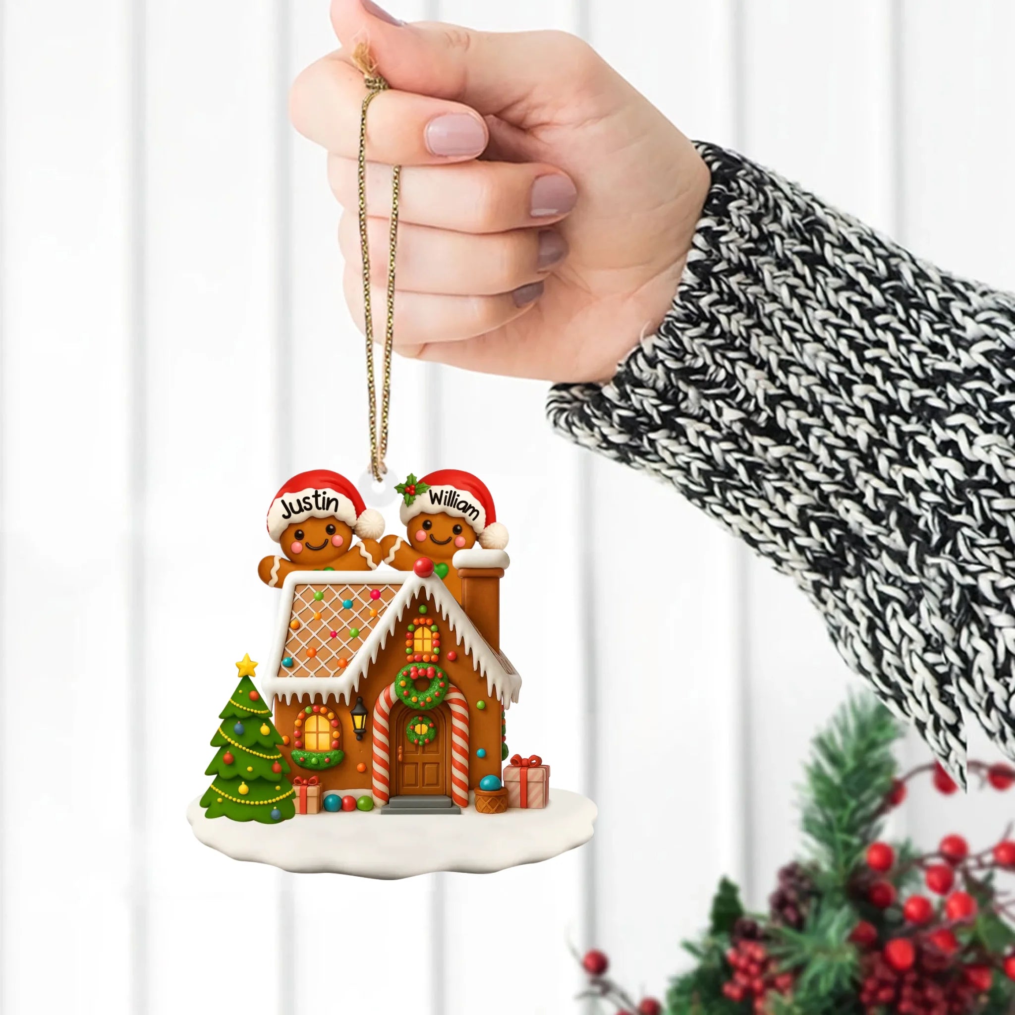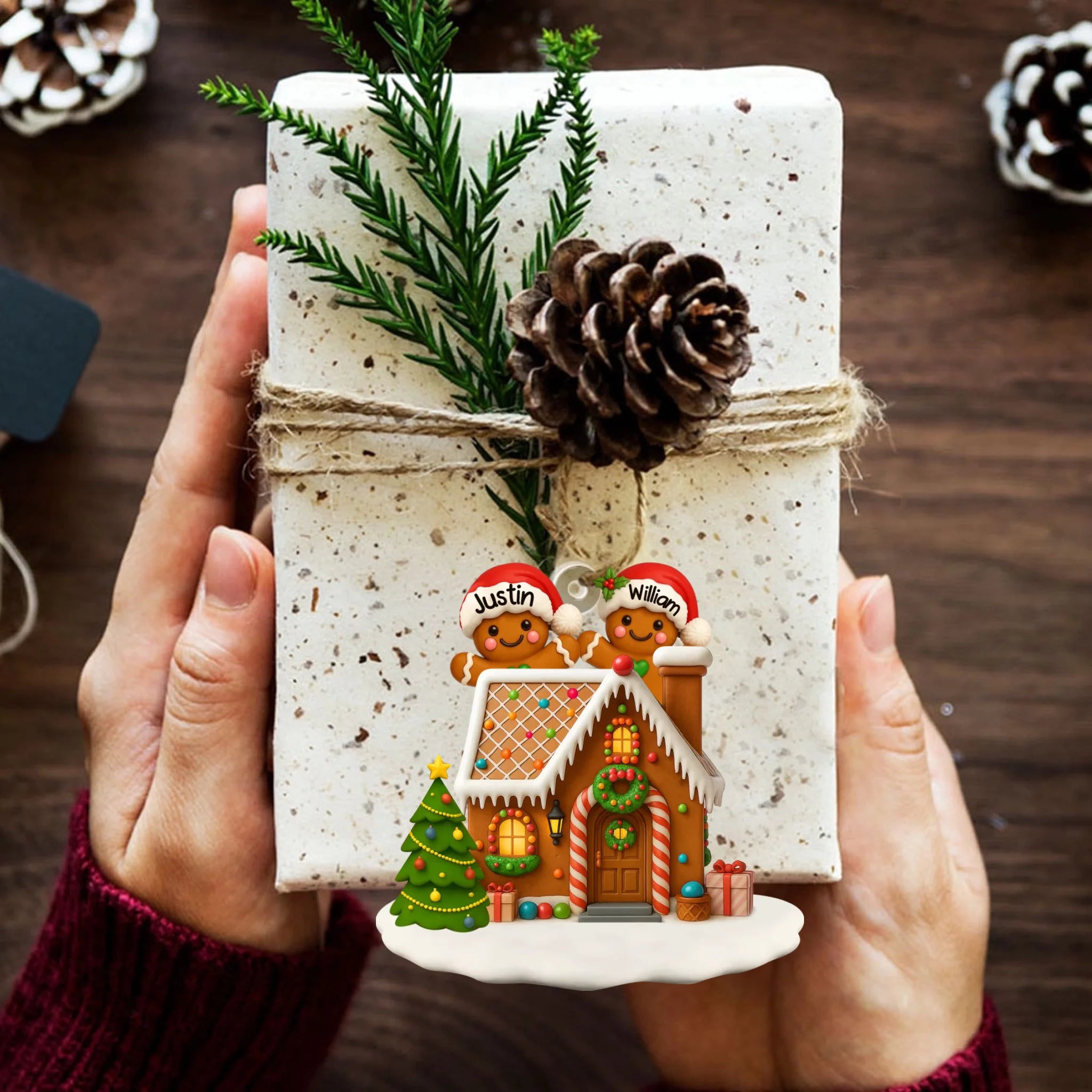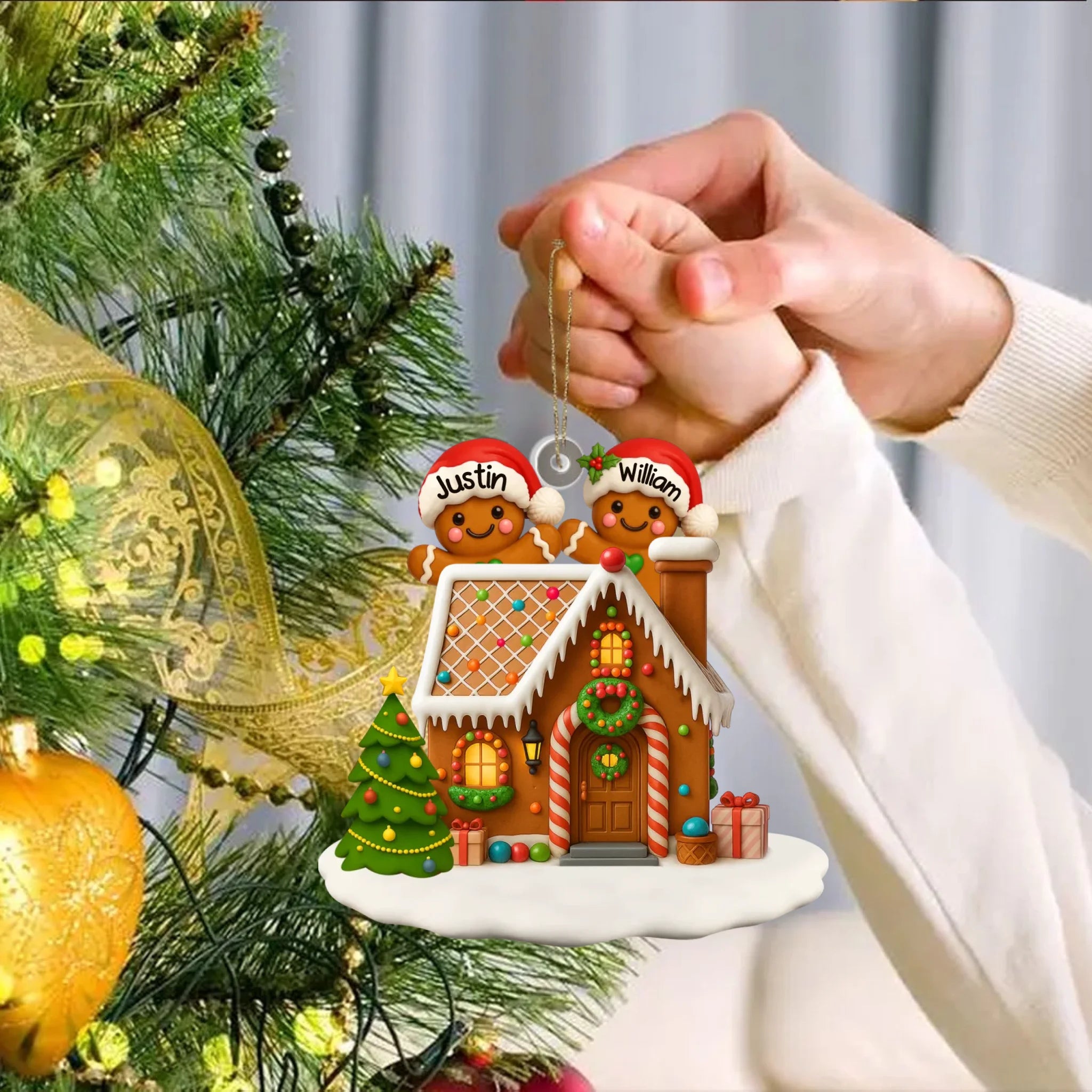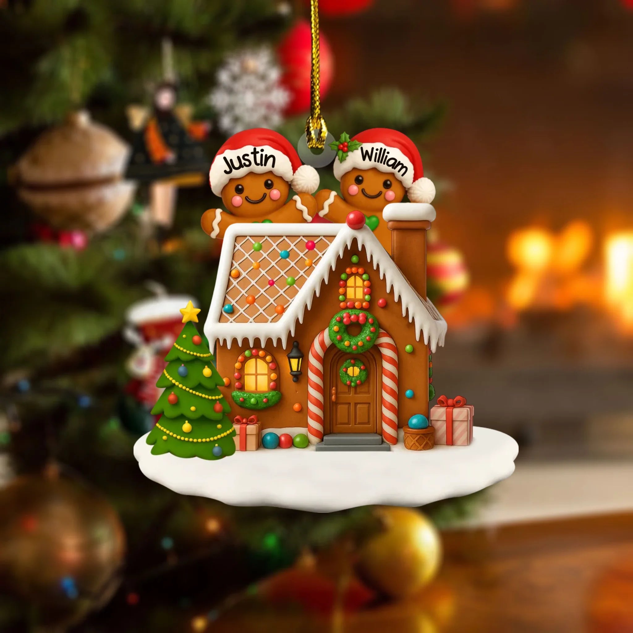 Personalized Gingerbread Family Acrylic Ornament - Christmas Tree & Home Decor Gift
