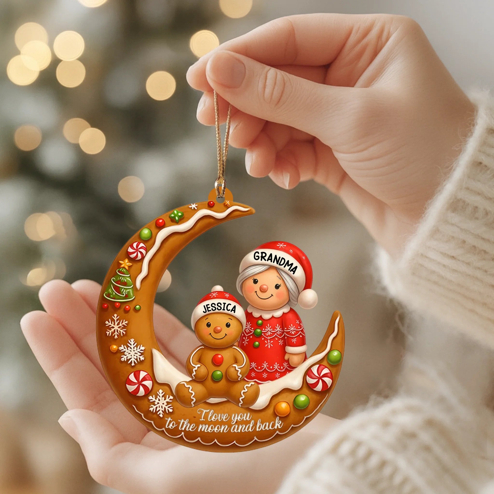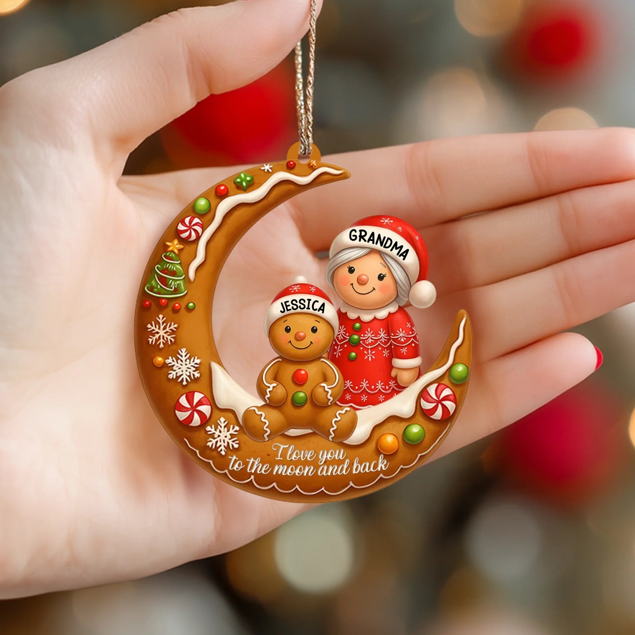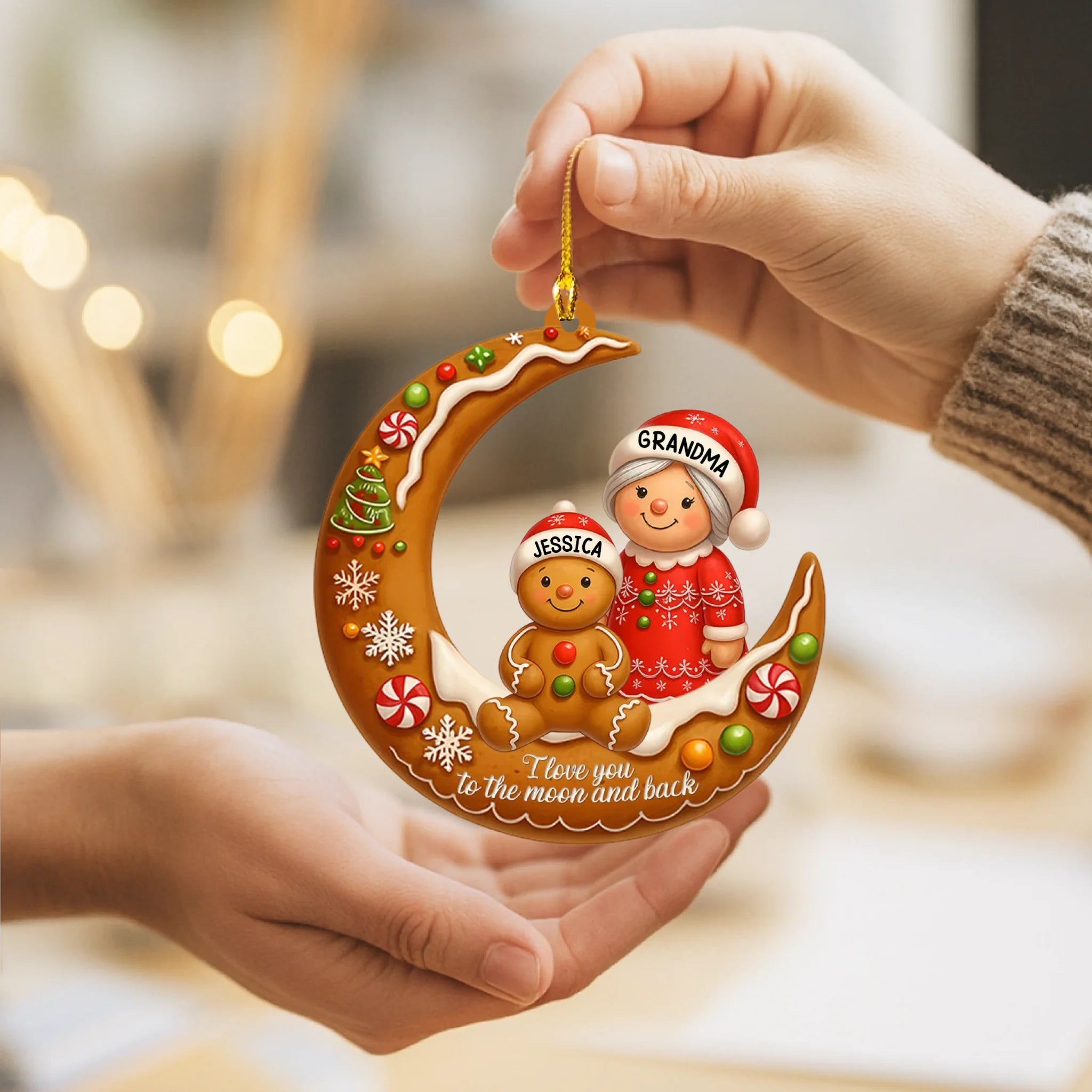 Personalized Gingerbread Grandma & Grandkids Acrylic Ornament – “Love You to the Moon and Back” Custom Christmas Gift