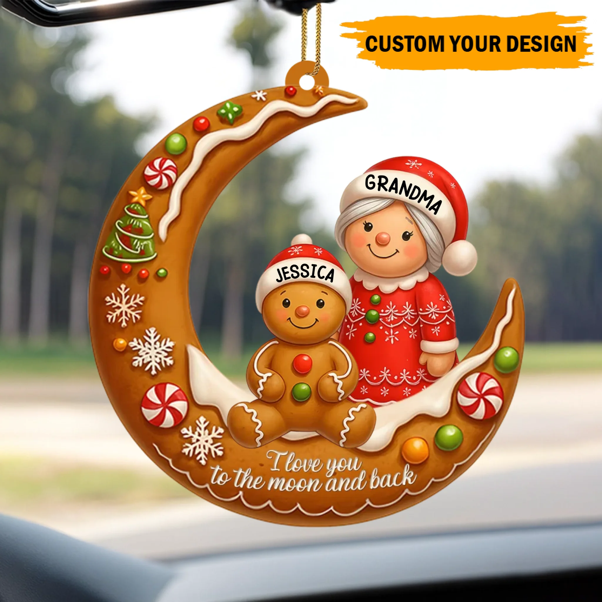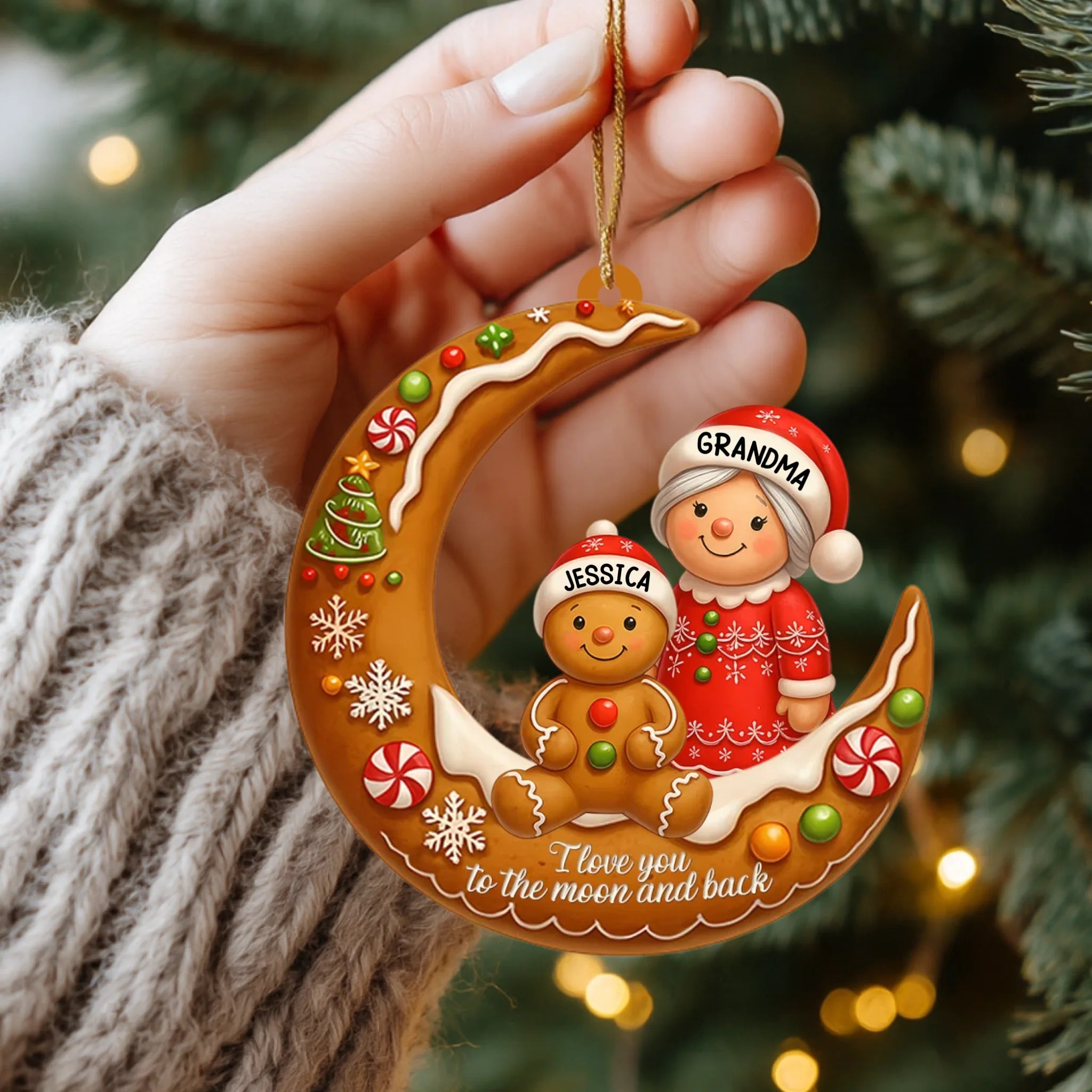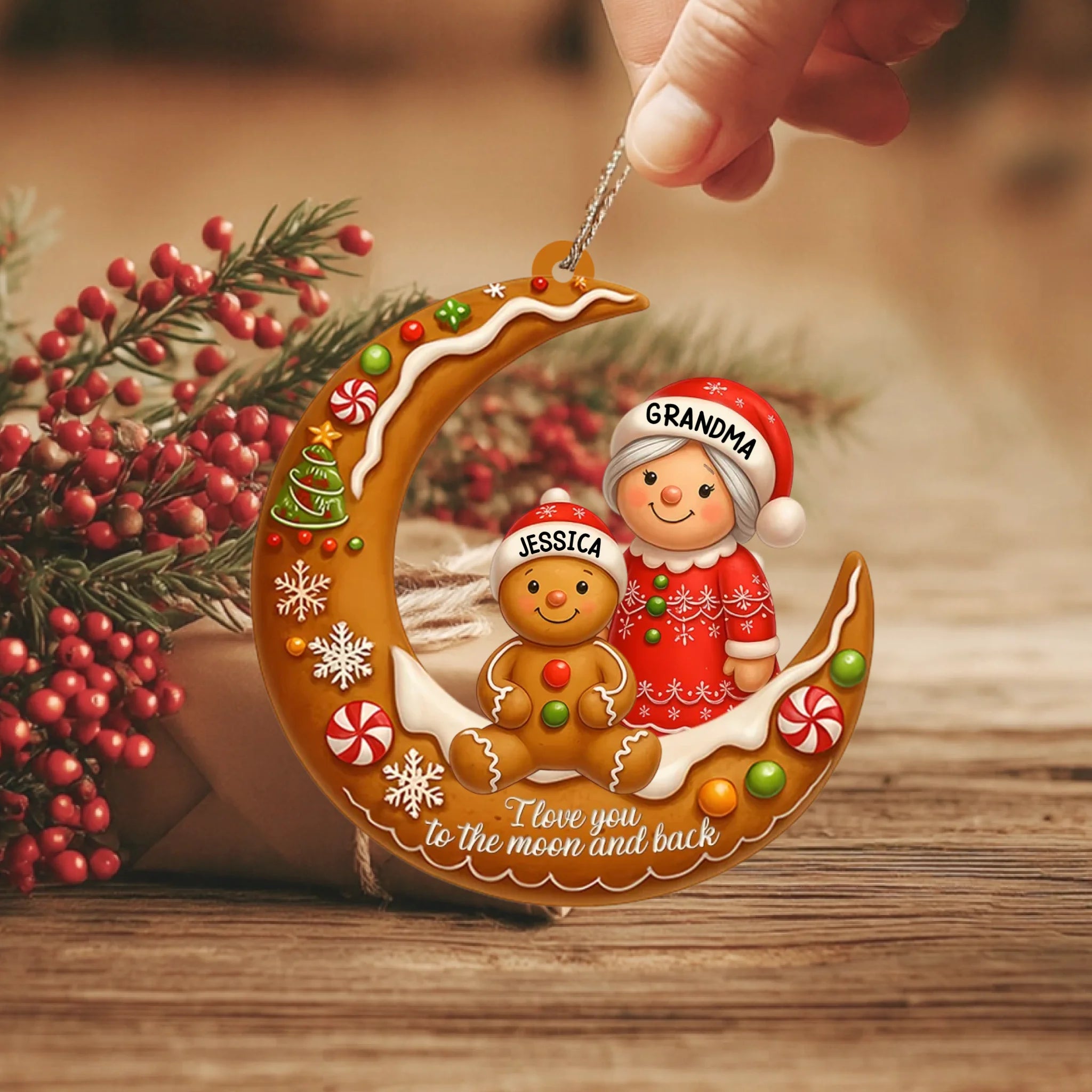Personalized Gingerbread Grandma & Grandkids Acrylic Ornament – “Love You to the Moon and Back” Custom Christmas Gift