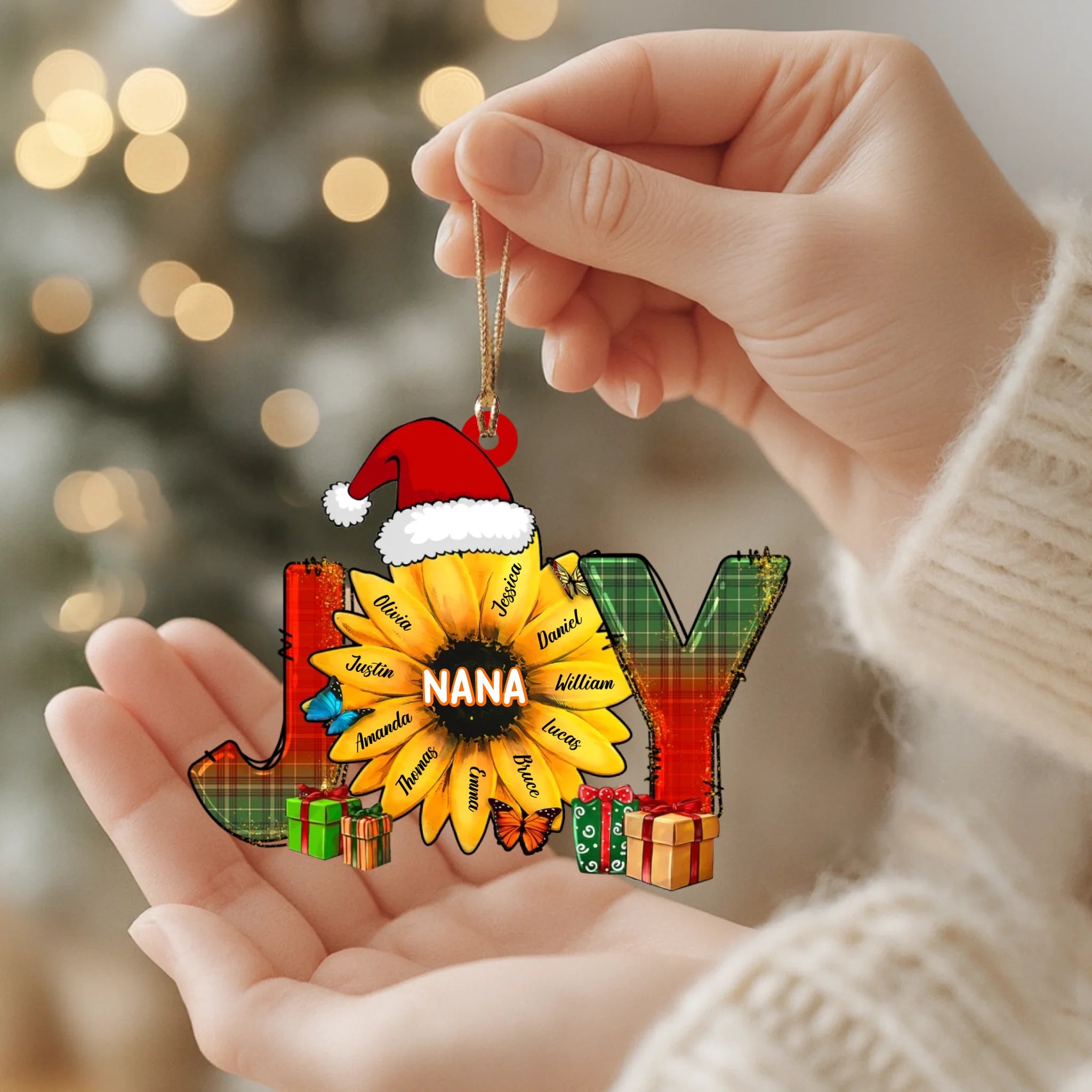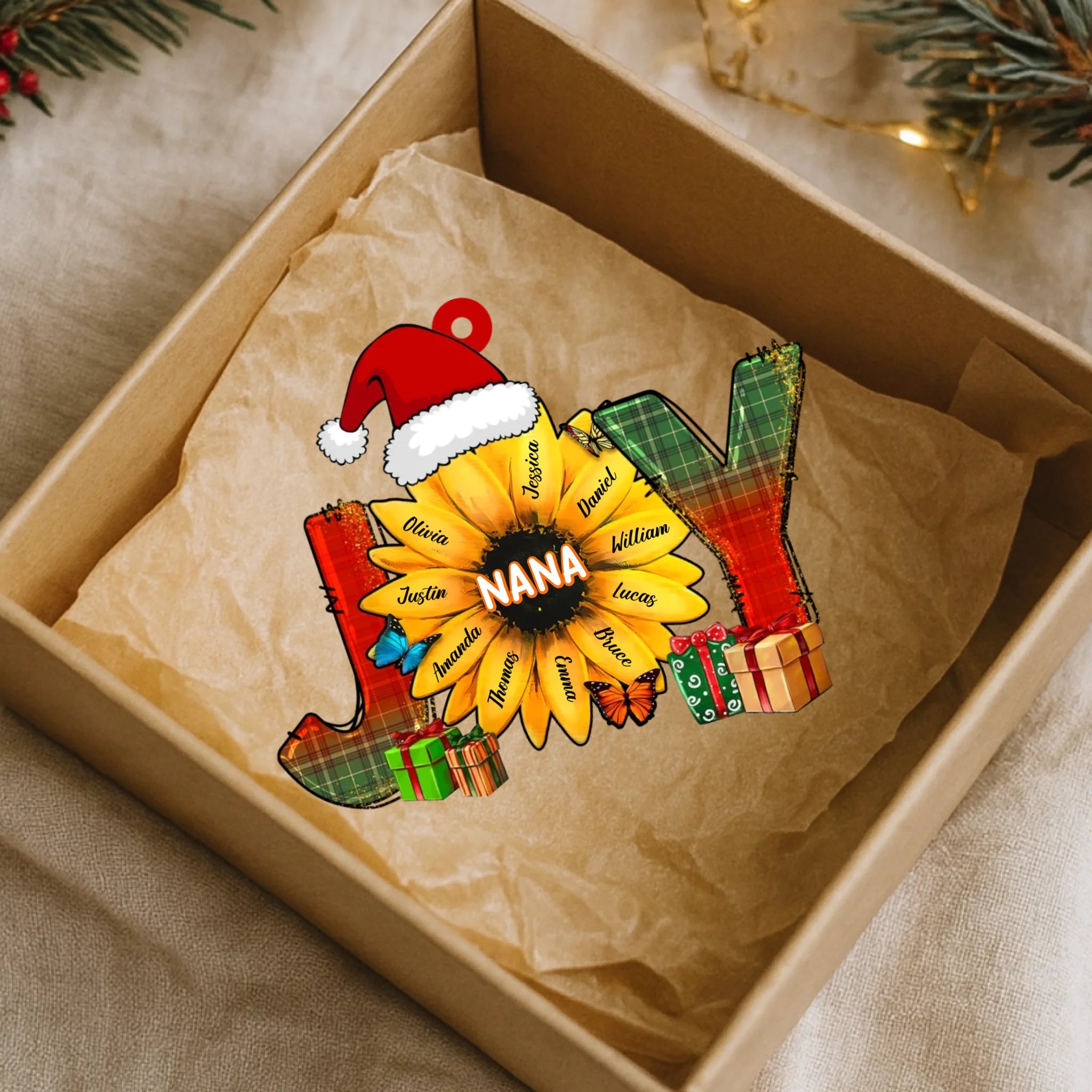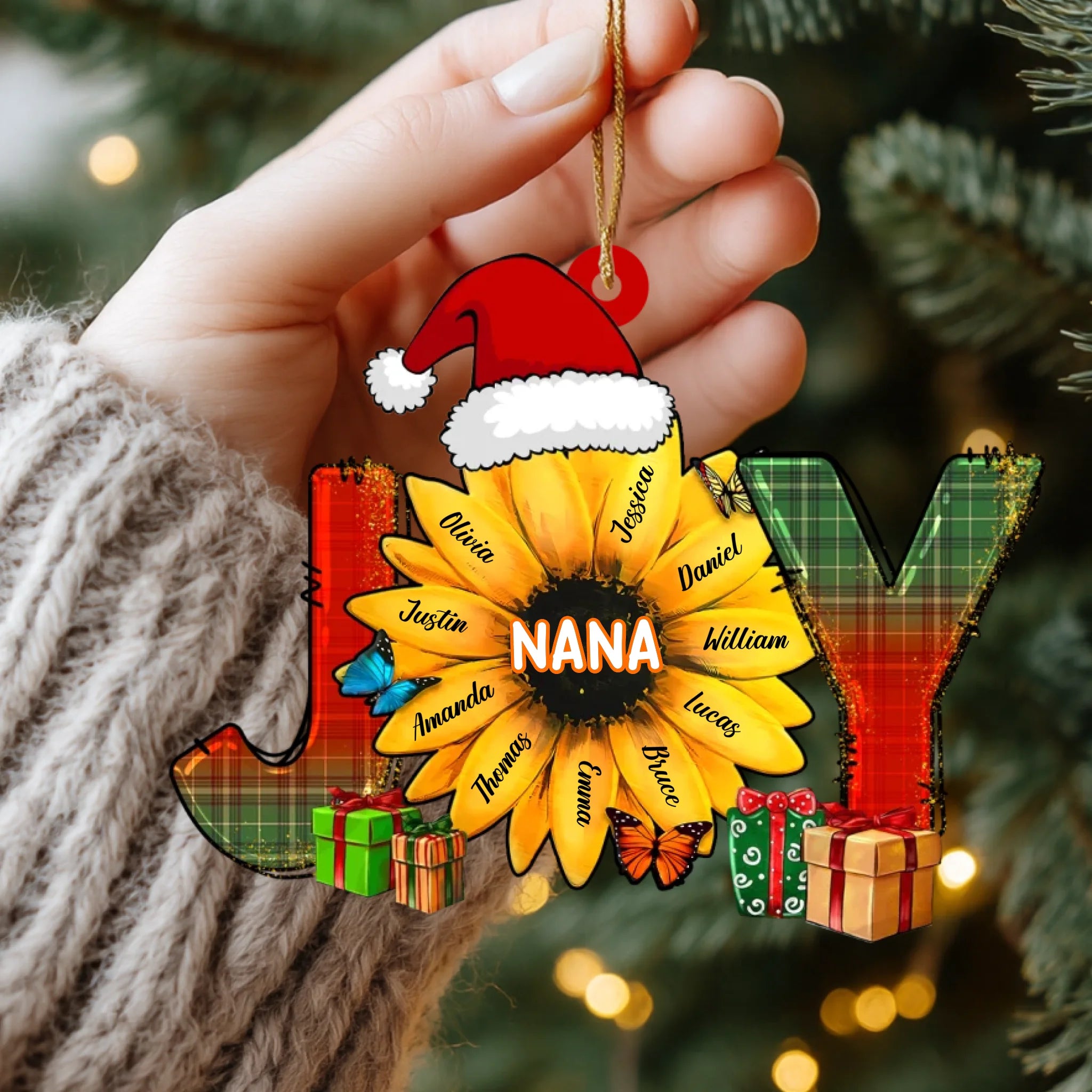 Personalized Grandma JOY Acrylic Ornament – Custom Christmas Gift for Nana, Mom, or Grandma with Grandkids’ Names and Sunflower Design