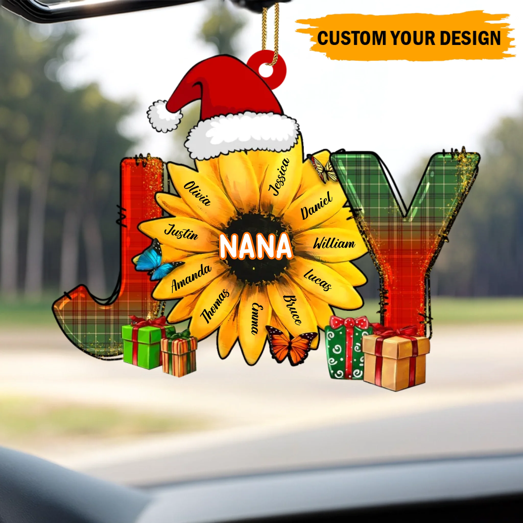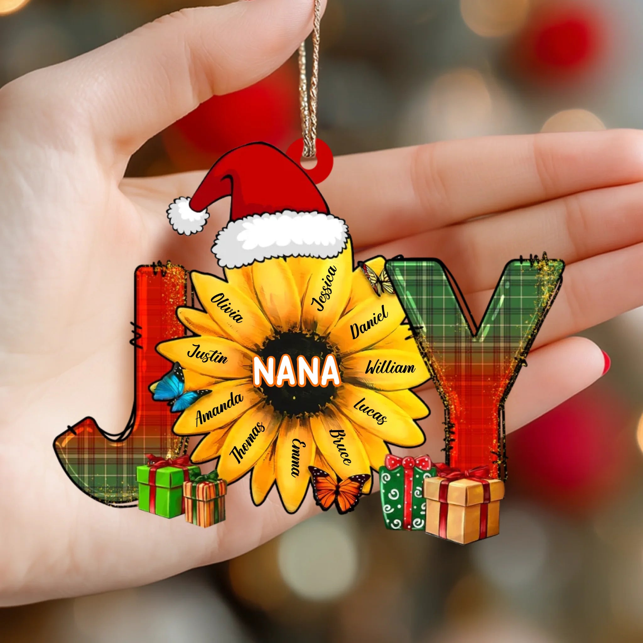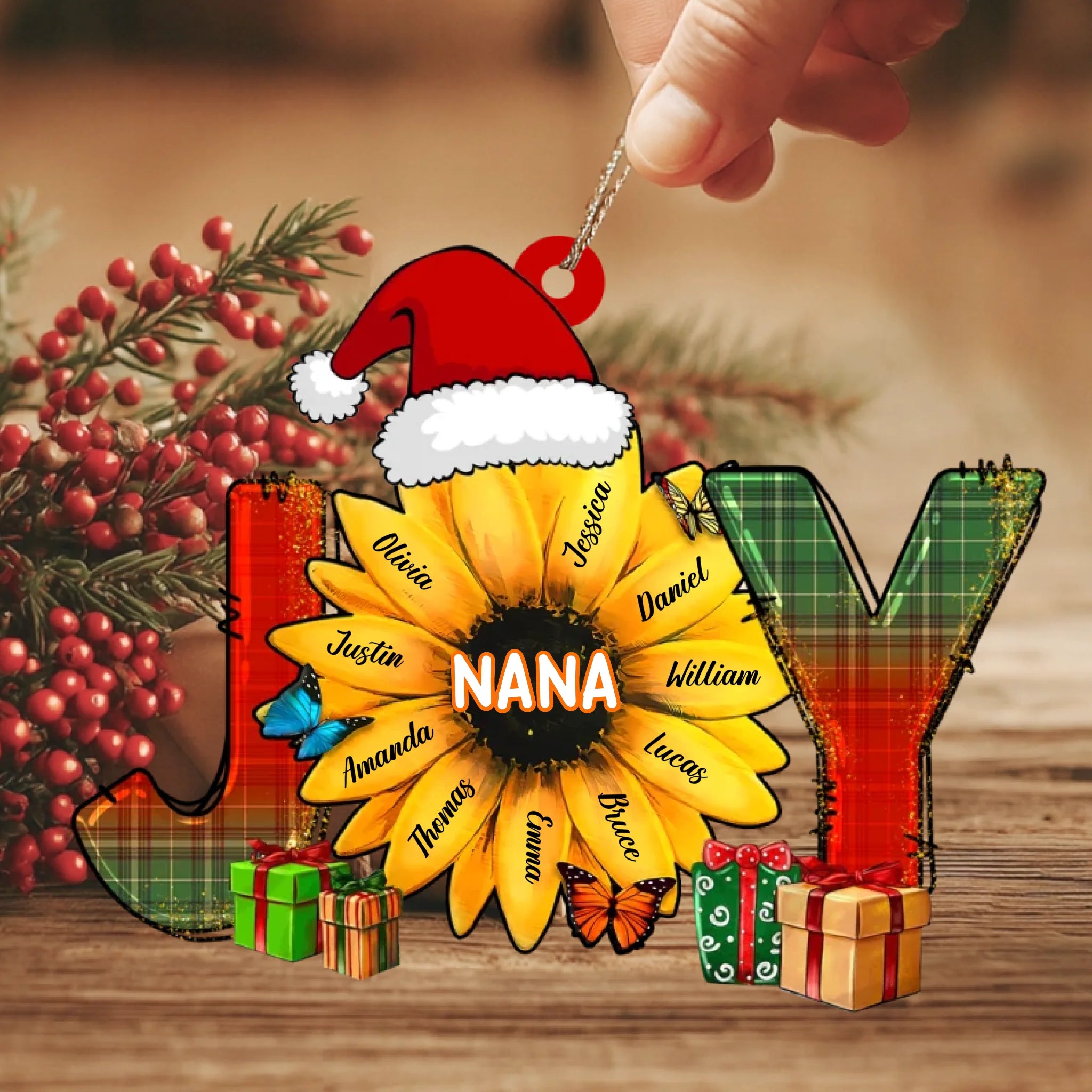 Personalized Grandma JOY Acrylic Ornament – Custom Christmas Gift for Nana, Mom, or Grandma with Grandkids’ Names and Sunflower Design