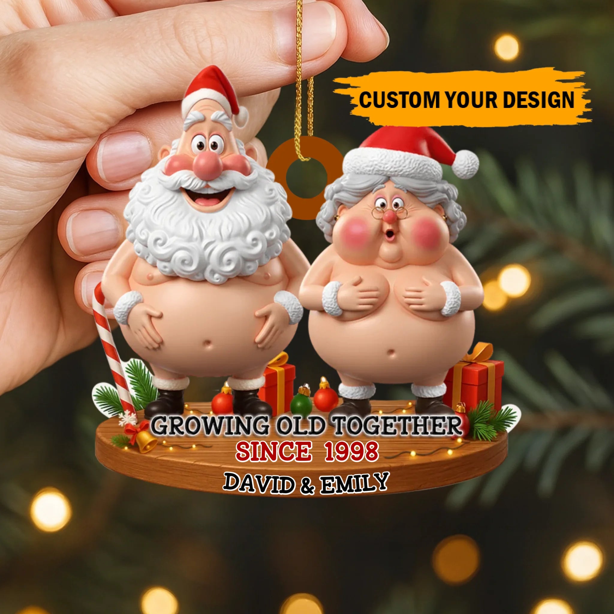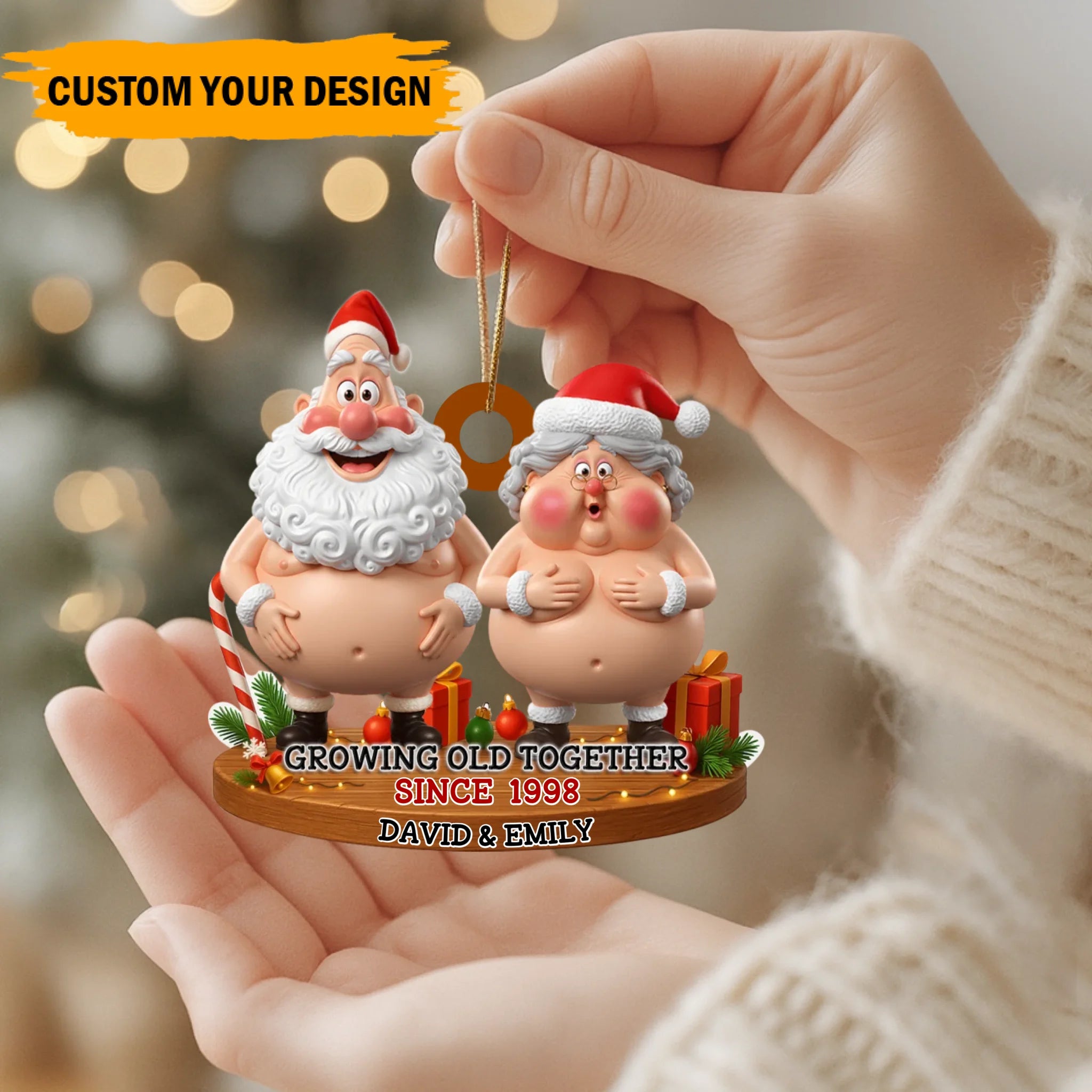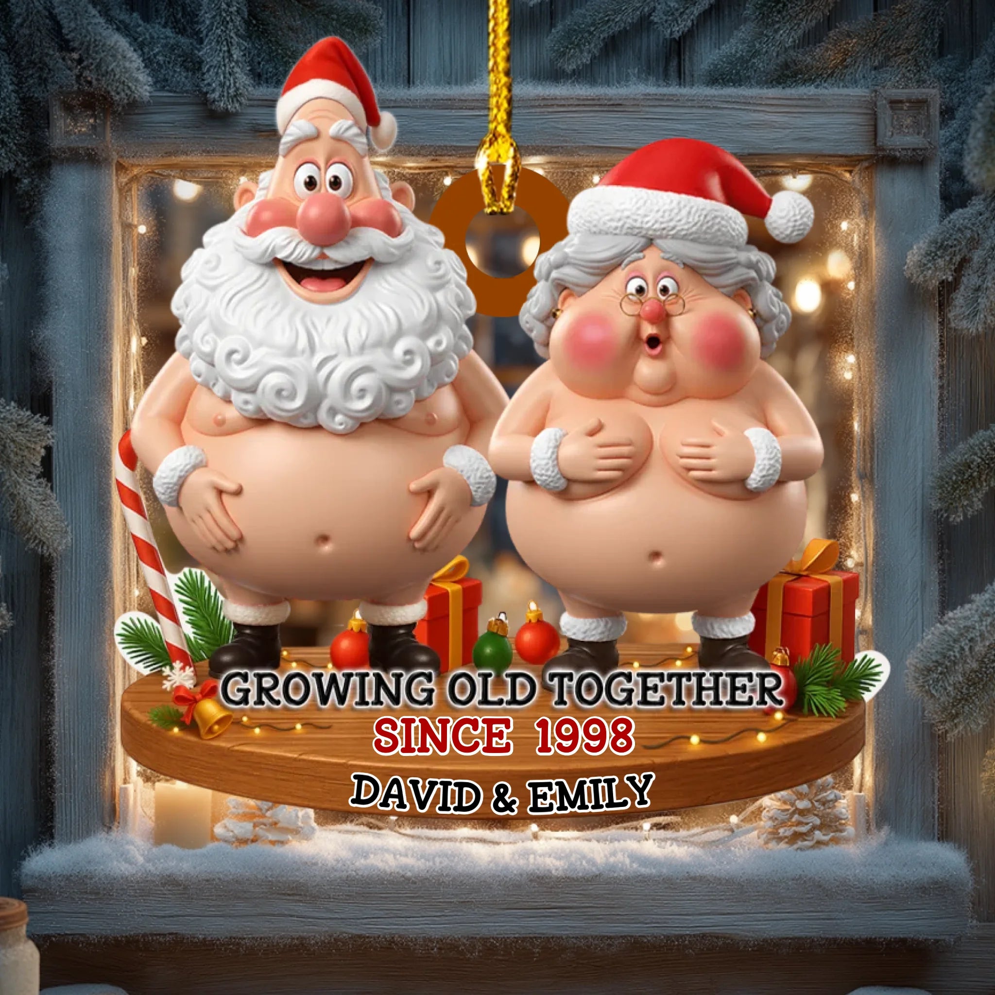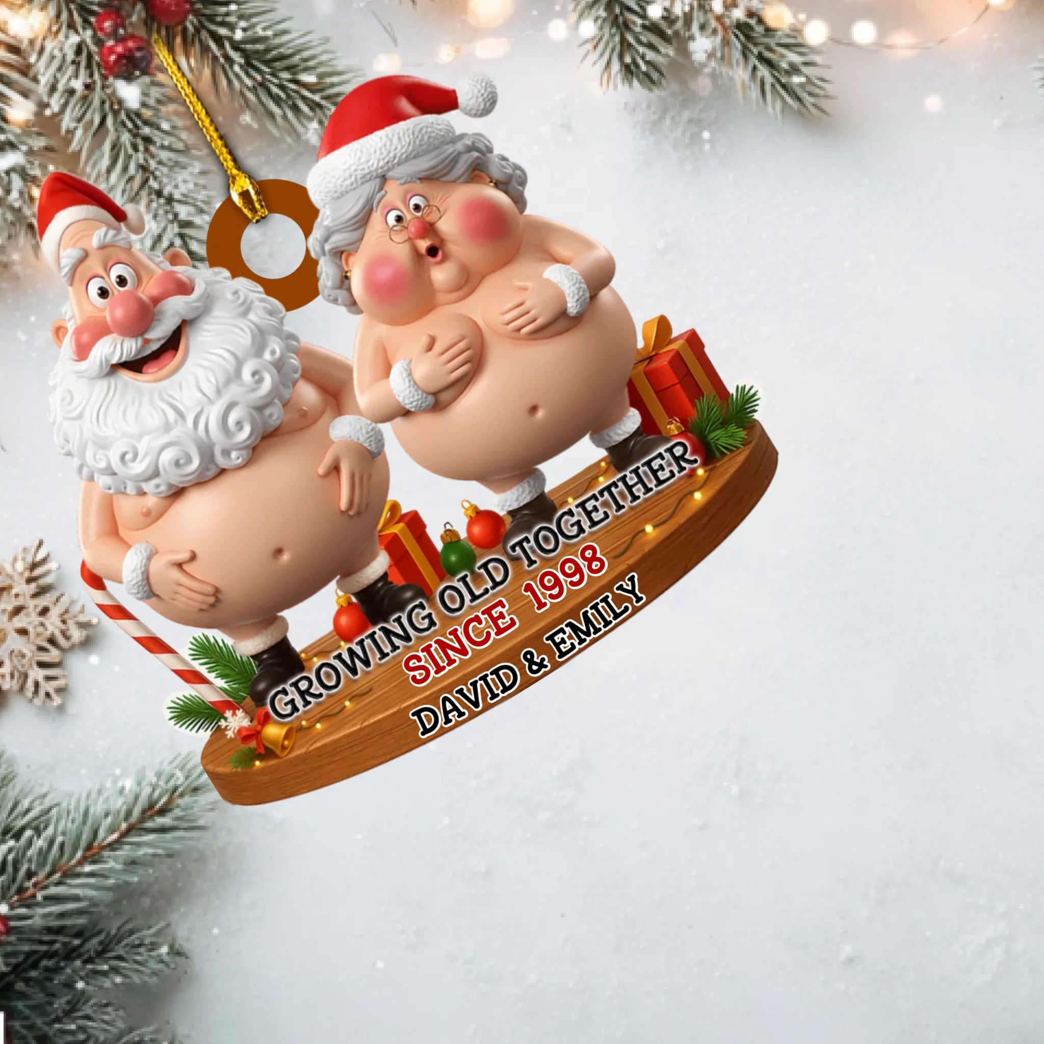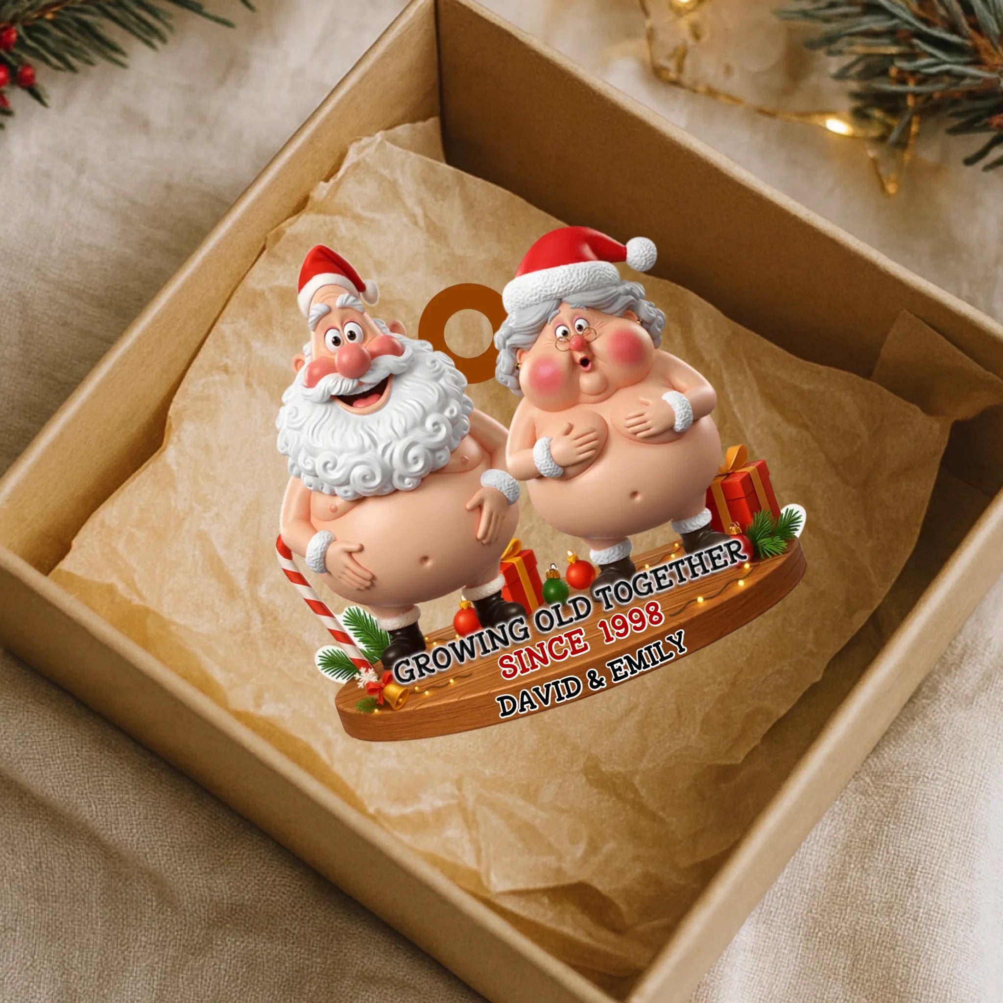 Personalized “Growing Old Together” Christmas Ornament – Funny Santa Couple Custom Gift for Husband & Wife, Since Year Keepsake