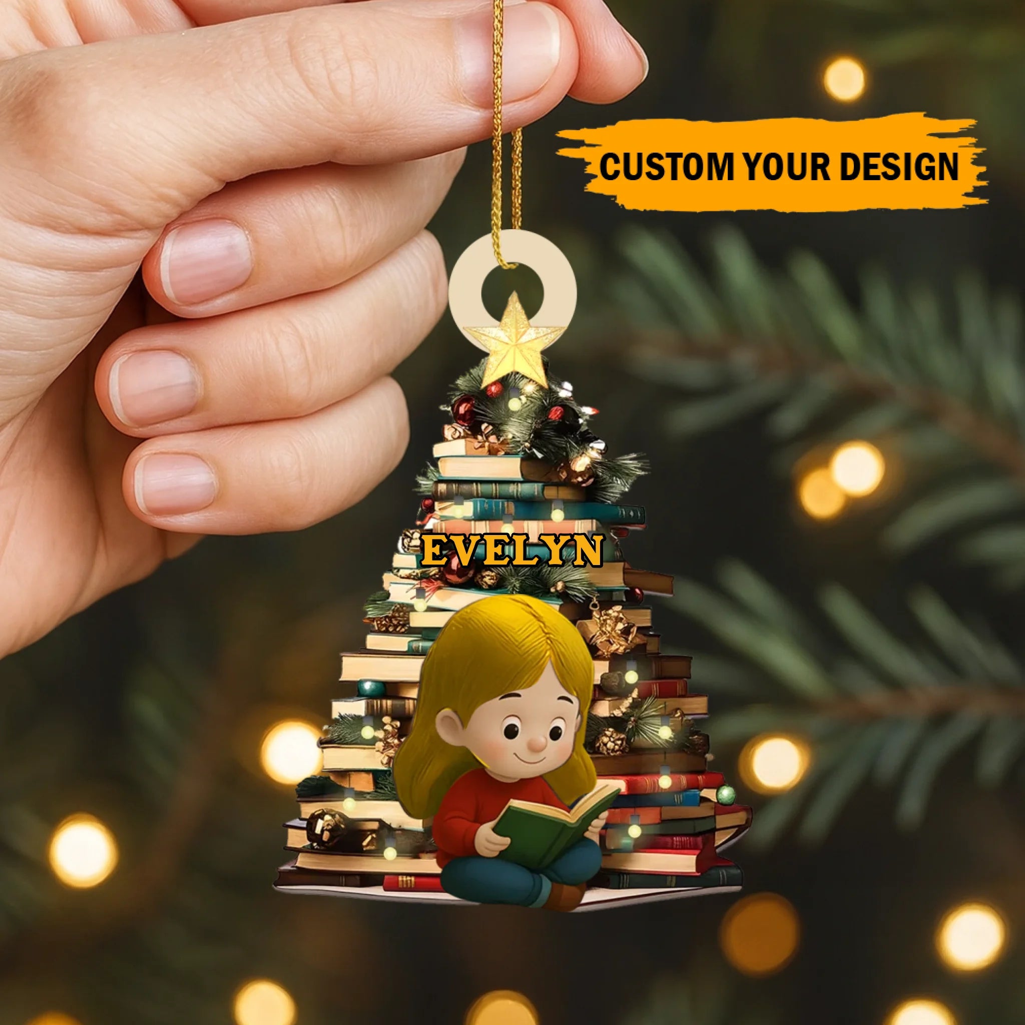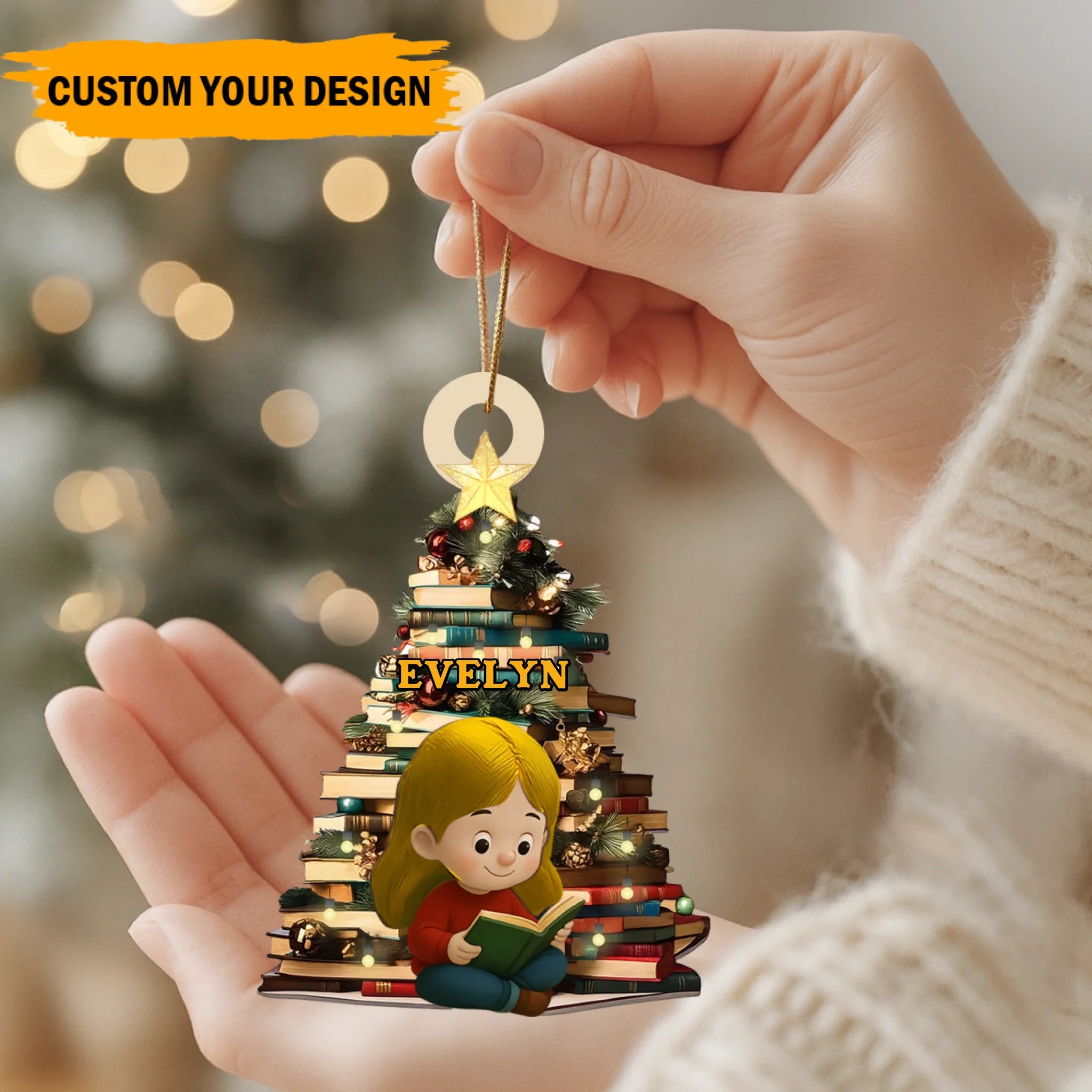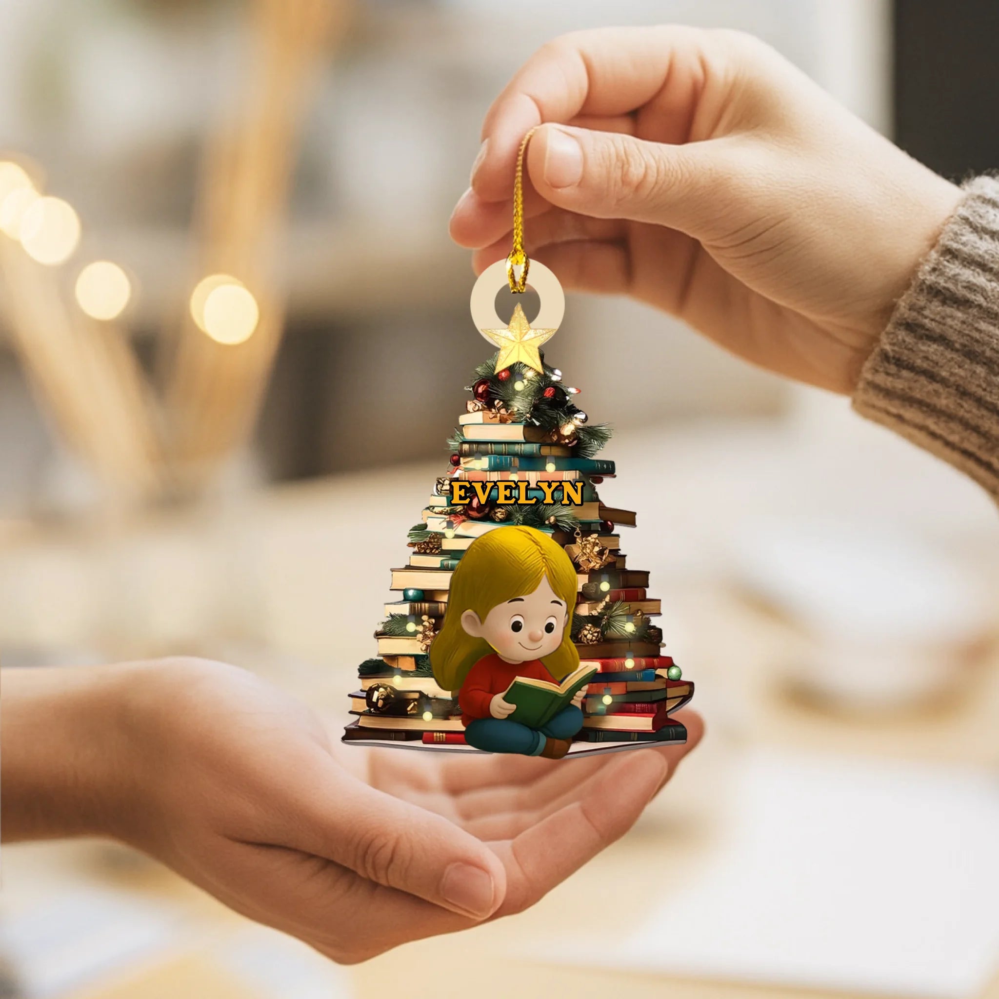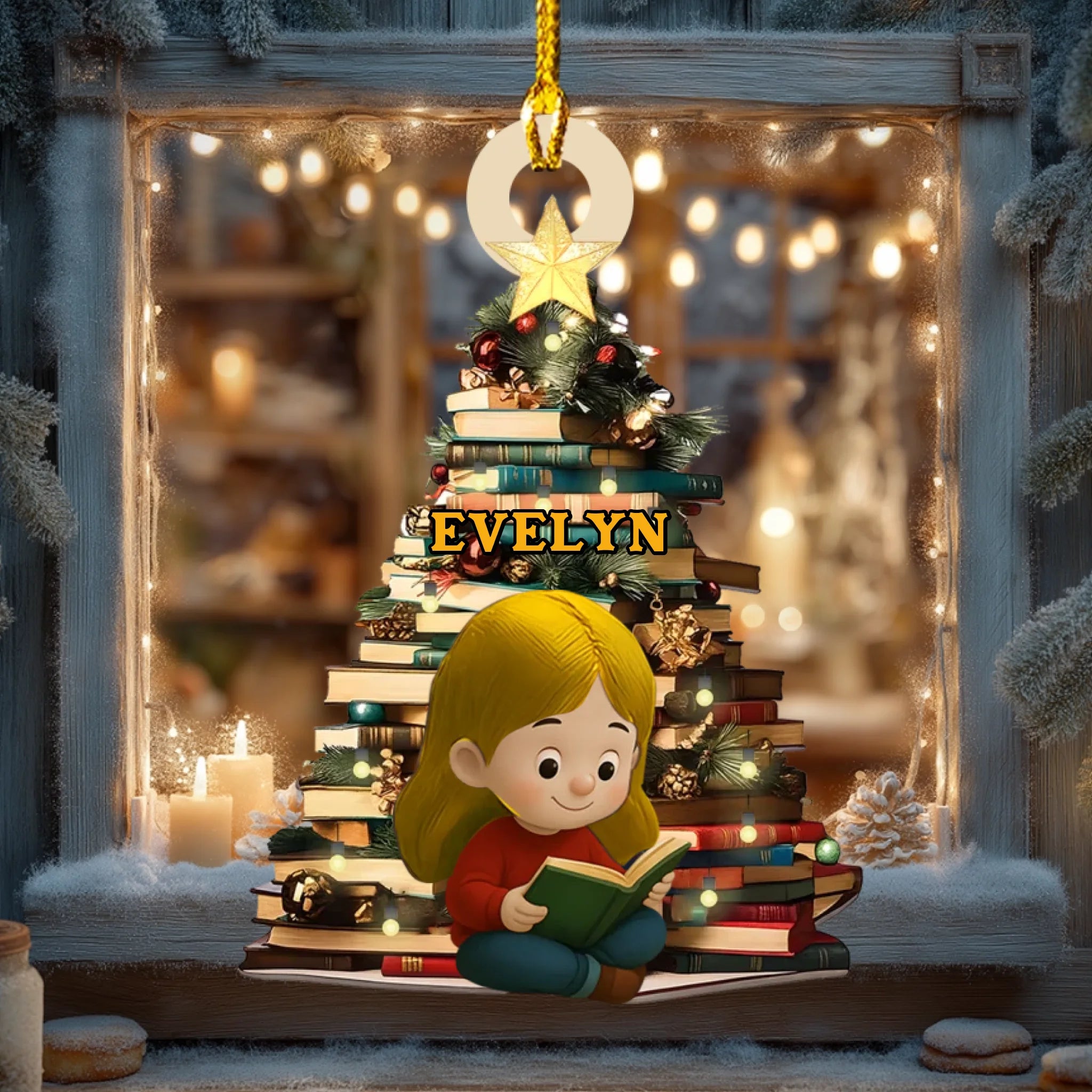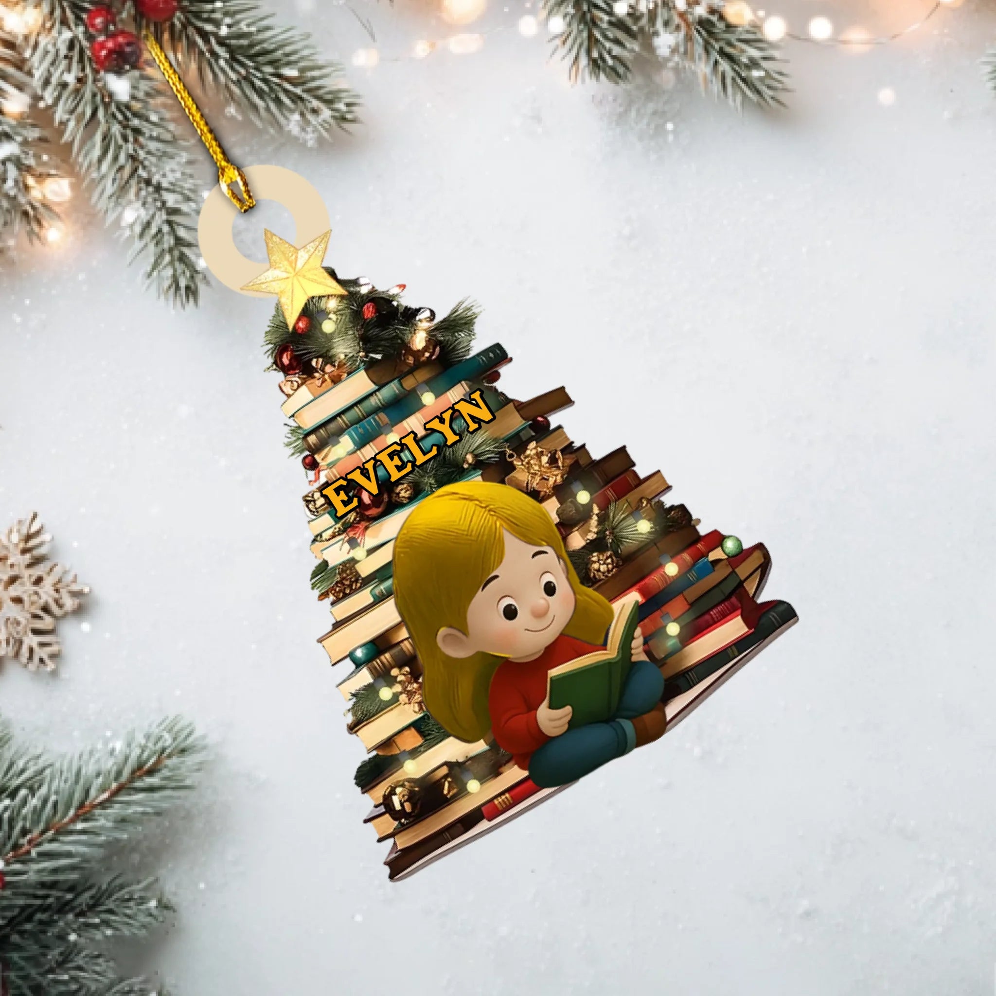 Beautifully designed with a cozy reading theme, this ornament features a cute little reader sitting by a magical Christmas tree made of books — perfect for kids and book lovers alike!