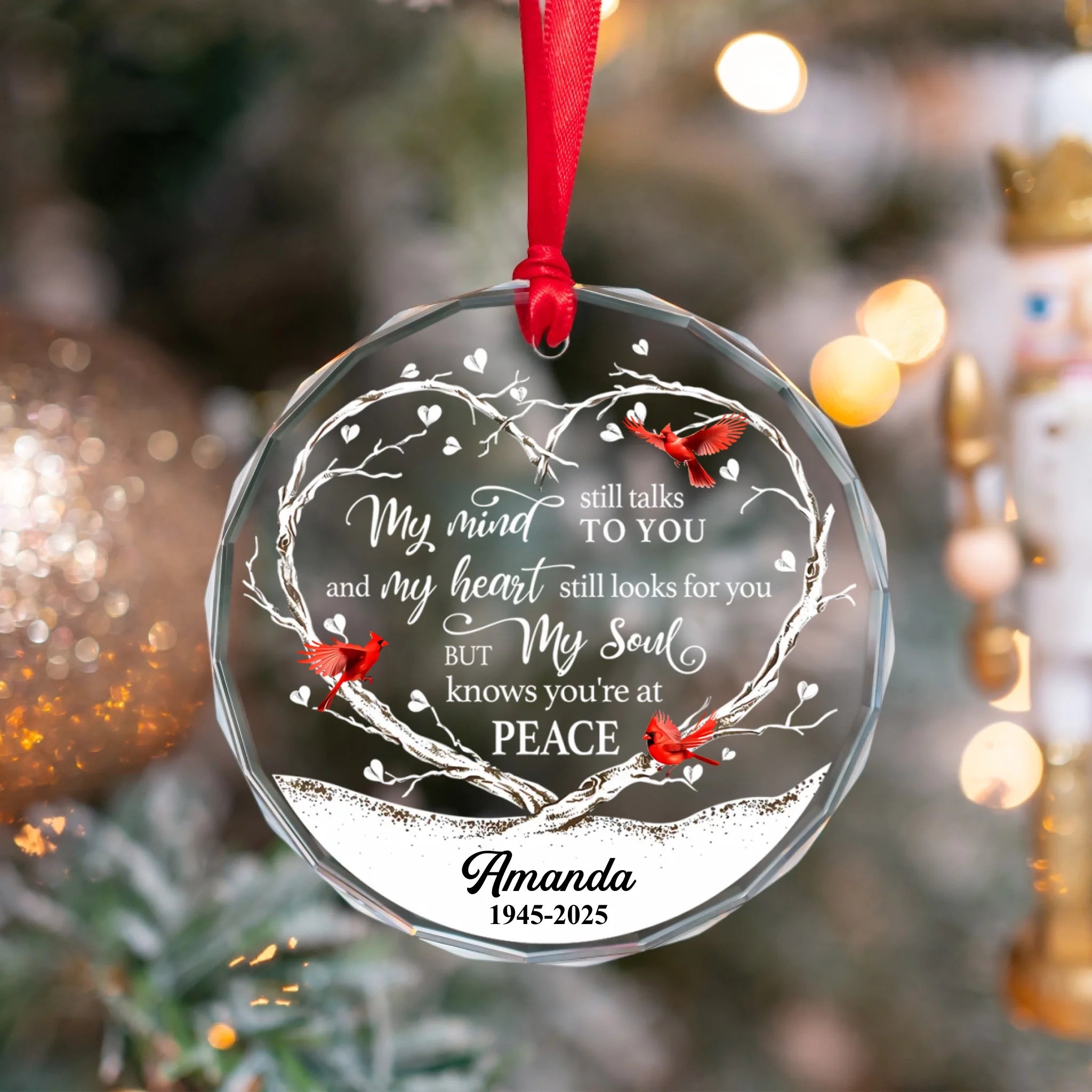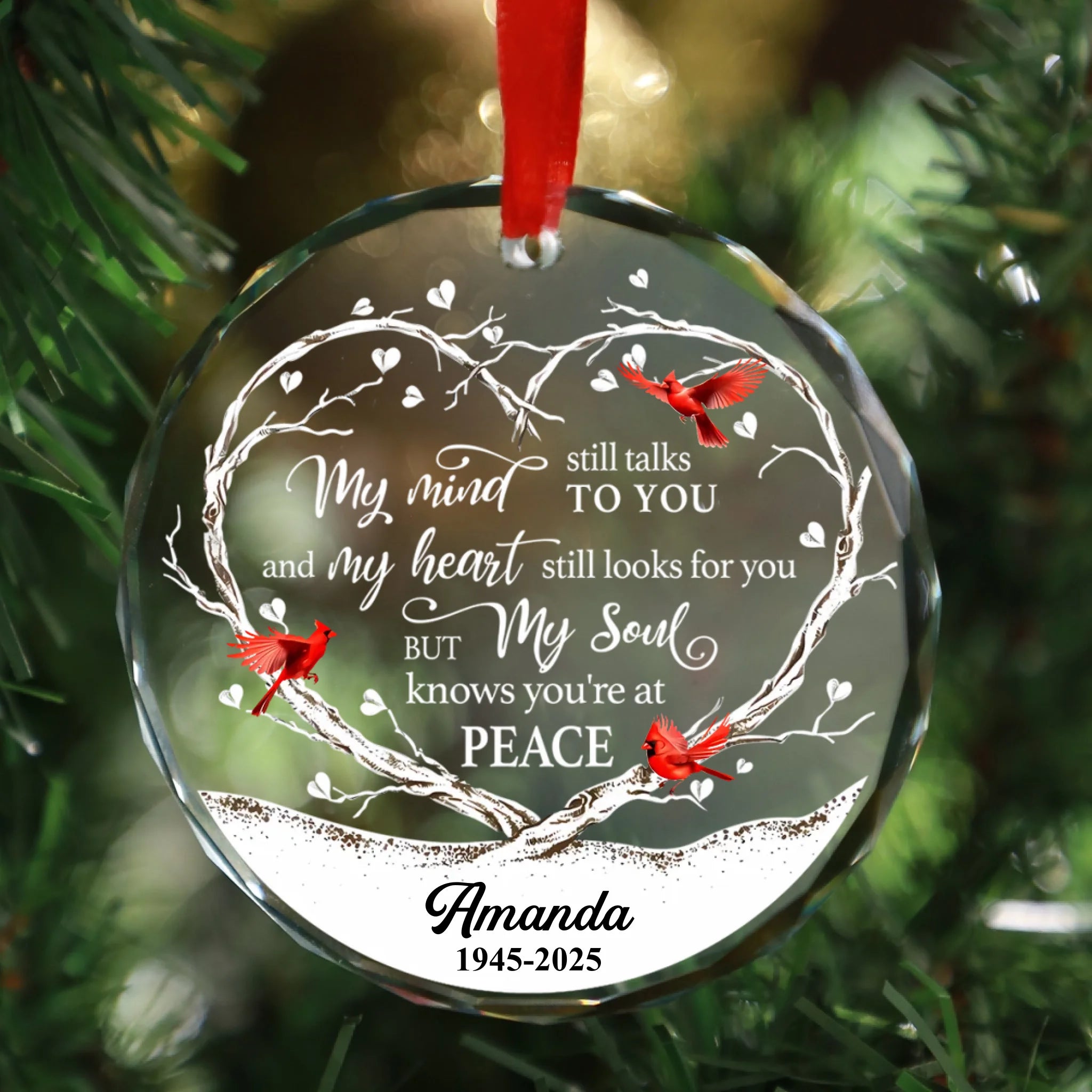 Personalized Memorial Round Glass Ornament - "My Mind Still Talks To You" Crystal Prism Keepsake with Custom Name & Years