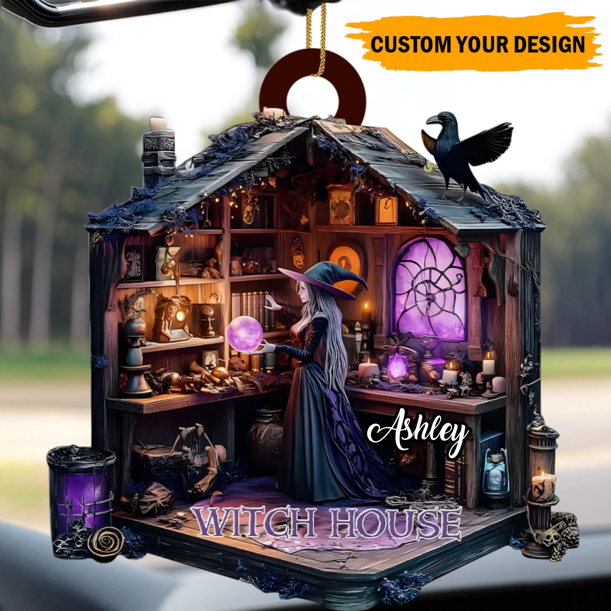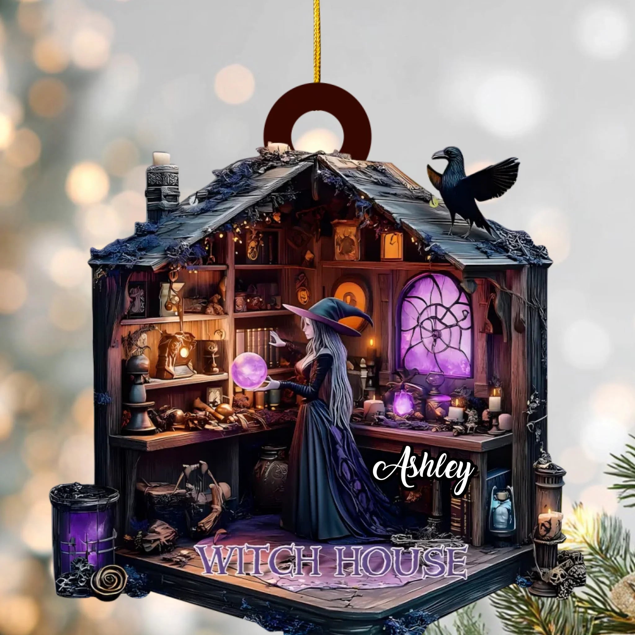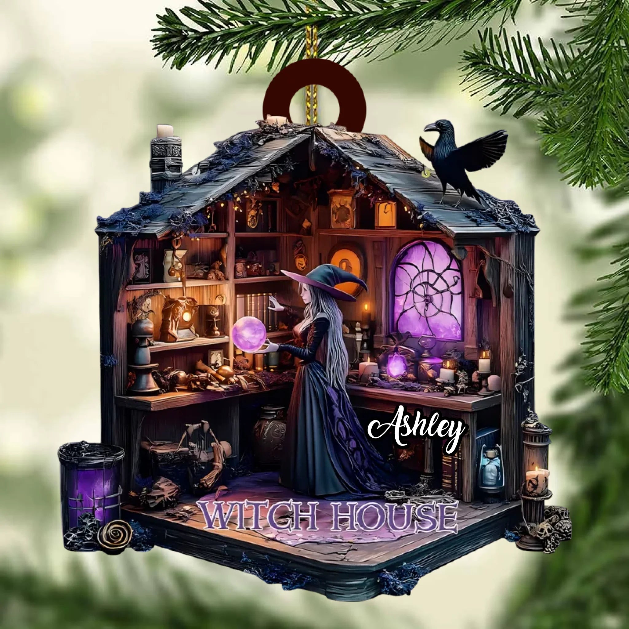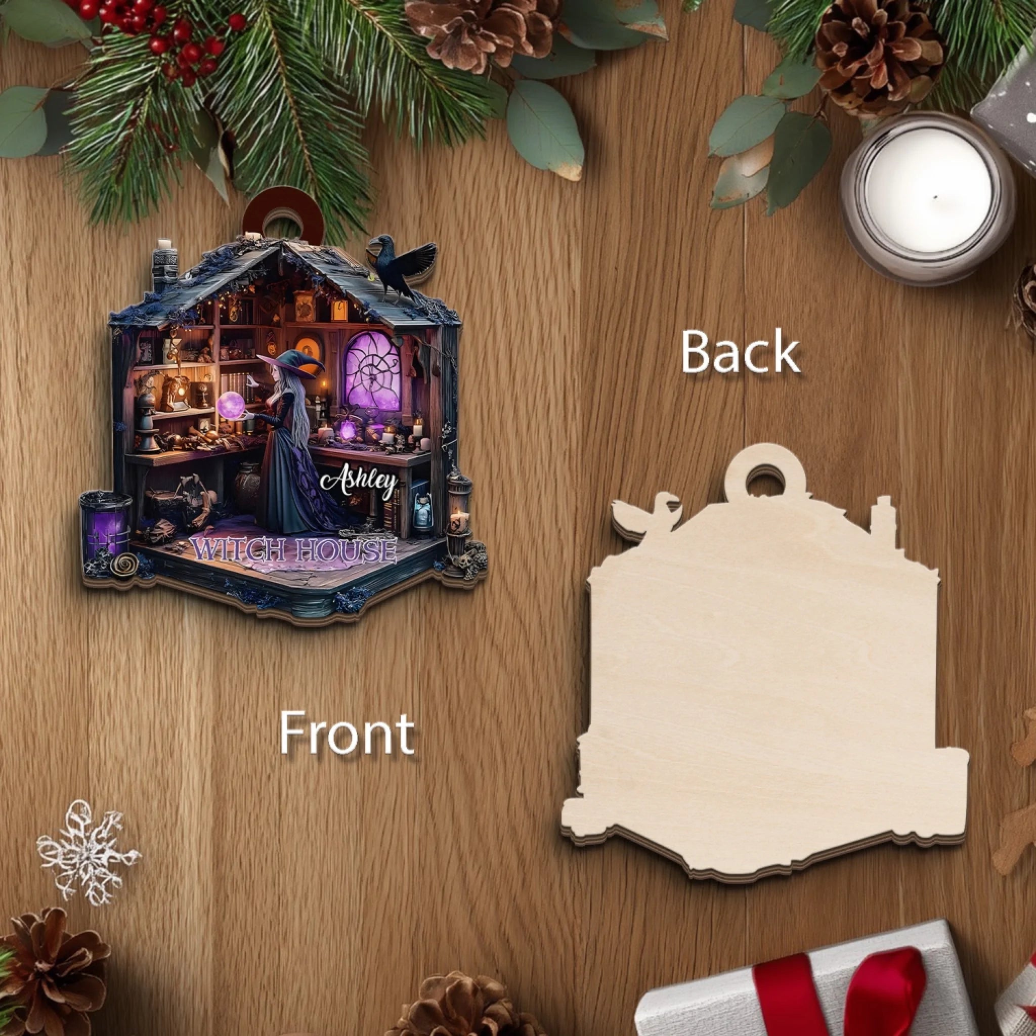 Personalized Witch House Wooden Ornament – Custom Name Halloween Decoration for Magic Lovers and Witches