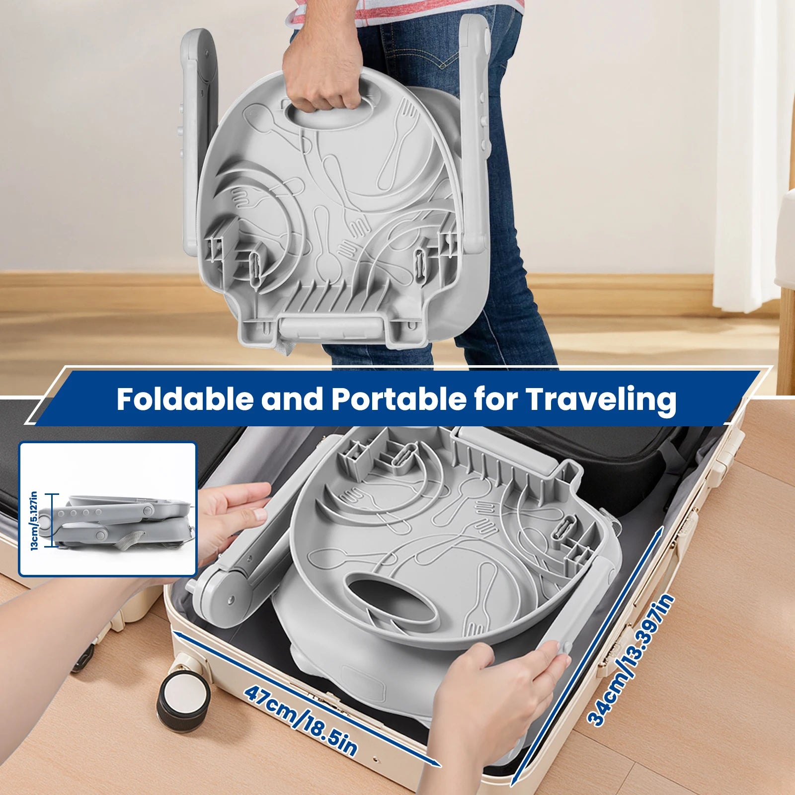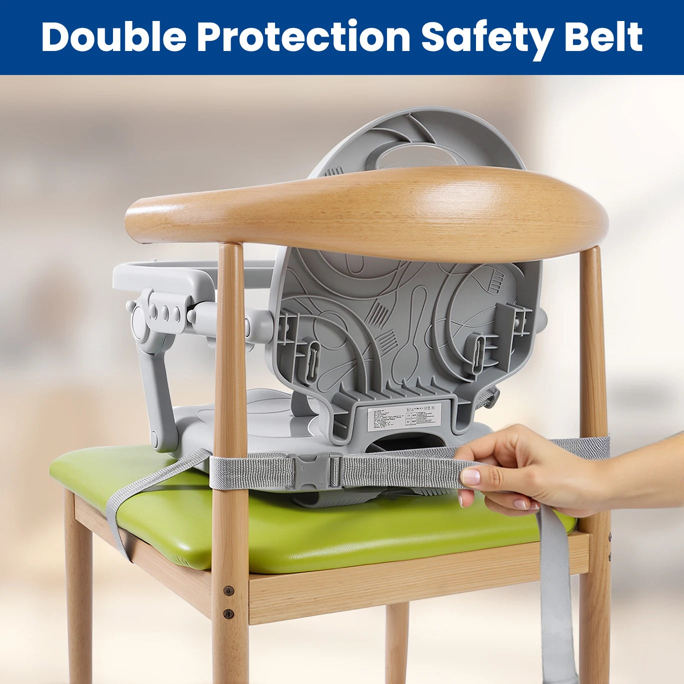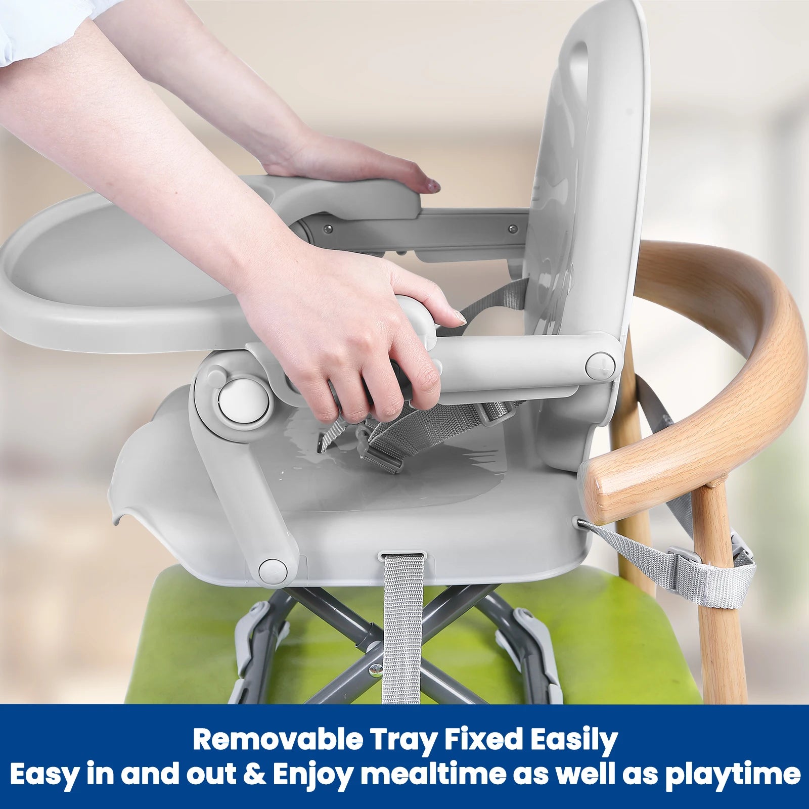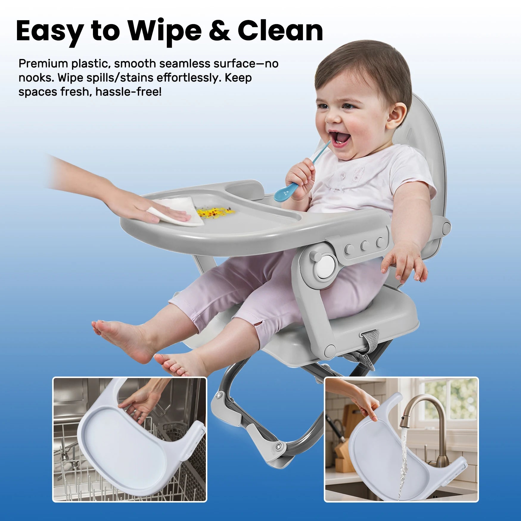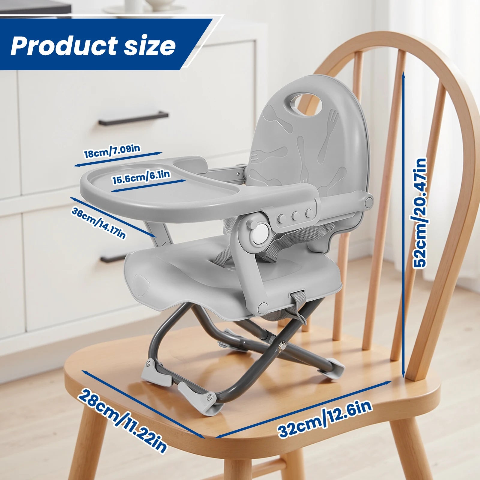 Portable Folding Baby Booster Seat for Dining Table, Compact Travel High Chair with Removable Tray and Safety Harness (6–36 Months)