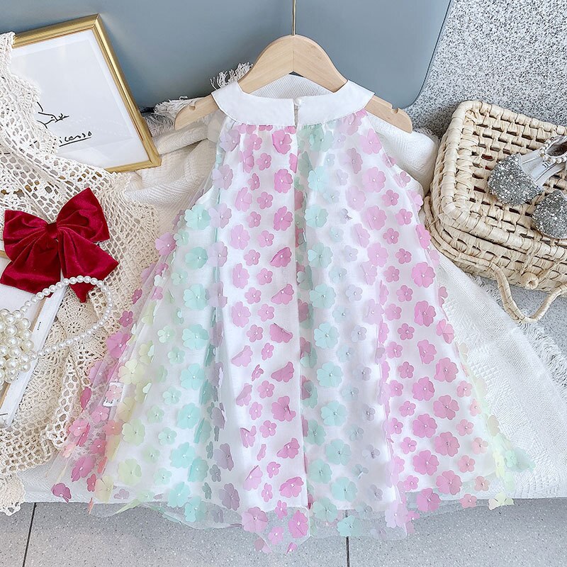 This Princess Summer Sleeveless Flower Rainbow Knee-length Dress is very cute and suitable for your little princess' fashion style. It can be worn both at parties or on a daily basis.