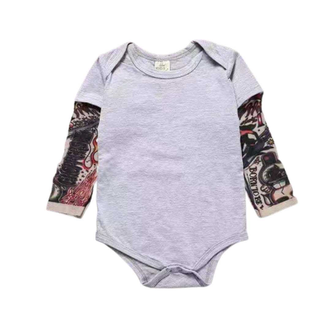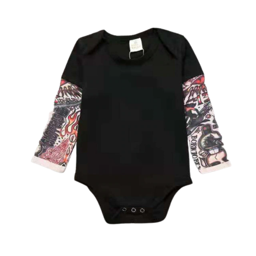 Make your little baby look fashionable and comfy at the same time with our Printed Tattoo Sleeve Baby Bodysuit. Awesomazing cool baby wear perfect for everyday use!