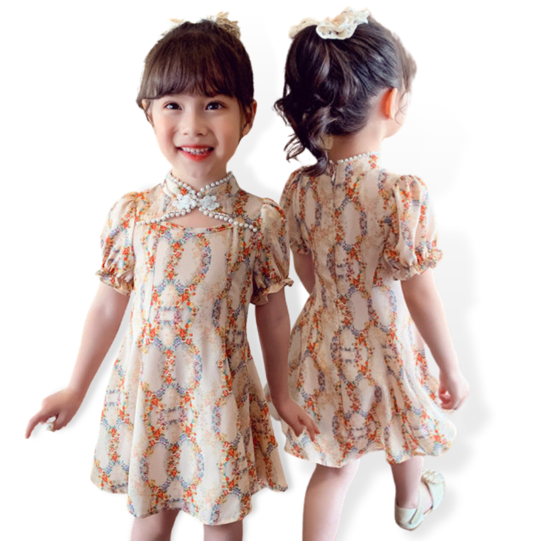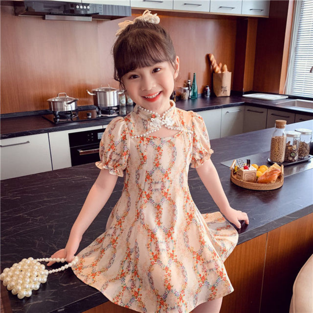 Your little girl will look absolutely adorable in this Puff Sleeves Floral Print Qipao Style Princess Casual Dress. The cute princess dress is made of lightweight fabric with an exquisite tailoring design that keeps her cool and comfortable wearing it all day long.