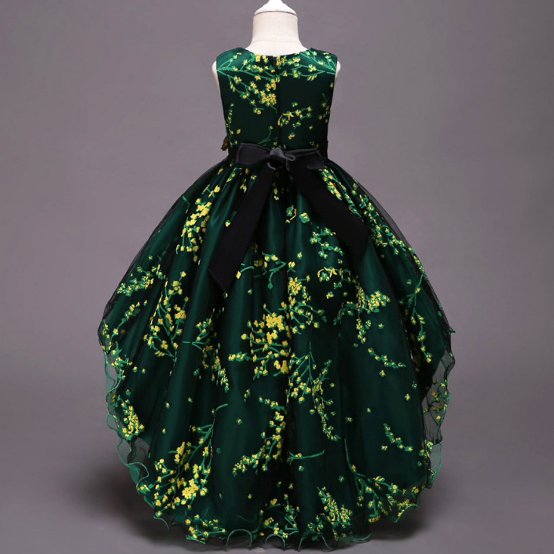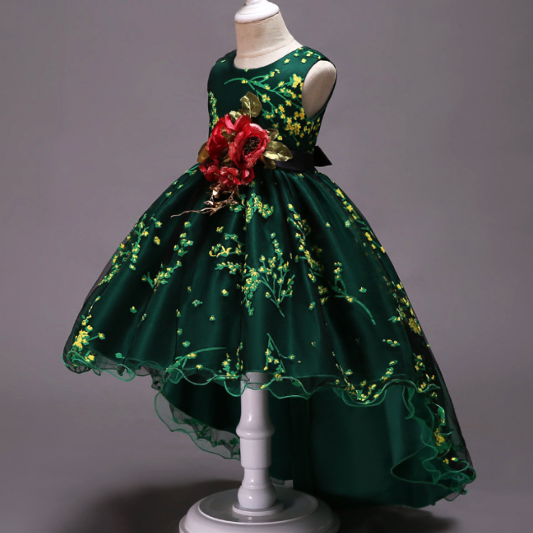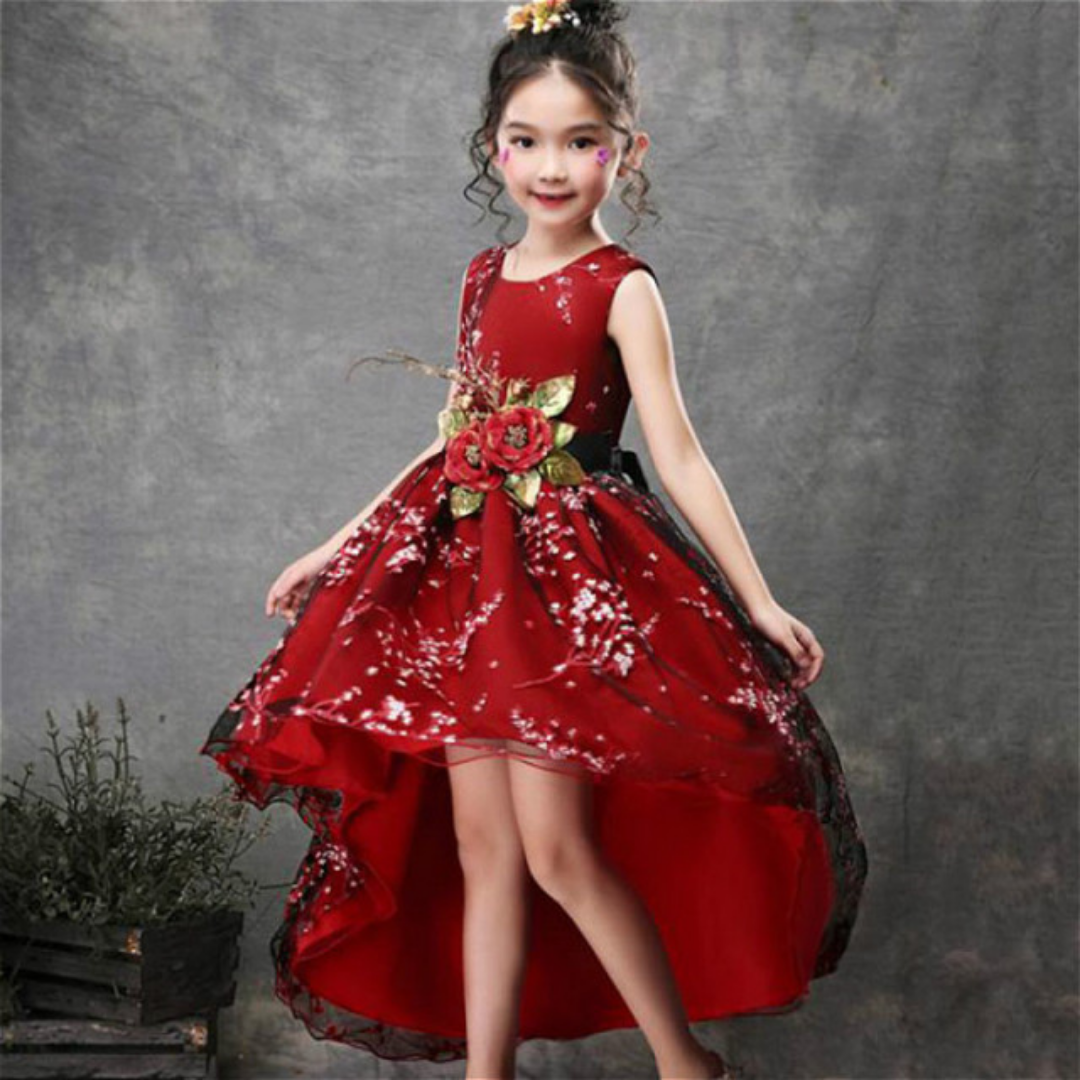 Rose Patch Floral Printed Girls Fashion Party Dress