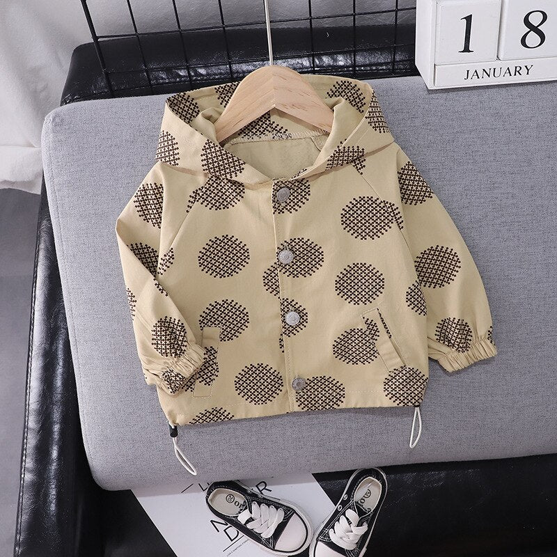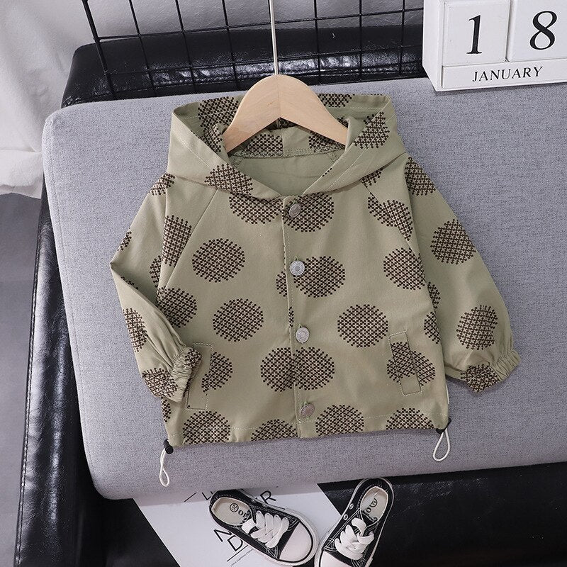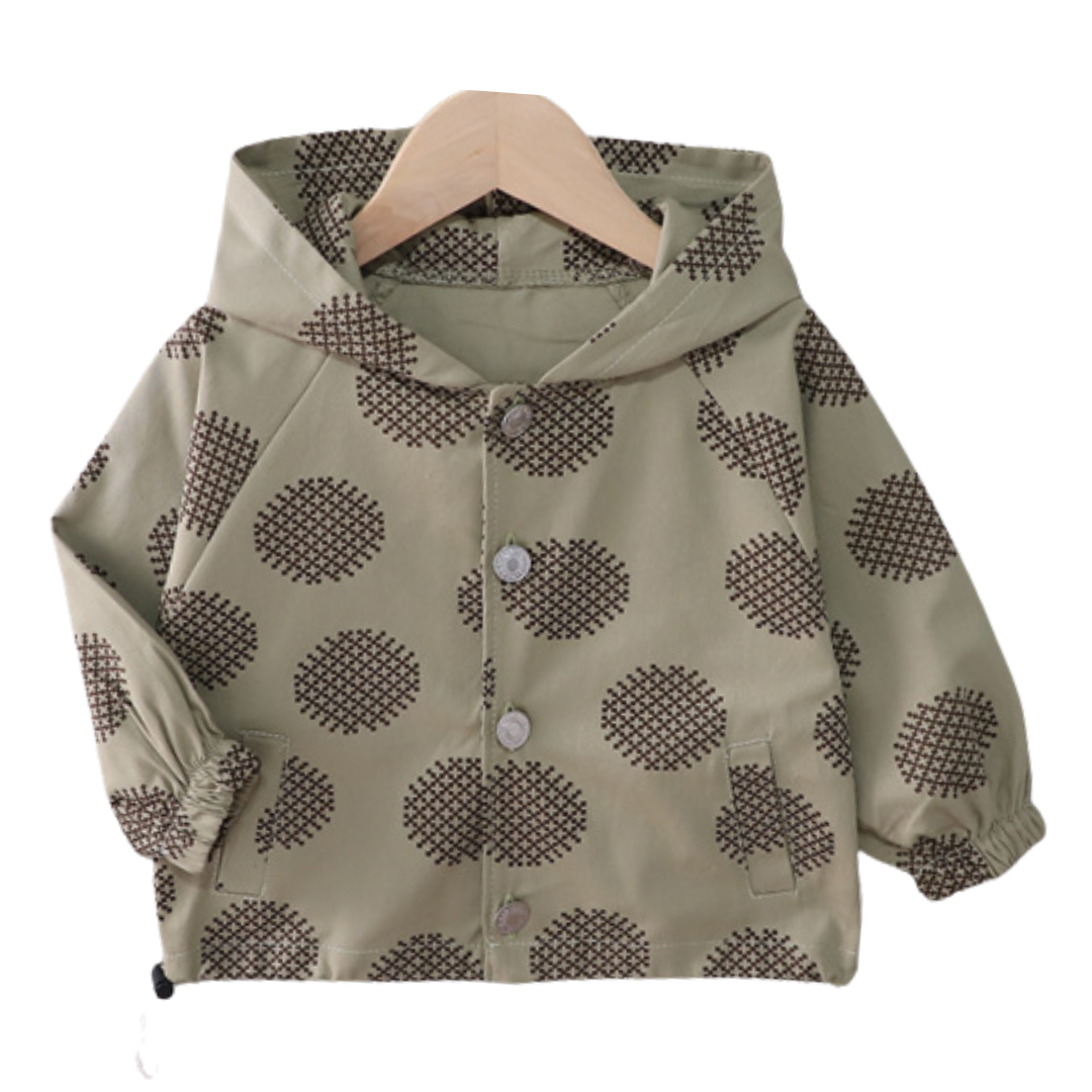 Rounded Criss-Cross Pattern Print Hooded Jacket