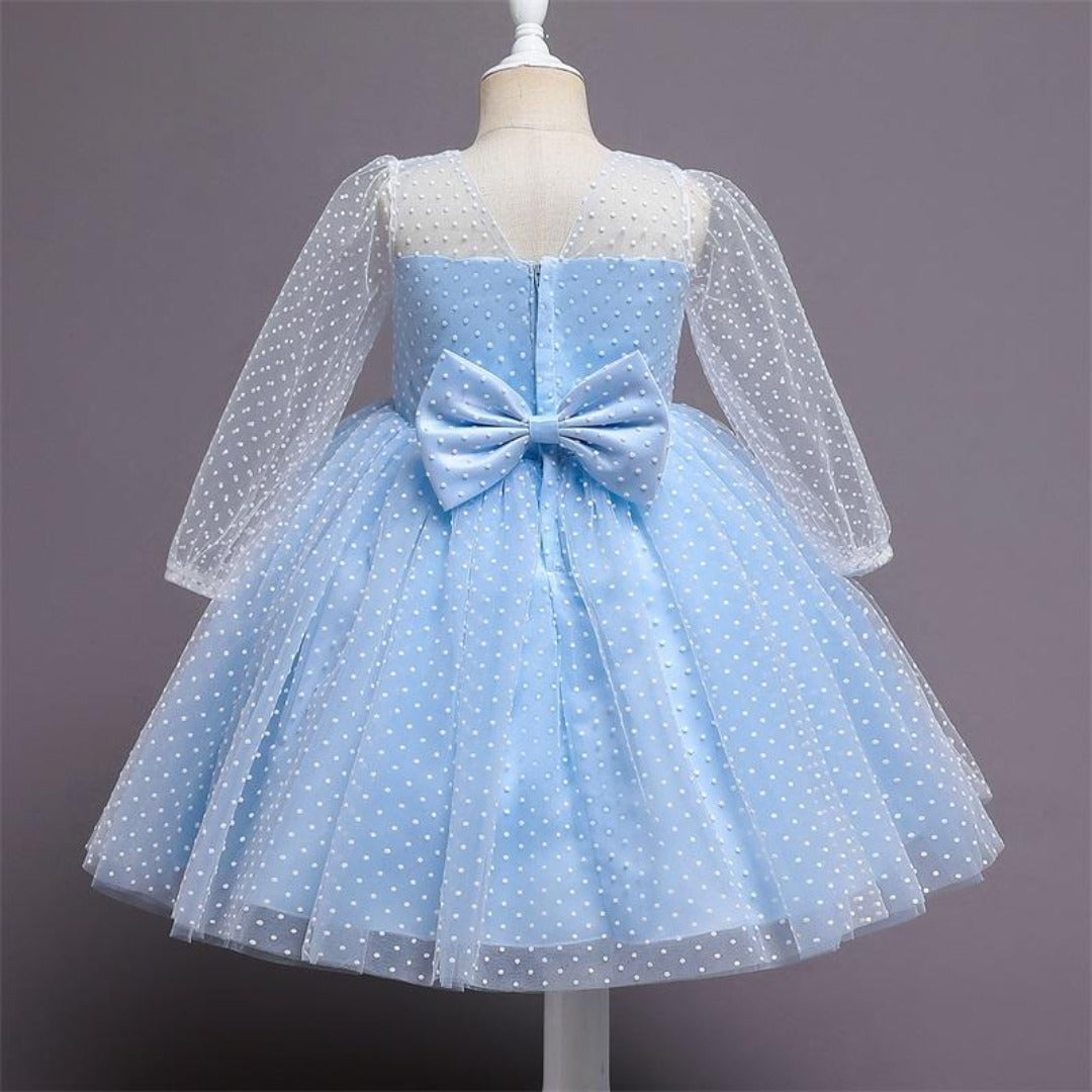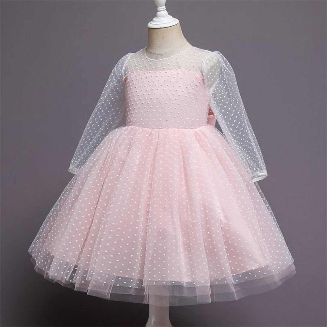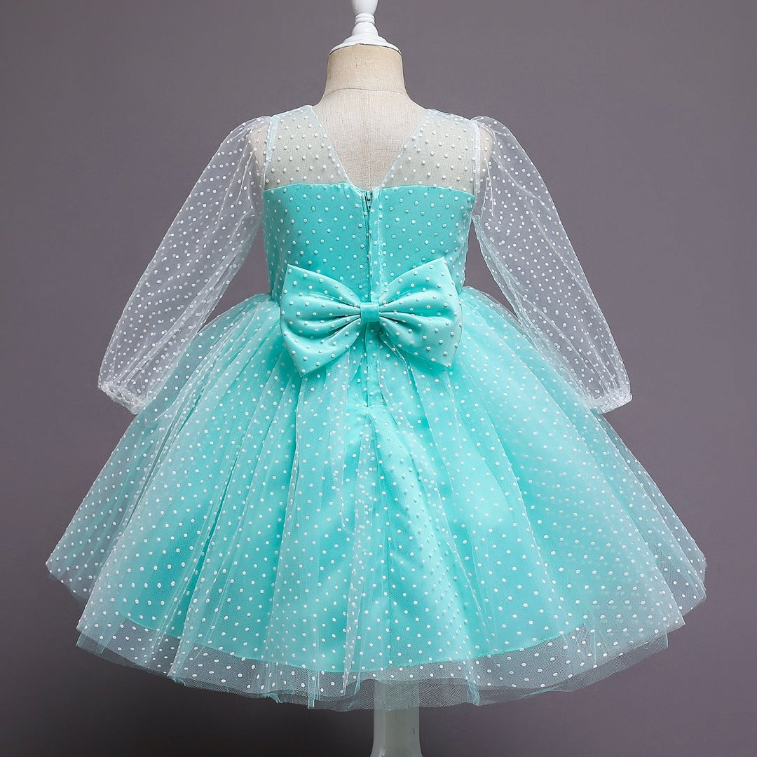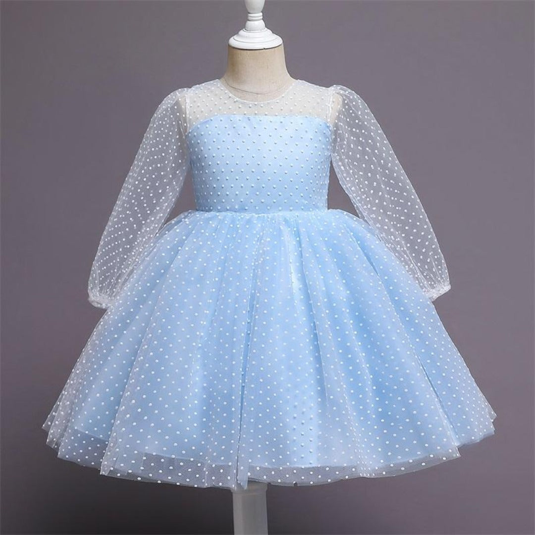 This See Through Long Sleeves Polka Dot Princess Dress for kids is an elegant party dress for girls that will look super cute and fashionable on your daughter.