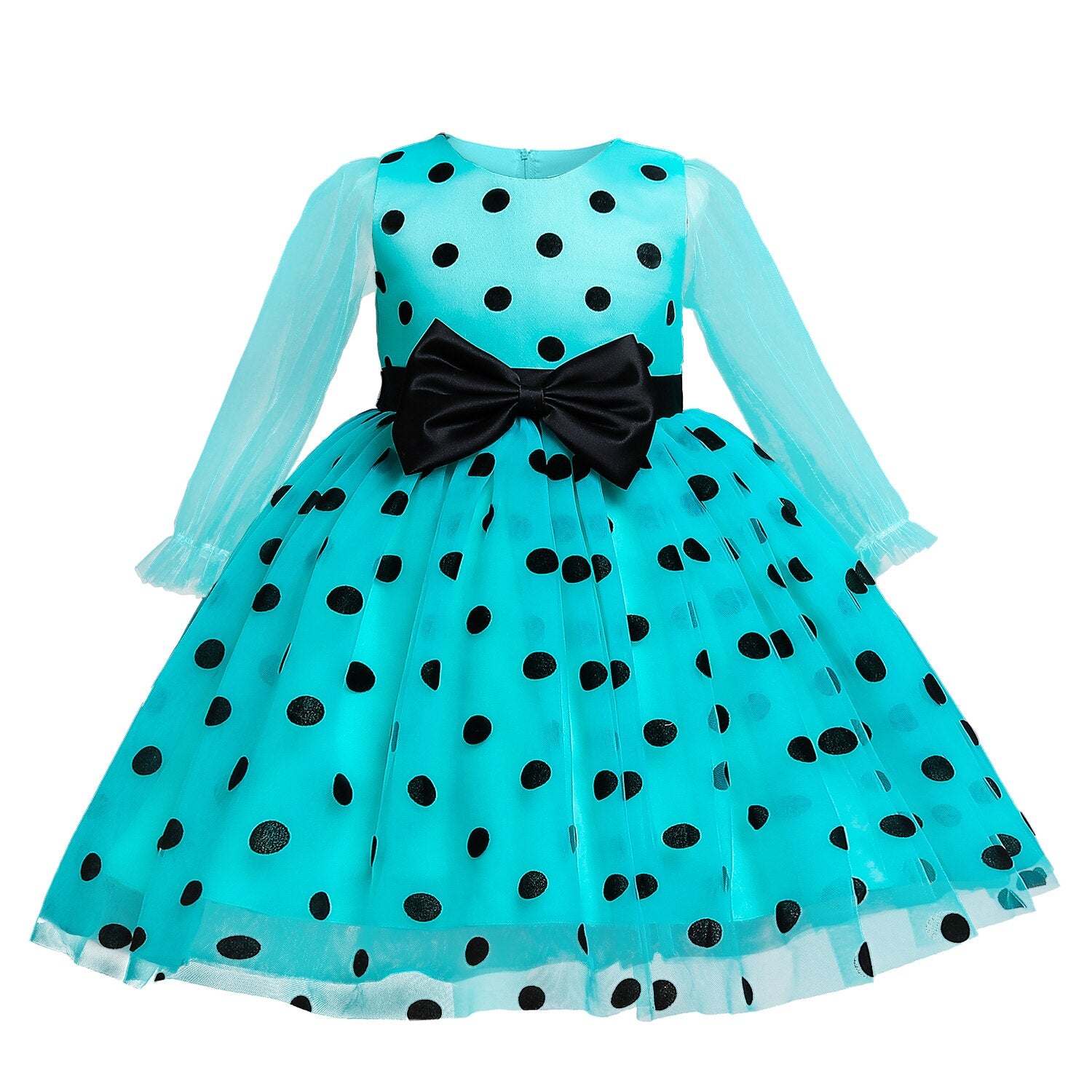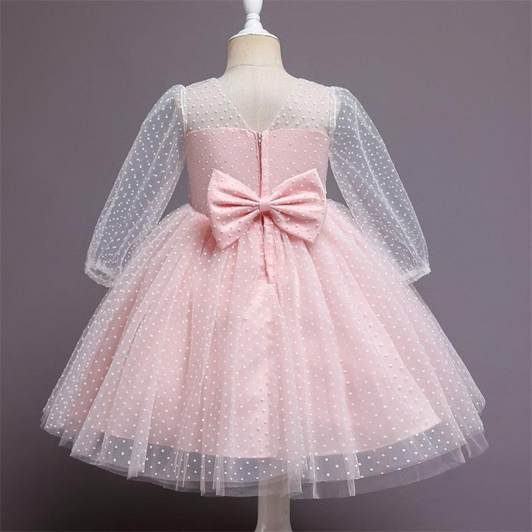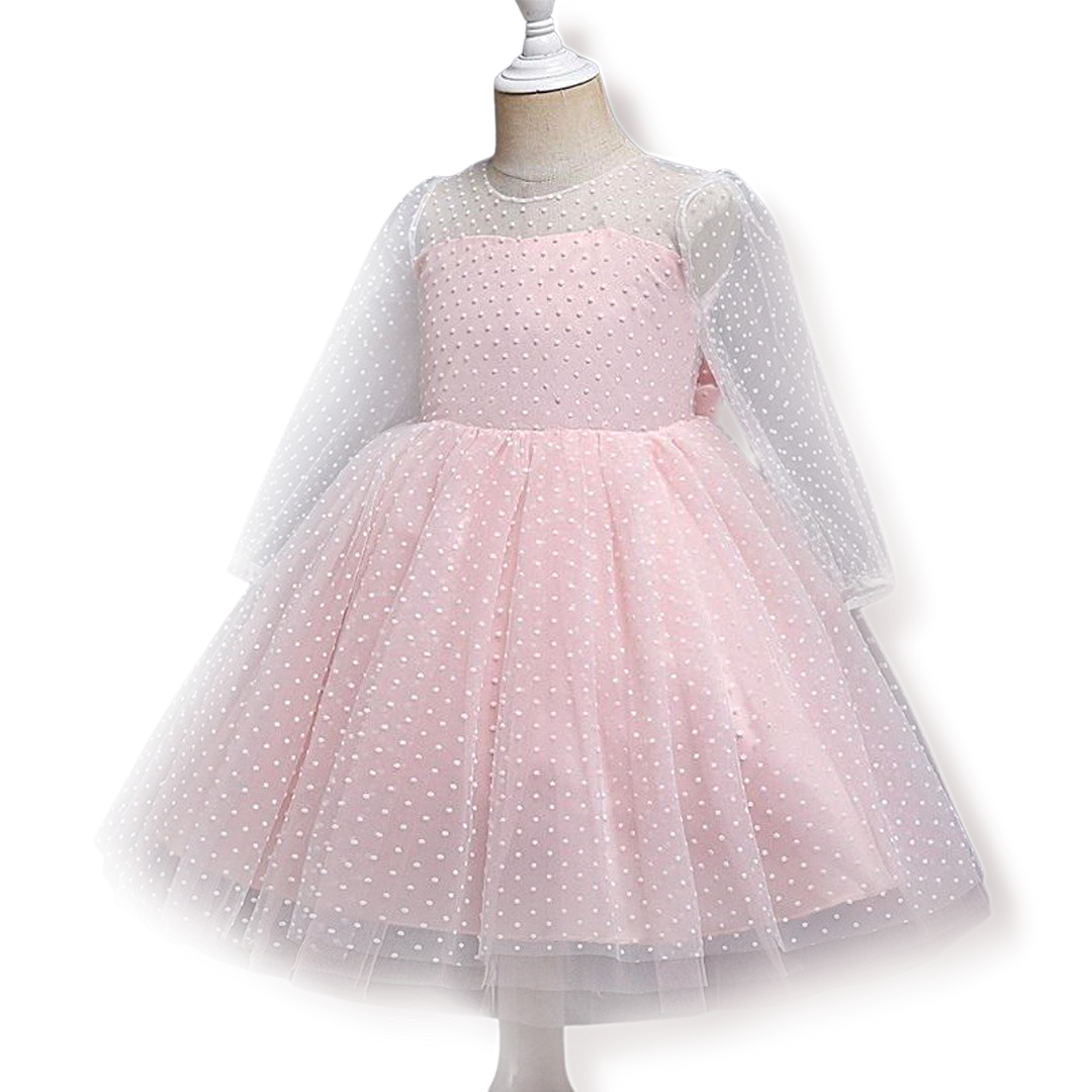 This See Through Long Sleeves Polka Dot Princess Dress for kids is an elegant party dress for girls that will look super cute and fashionable on your daughter.