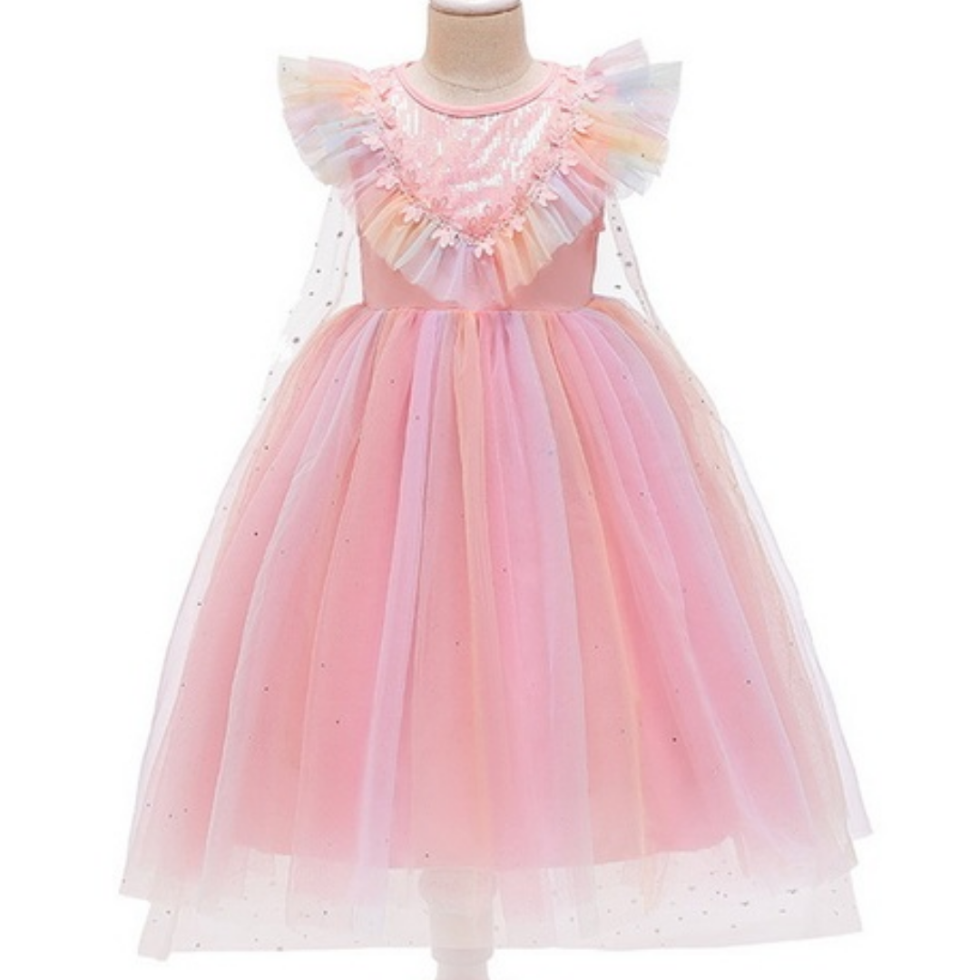 This Sequin Star and Lace Princess Sun Dress Costume with Cape is perfect for a casual princess outfit for your little girls' birthday and kids' party events in summer. It's lightweight and comfortable to wear all day long.