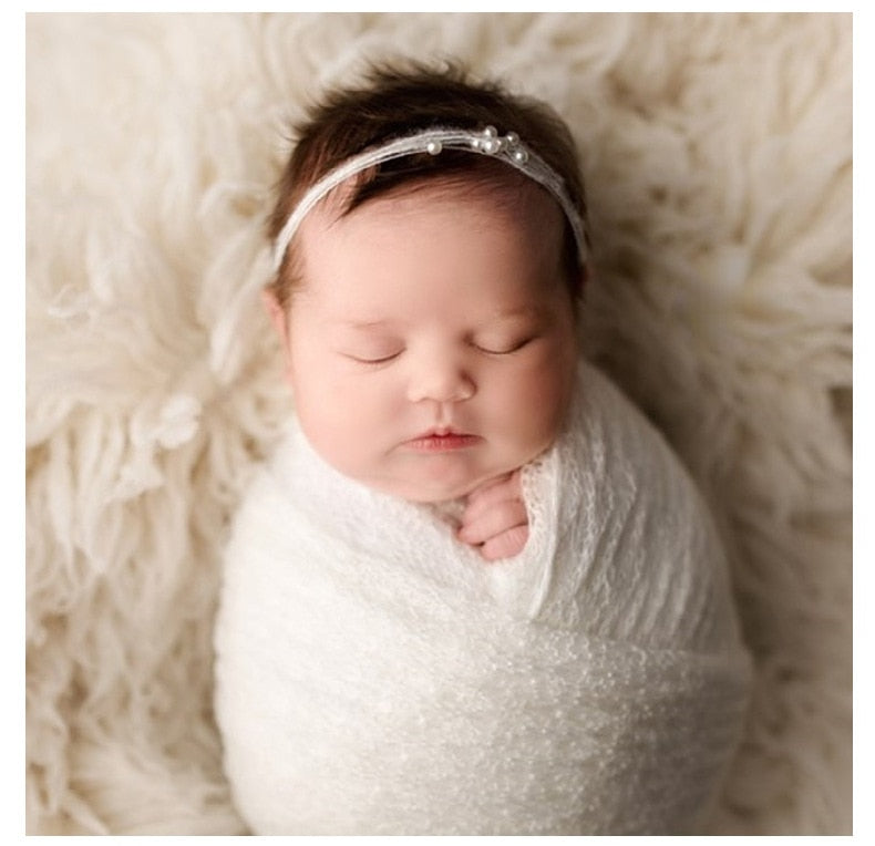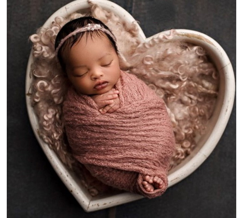 Soft and comfortable stretchy knitted wraps are a must-have for all newborn photographers. These wraps keep the baby swaddled nice and tight so they feel like they are in the womb again. They're great for use by themselves or with a variety of props. They are also great for keeping your tiny babe warm during your newborn photography session.
