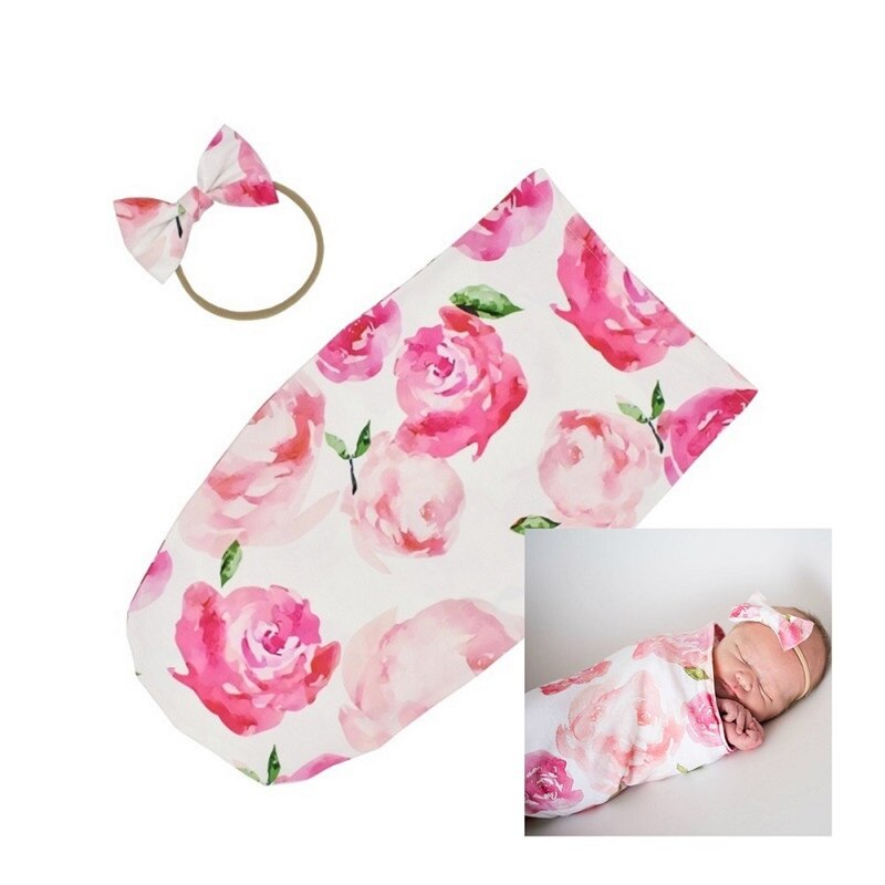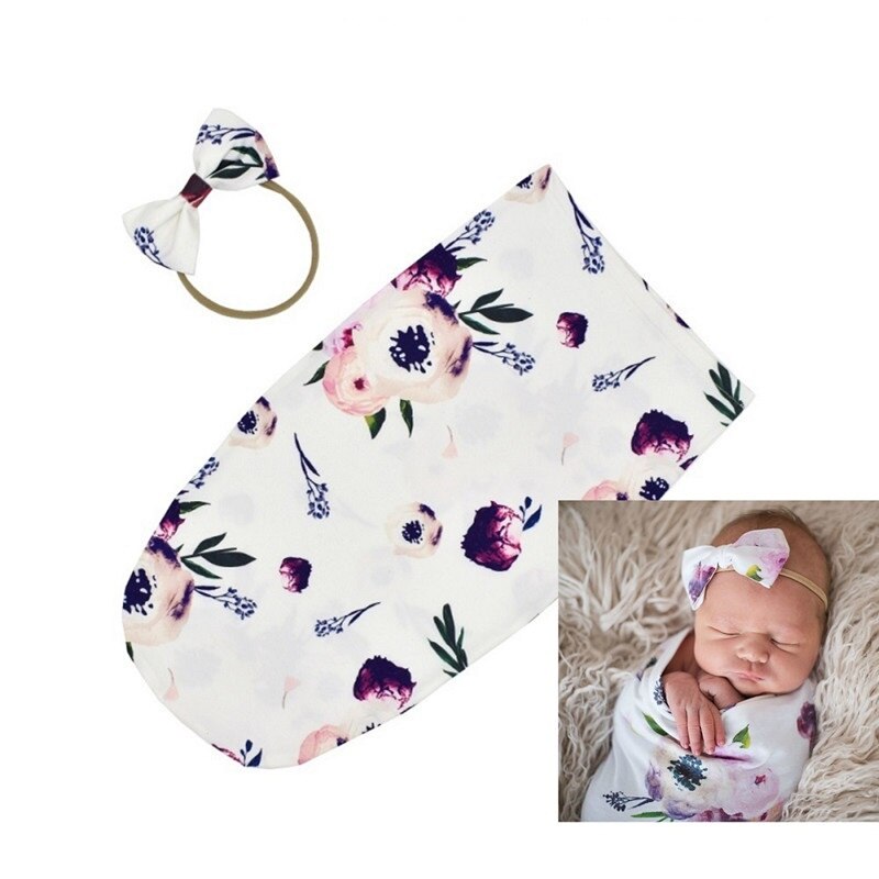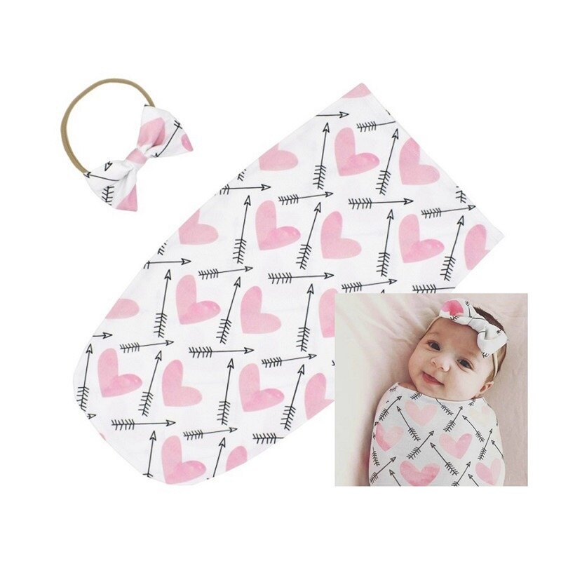 Set of Sleeping Bag Wrap, Newborn Hat, And Headband