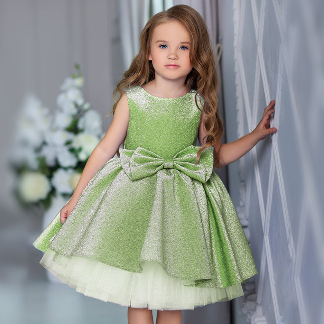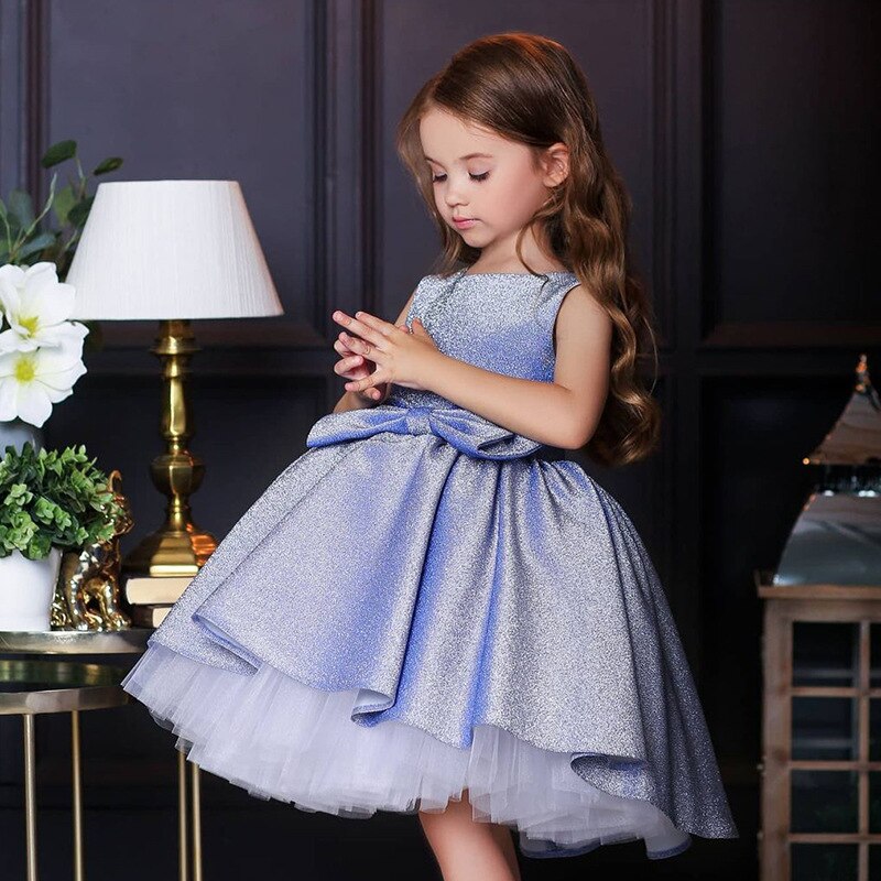 Shiny Glittery Bow Accent Sleeveless Princess Party Dress