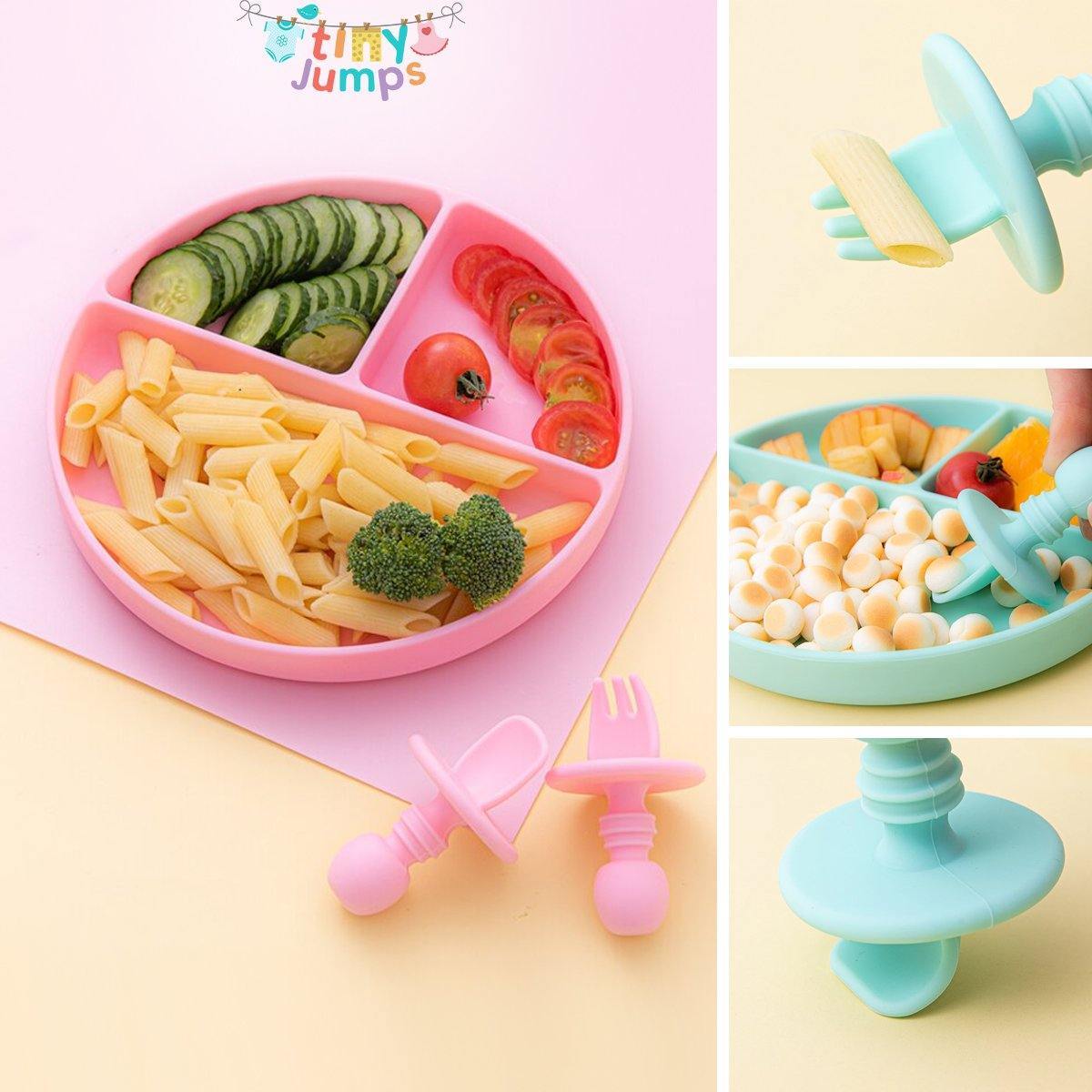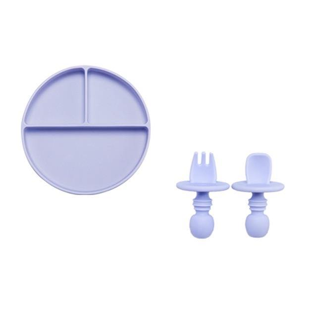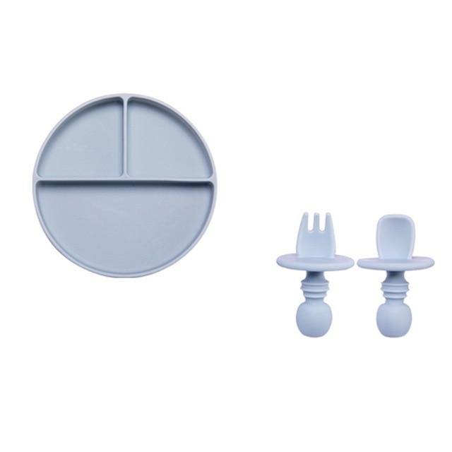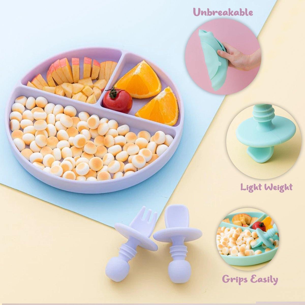 1X Silicone Plate Set for Babies (a silicon plate, spoon, and fork)