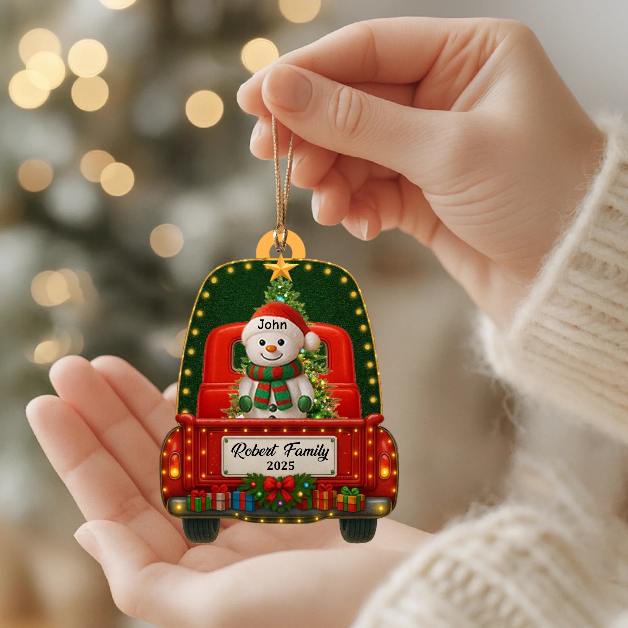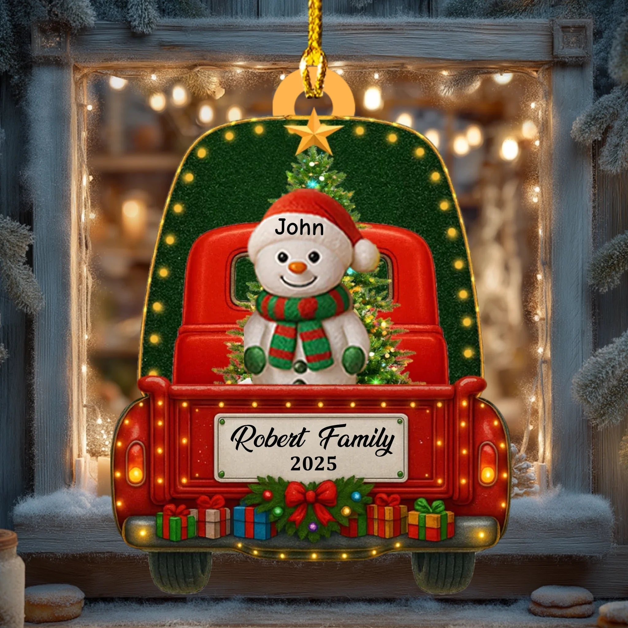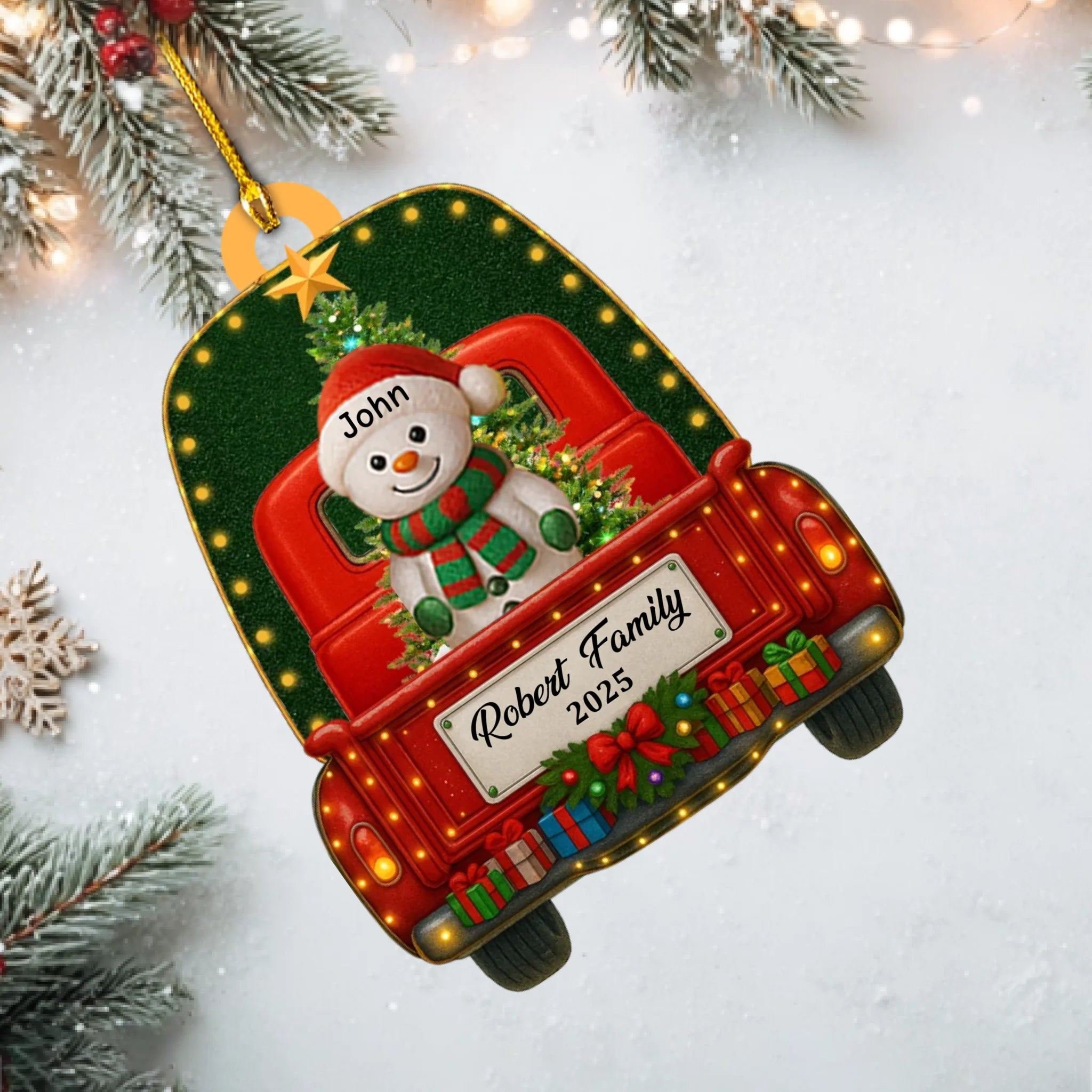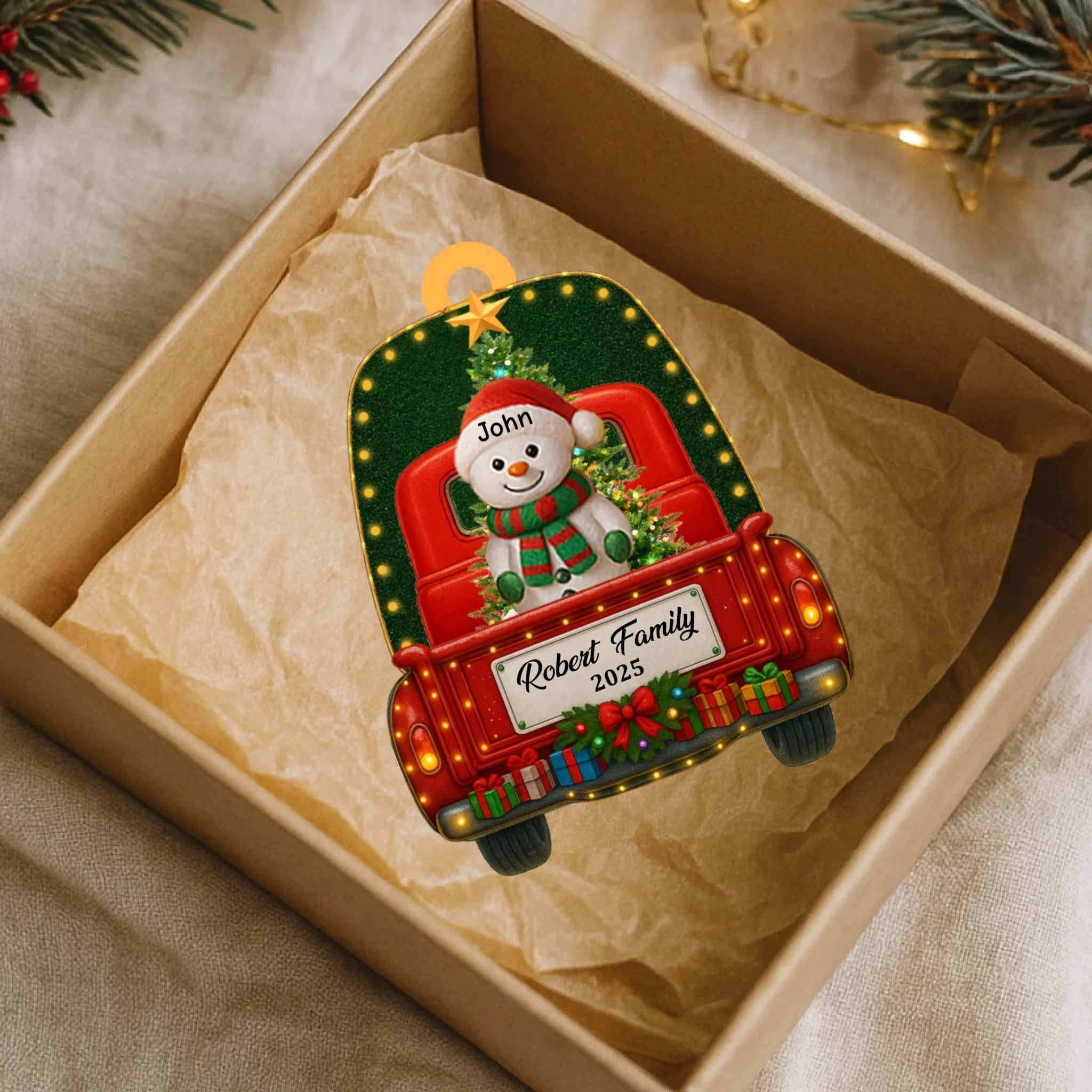 Bring warmth and joy to your holidays with this charming Personalized Snowman Family on Christmas Car ornament. Featuring a cute snowman family riding a festive Christmas car, this ornament captures the spirit of love, togetherness, and holiday cheer. More than just a decoration, it’s a meaningful keepsake that can be fully customized with your family name, the year, and each family member’s name and number — making it a truly unique representation of your loved ones.
