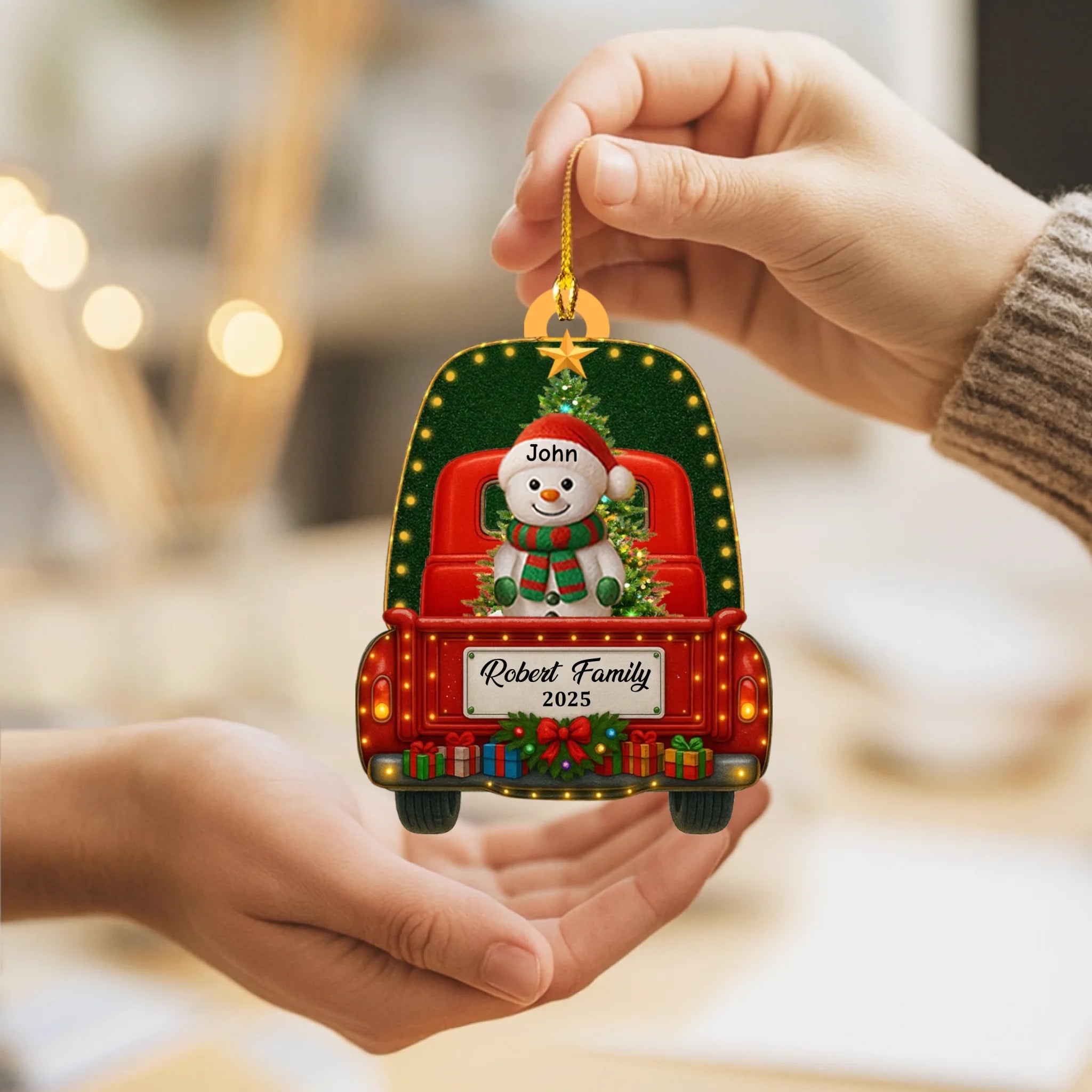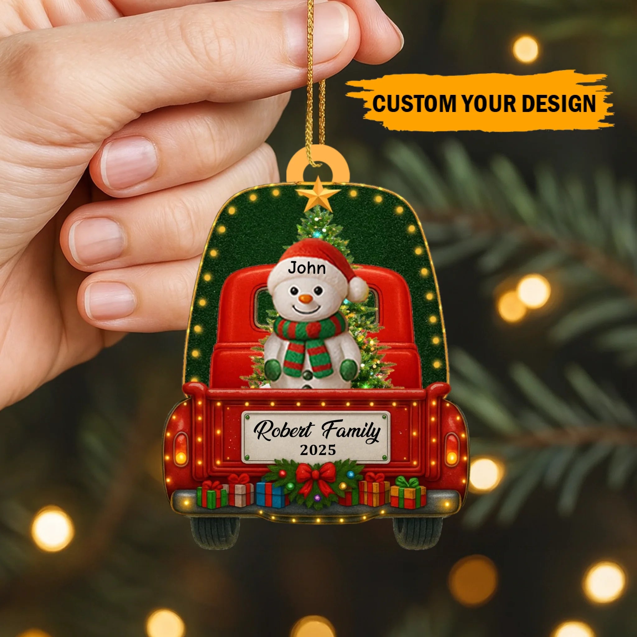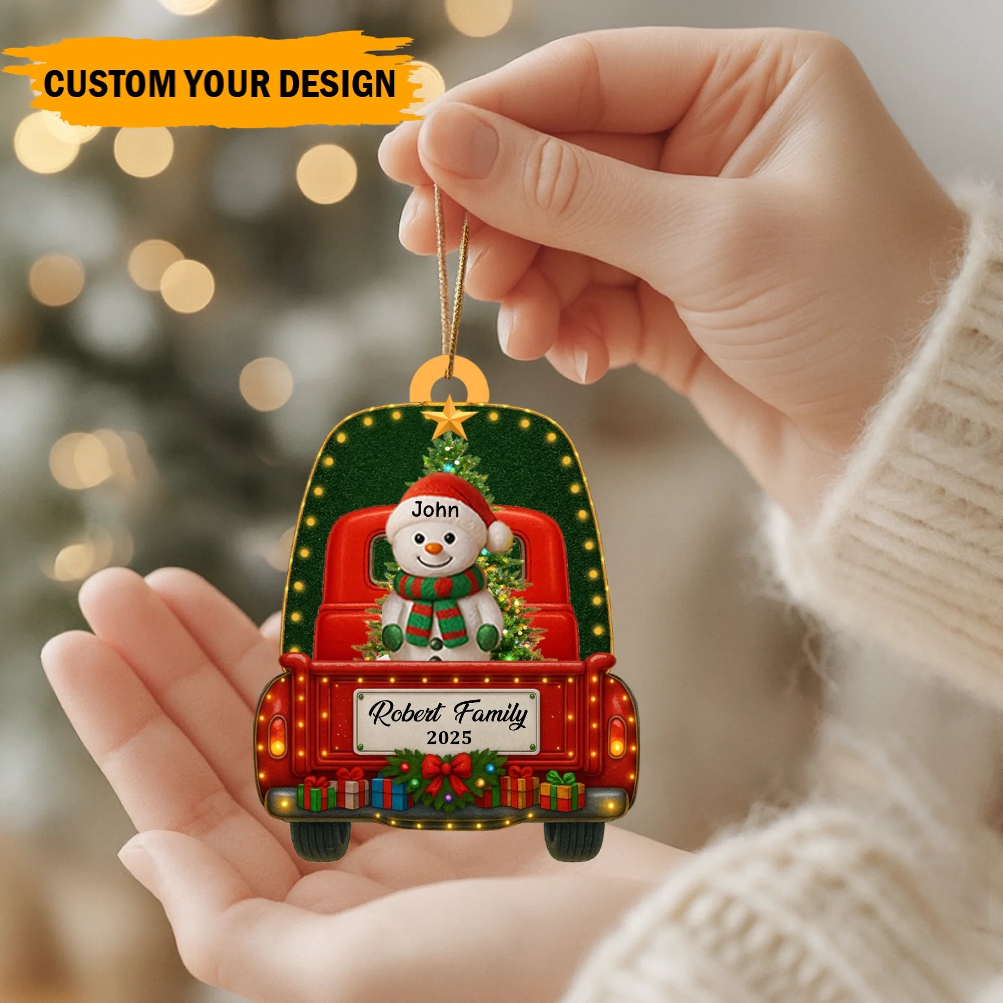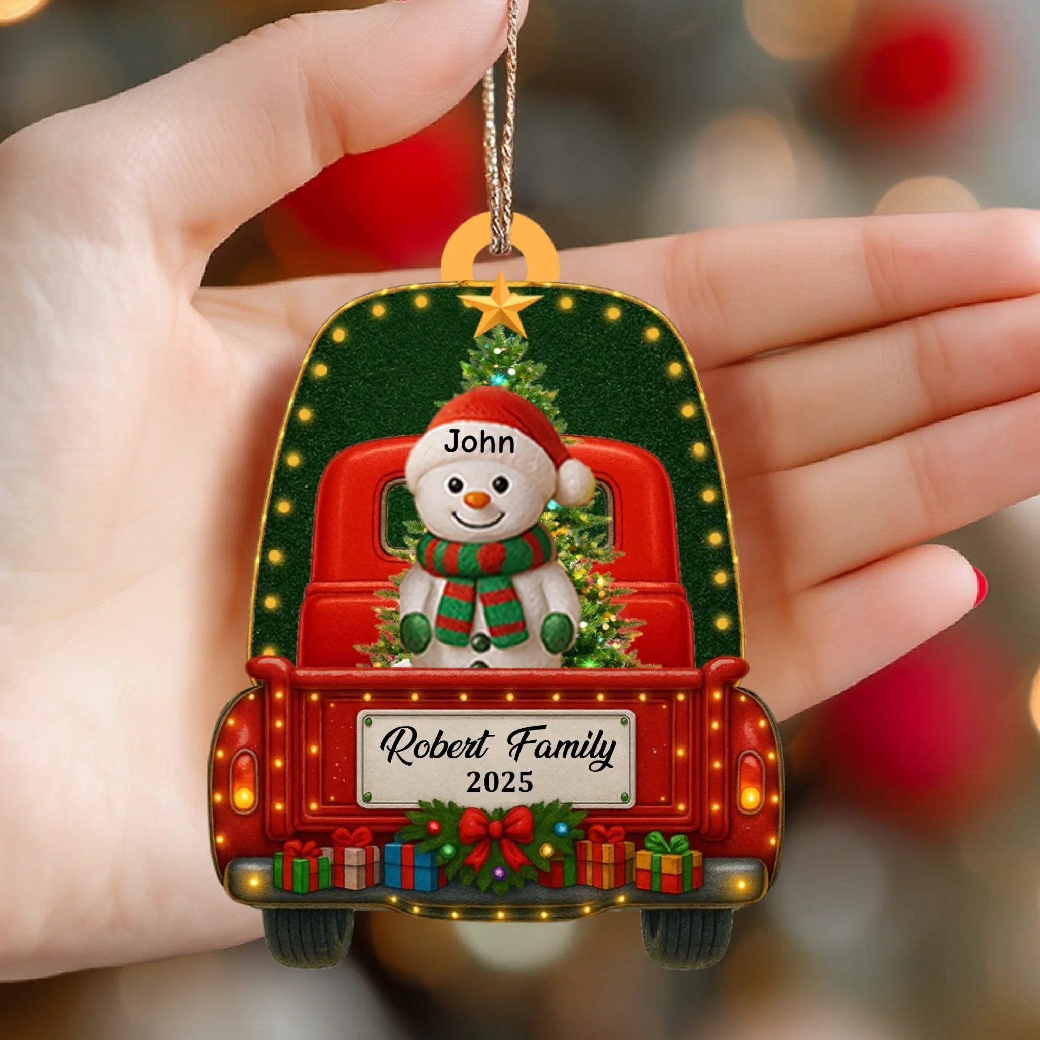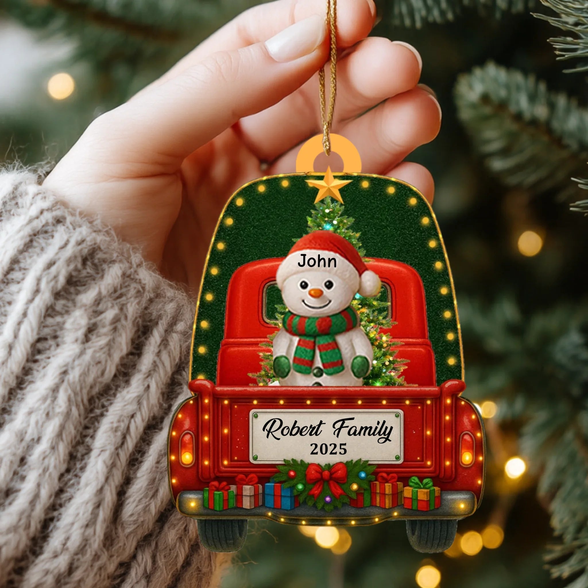 Bring warmth and joy to your holidays with this charming Personalized Snowman Family on Christmas Car ornament. Featuring a cute snowman family riding a festive Christmas car, this ornament captures the spirit of love, togetherness, and holiday cheer. More than just a decoration, it’s a meaningful keepsake that can be fully customized with your family name, the year, and each family member’s name and number — making it a truly unique representation of your loved ones.