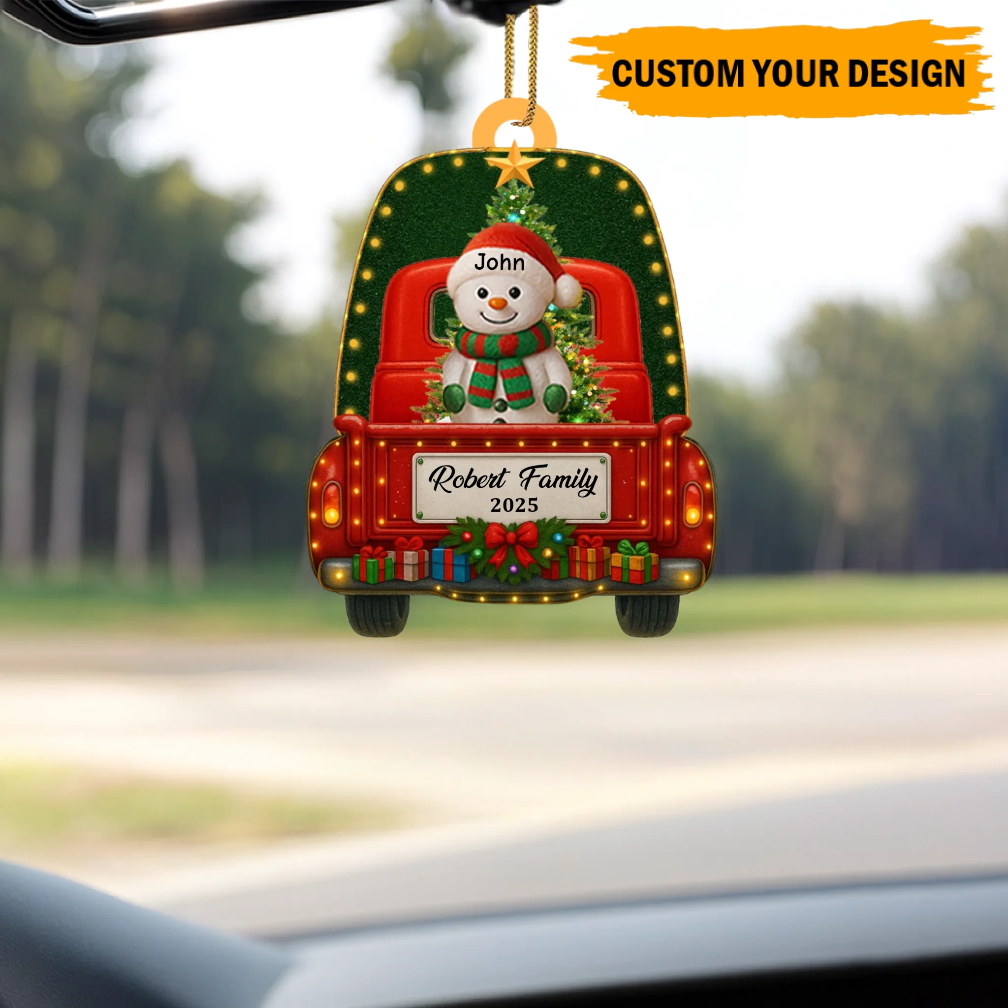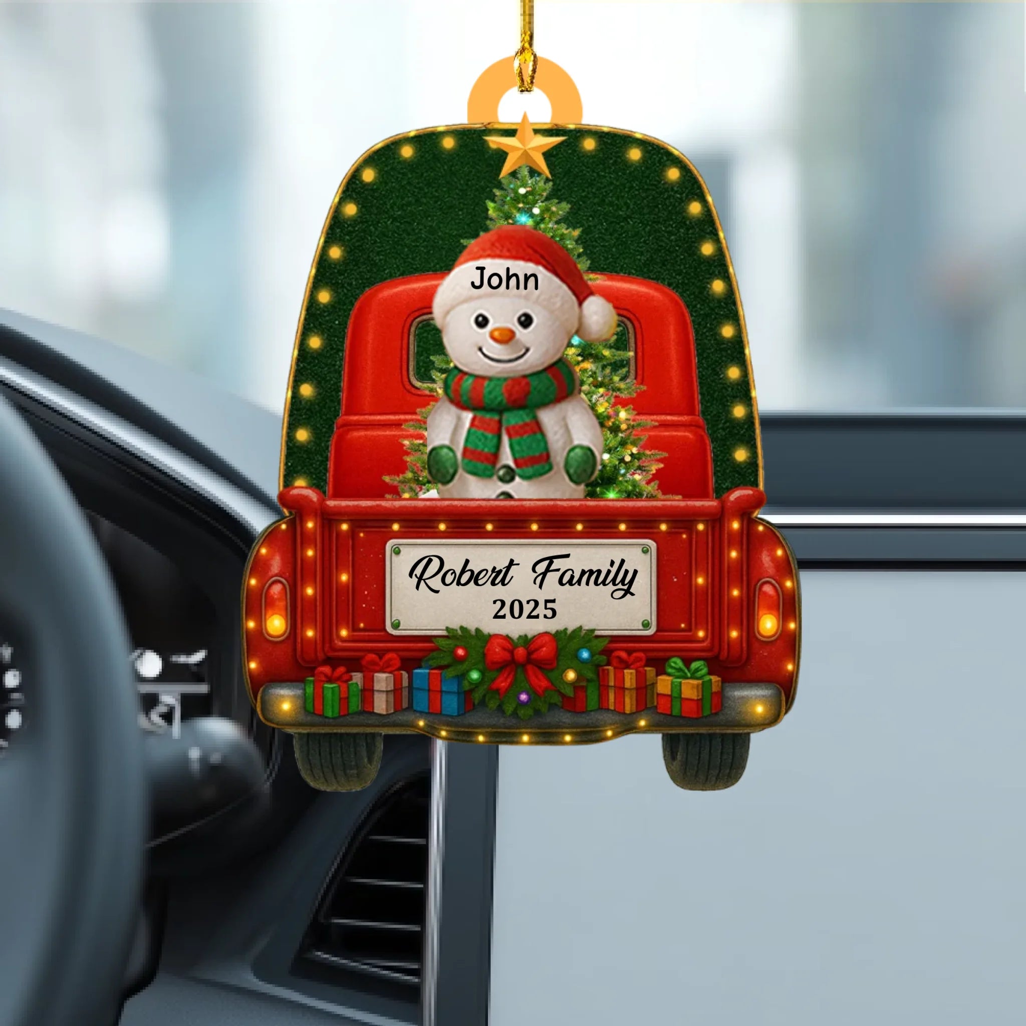 Personalized Snowman Family on Christmas Car Ornament – Custom Family Name, Year & Members | Unique Wooden Christmas Decoration Gift