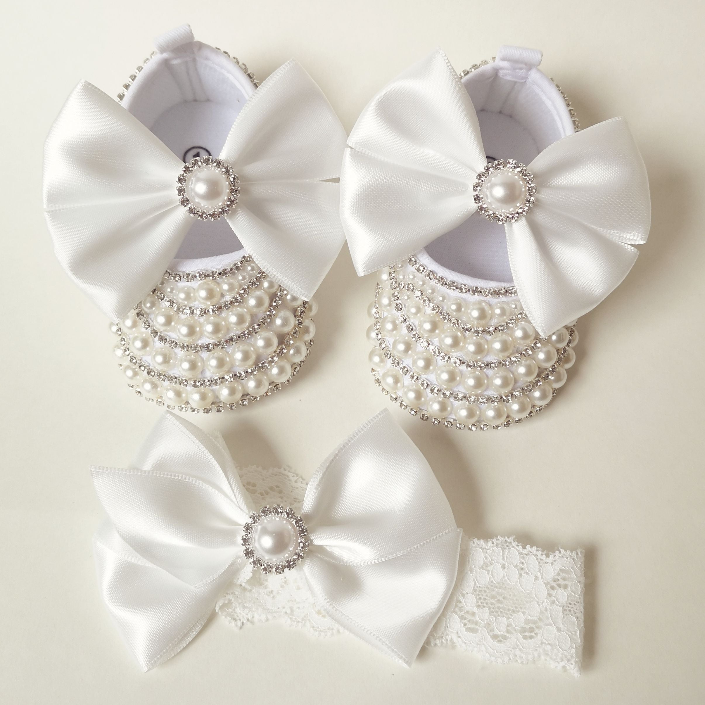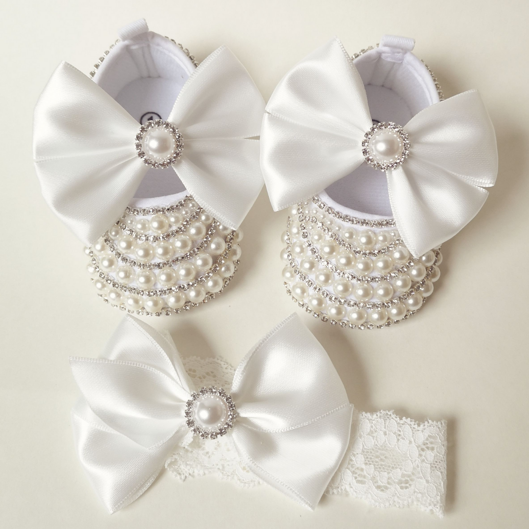 Soft Sole Handmade Pearl Diamond Baby Shoes