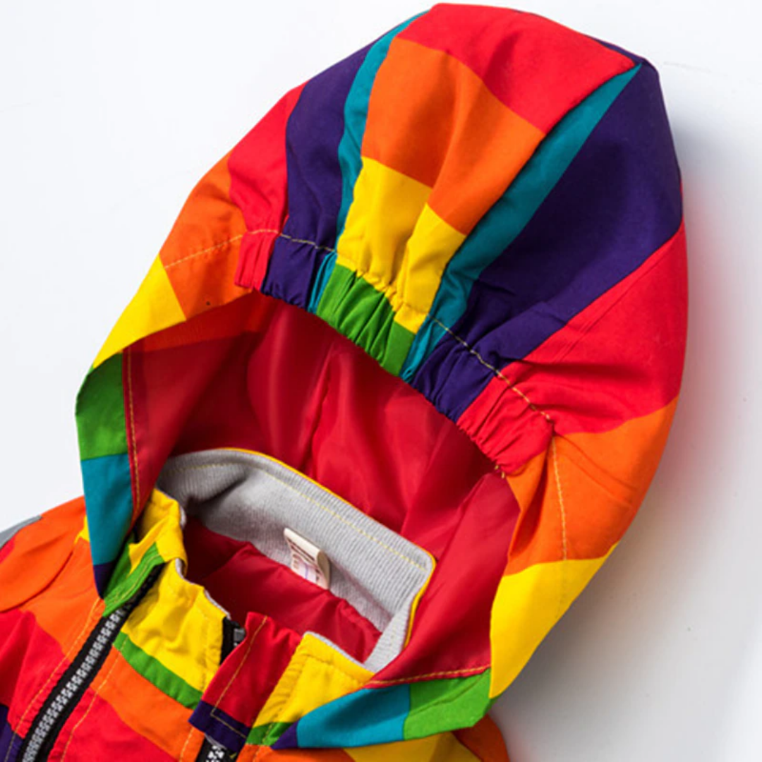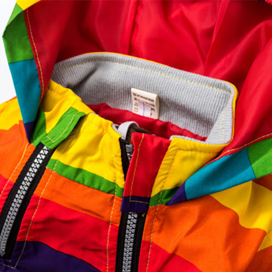 Rain or shine, you'll stay warm and dry in this Star Rainbow Stripes Windbreaker Hoodie Jacket. Our stylish and affordable jacket will keep you looking cool this autumn and winter. It's made of polyester and cotton material with a rainbow stripes color design. The jacket has a hood for extra protection from the cold, while its zipper ensures that everything stays in place.