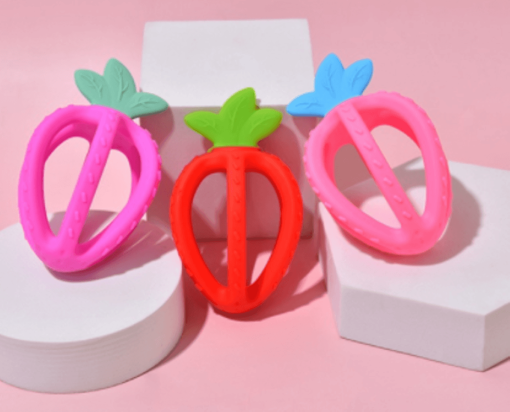The Strawberry Silicone Pendant Baby Teethers has the characteristics of bite resistance and unique texture, can meet different needs of long-term bitterness, relieve toothache out and allow baby to chew freely.
