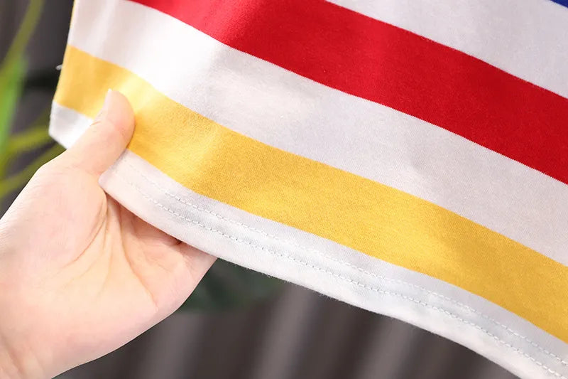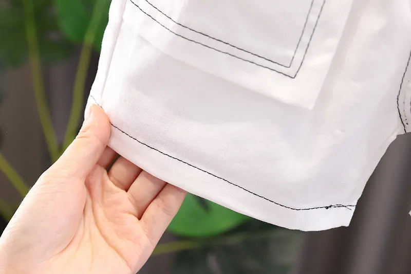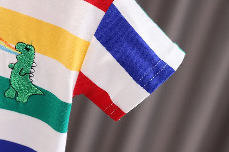 Upgrade your child's summer wardrobe with our fun cartoon dinosaur clothes for kids. This fashionable ensemble includes a comfortable T-shirt, matching shorts, and a cute bag, making it a versatile and stylish choice for boys and girls aged 12 months and up.