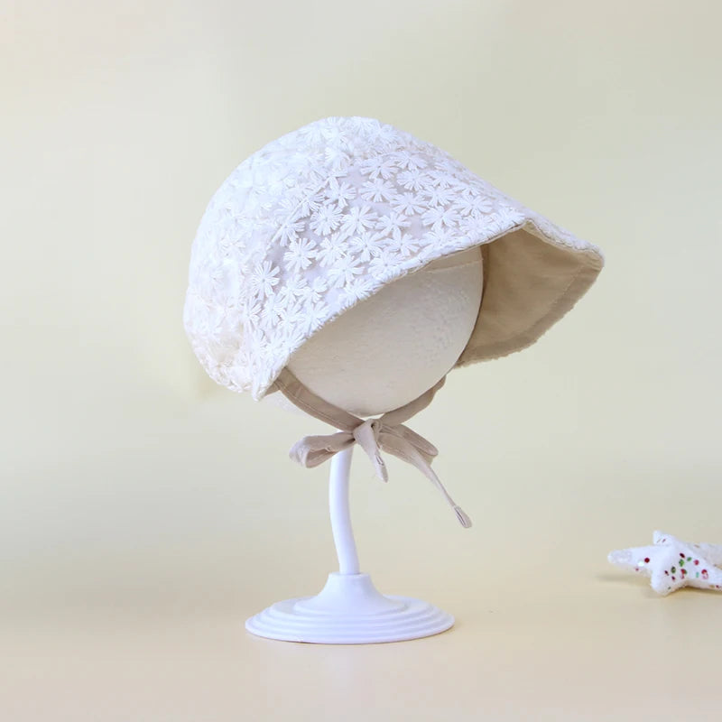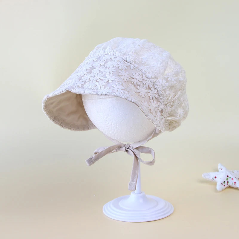 Summer Lace Flower Baby Hat: Princess Infant Sun Cap