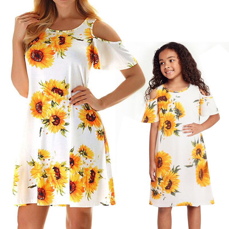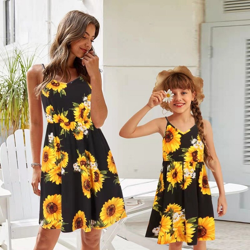 Sunflower Pattern Casual Loose Women's Dress For Mother And Daughter