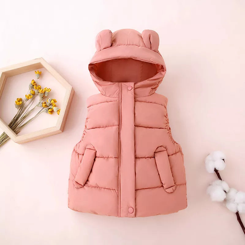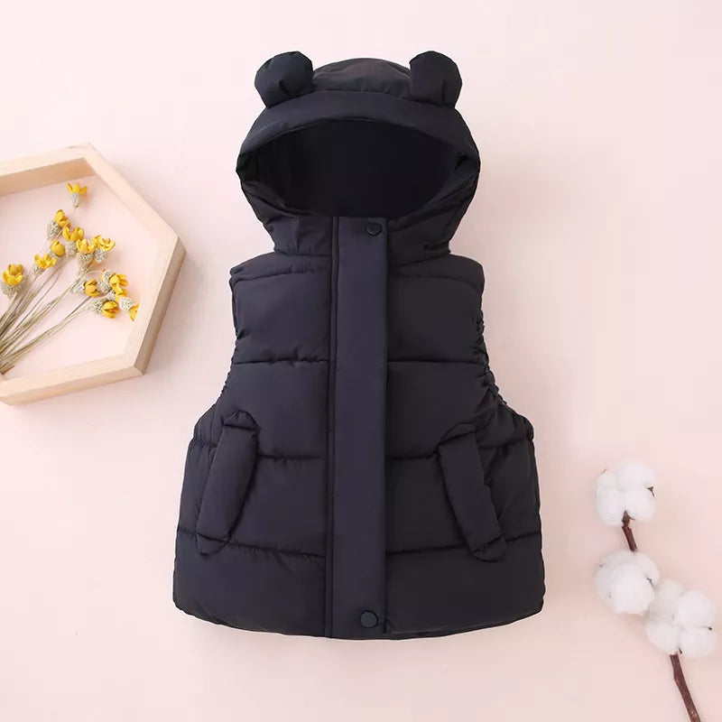 Introducing Our Cozy Toddler Hooded Cotton Padded Vests - A Winter Essential for Little Ones!
