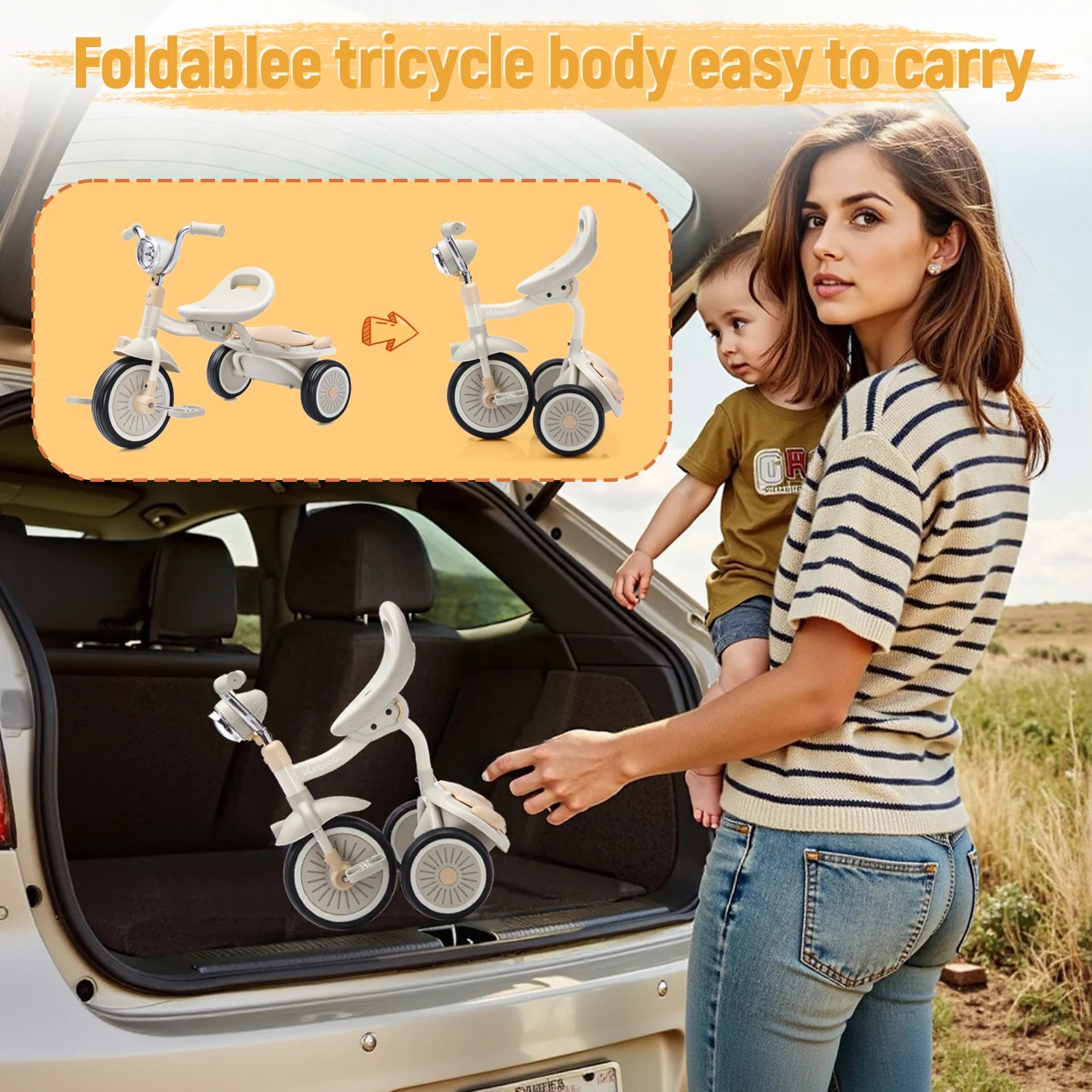 Toddler Tricycle Foldable Kids Pedal Trike Pedal 3 Wheels Baby Walker Trike for Boys Girls 18 Months to 5 Years Old
