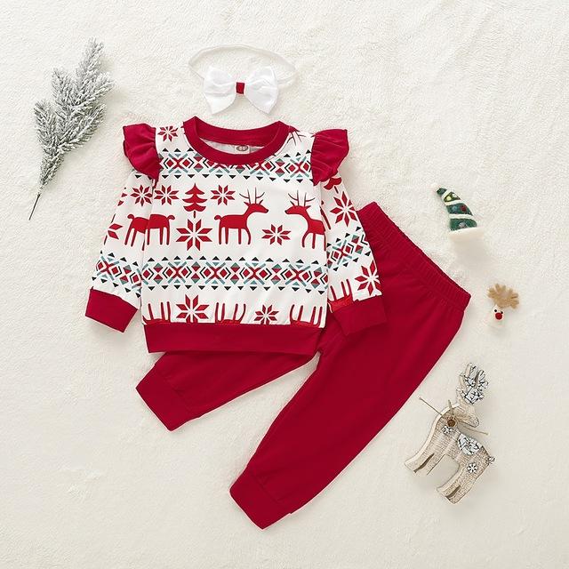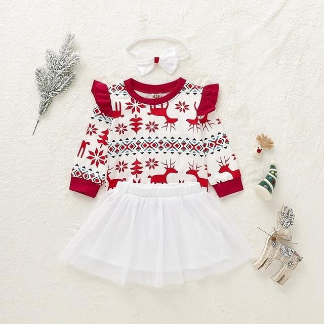 Unisex Christmas Outfit is a treat for parents who have fraternal twins. The outfit has a combination of vibrant Christmas colors that makes it eye-catching. The outfit comes with pants as well as a tutu, making it suitable for both, boys and girls. The cotton material of the outfit provides comfort and warmth to little kids. The elastic ankle pants allow stretchable movement. The images of reindeers on the top, portrays the festive vibe of the occasion. The outfit also comes with a bow headband serving as a fashion symbol.