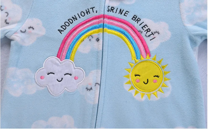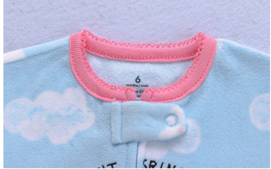 Stay Cozy in Style with our Warm Fleece Baby Romper - Adorable Cartoon Foot-wrapped Pajamas!