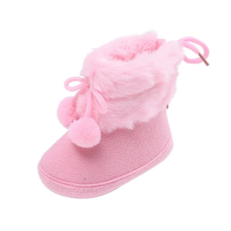 Step into the enchanting season with our delightful Winter Snow Baby Boots—crafted to keep your little one's feet warm and stylish. These soft sole booties, adorned with charming fluff balls, redefine winter fashion for baby girls.