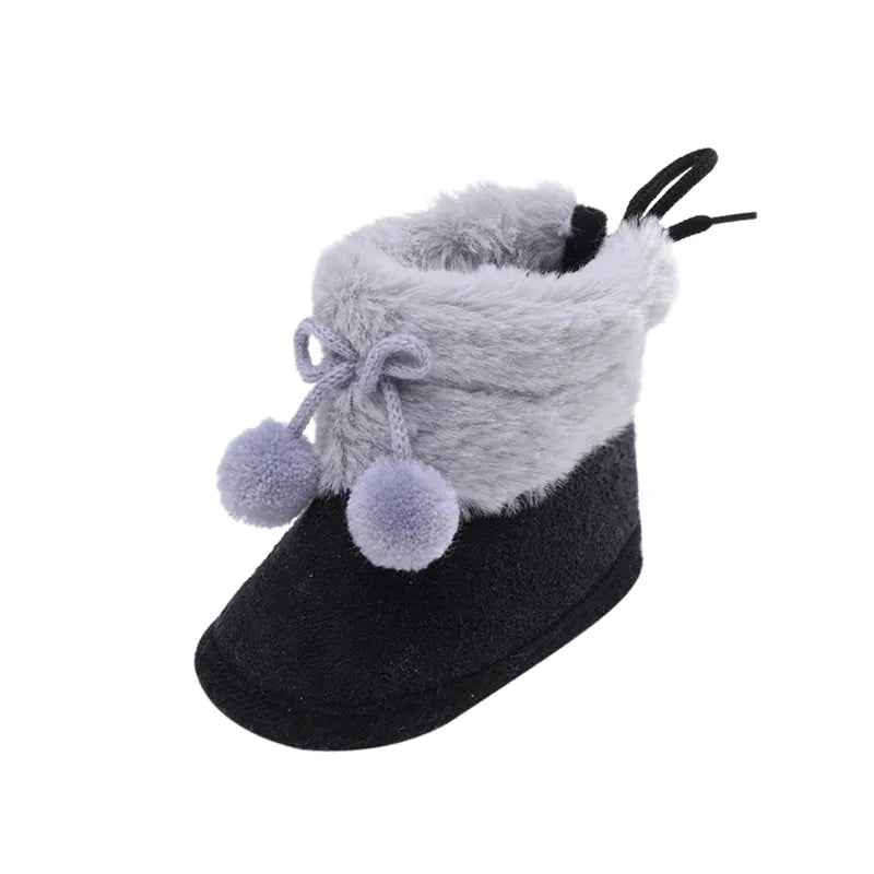 - Winter Wonderland Fashion: Tailored for the winter season, these boots are a must-have accessory for your baby girl. The enchanting fluff ball booties add a playful touch, transforming every step into a magical adventure.