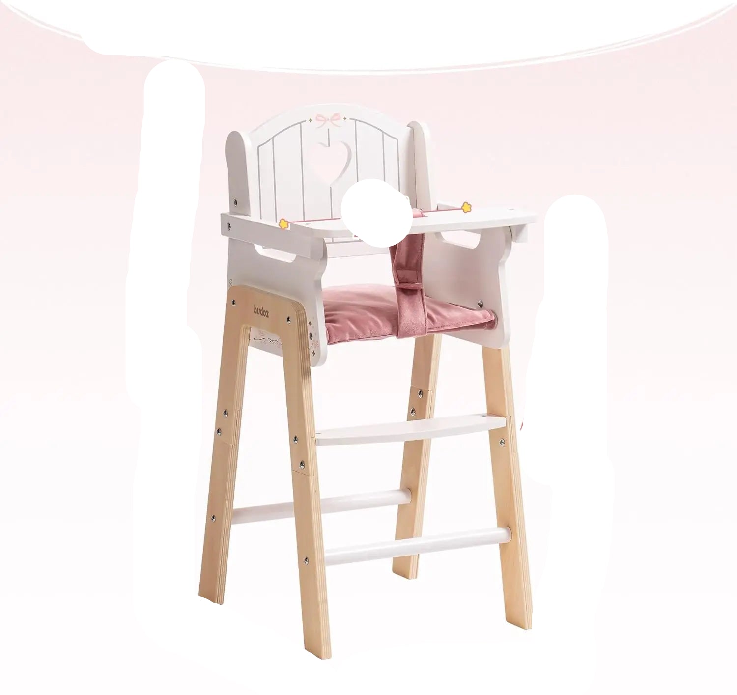 Lightweight yet sturdy, it’s easy to assemble and perfectly sized for dolls measuring 18–20 inches. Whether for feeding, storytelling, or tea parties, this high chair encourages children to practice care, empathy, and creativity.