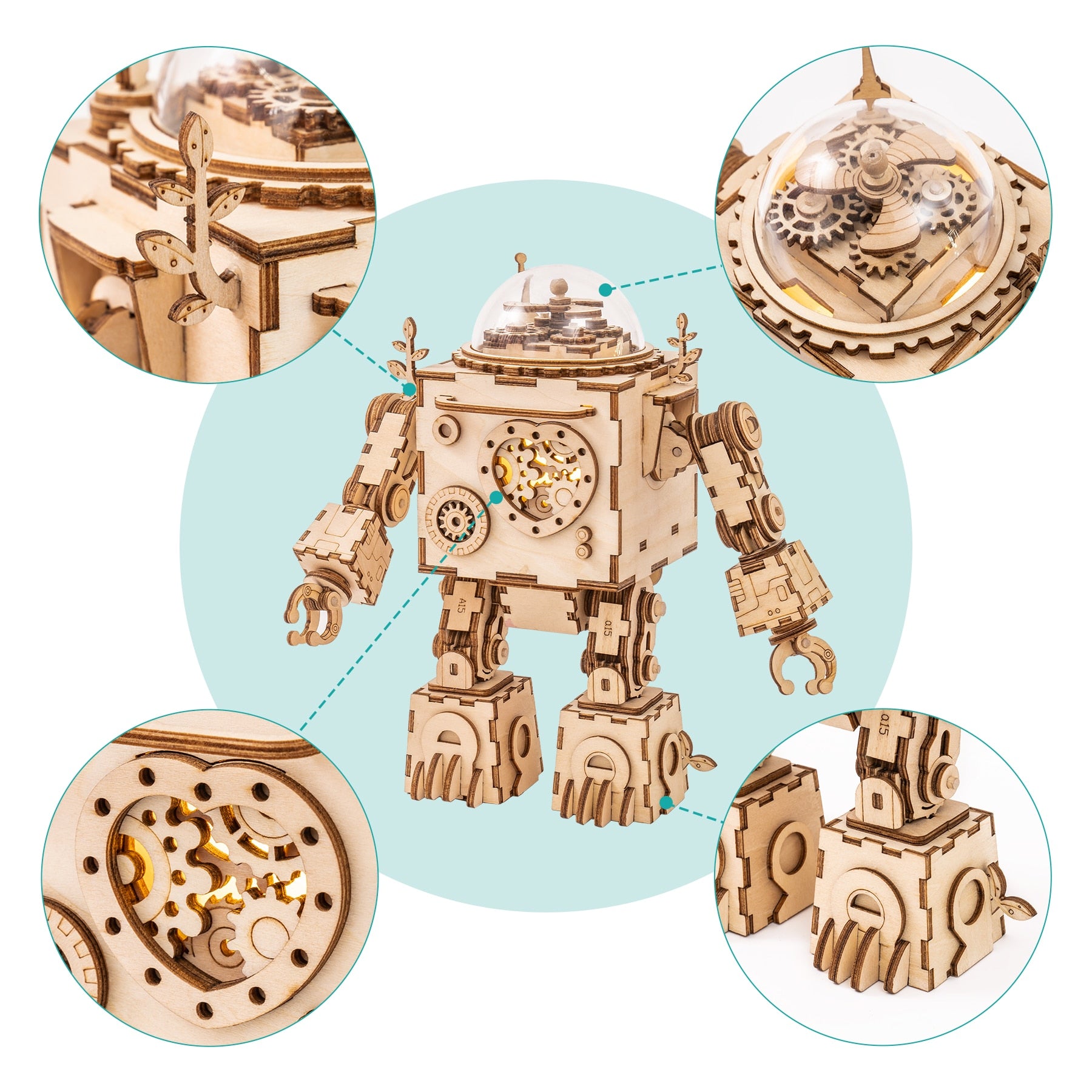 Wooden Educational Toy | Robot Steampunk Music Box | Gift for Your Children