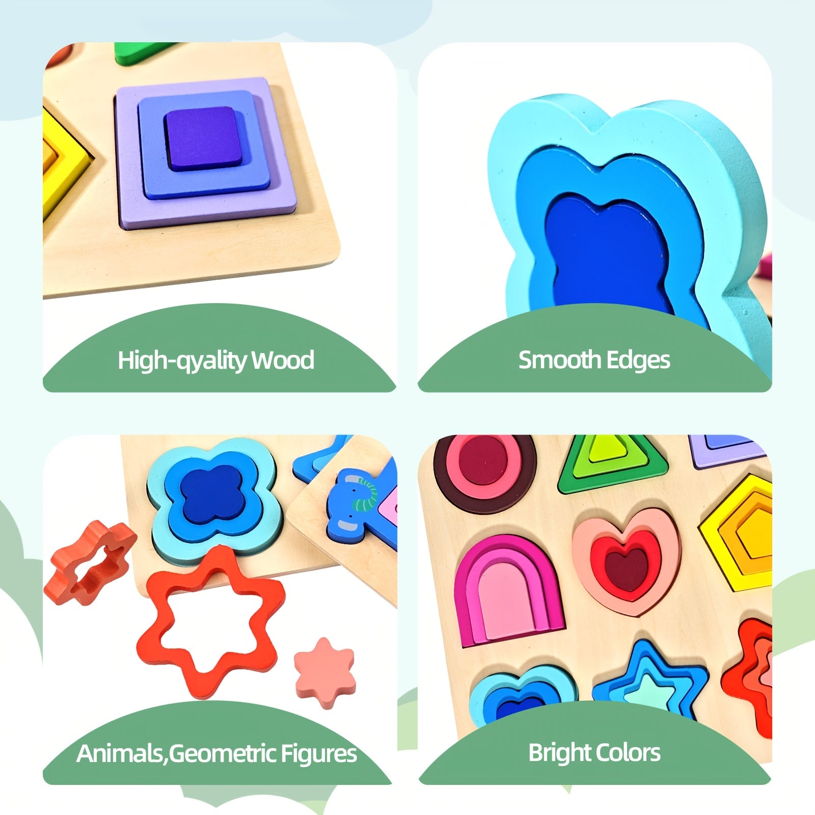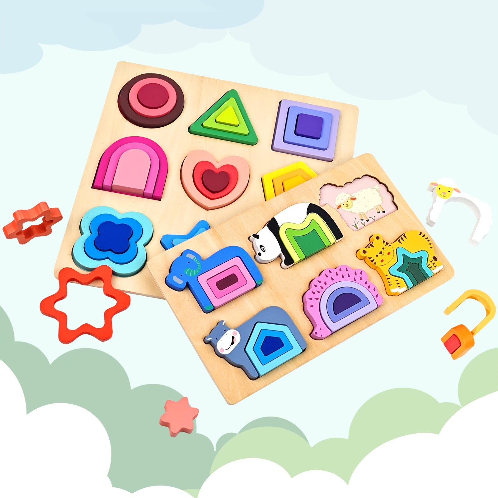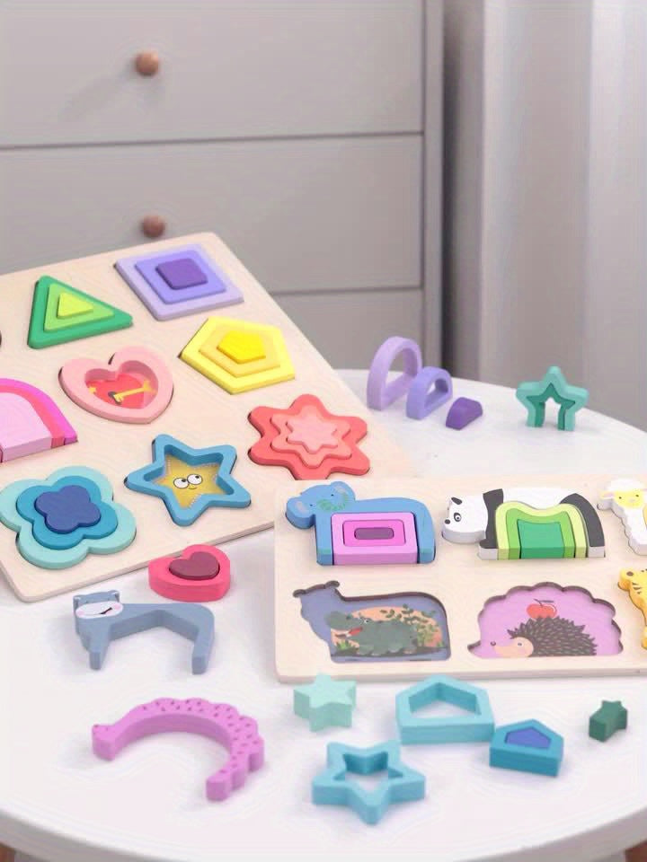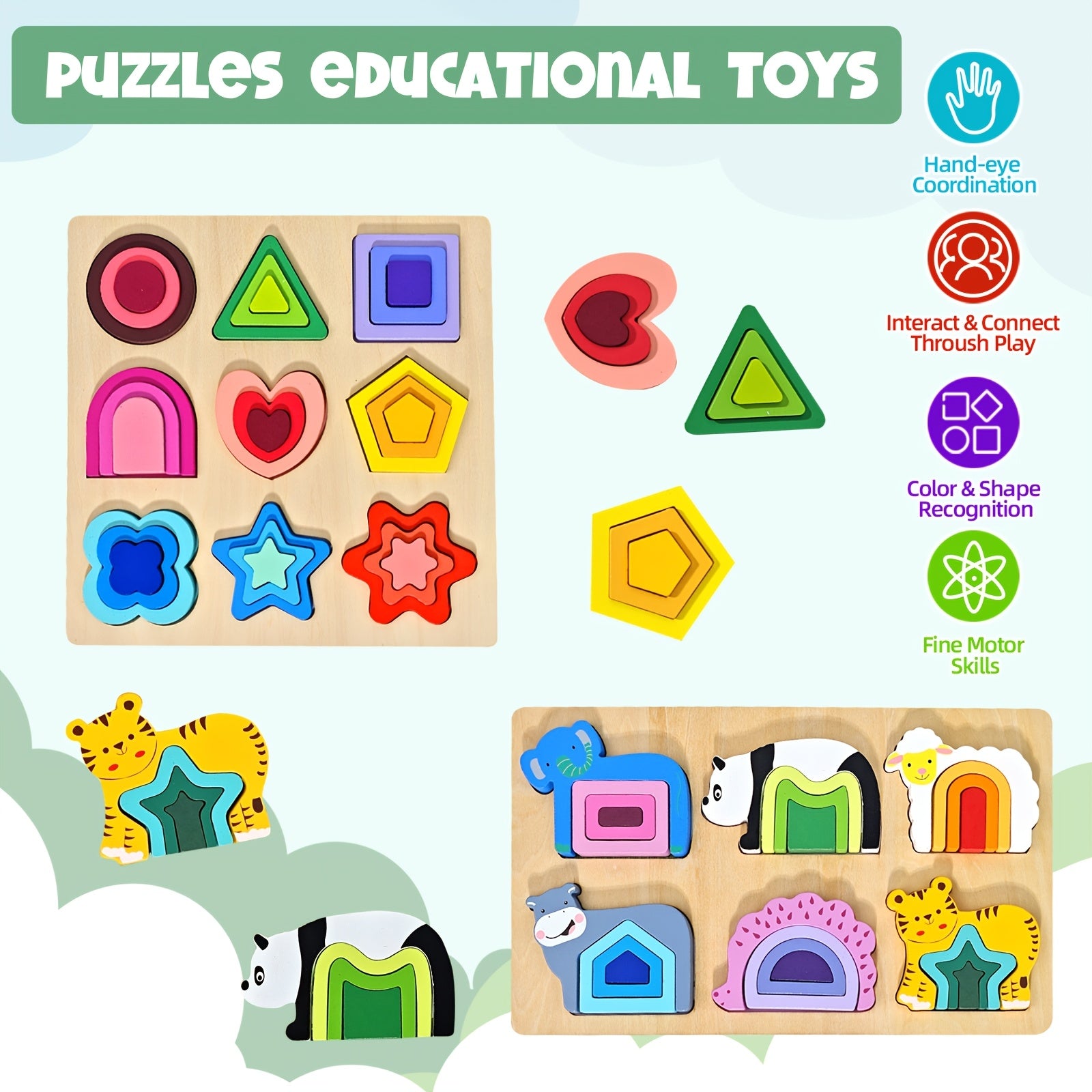 Styles: Animal puzzles, geometric puzzles, shape-sorting puzzles