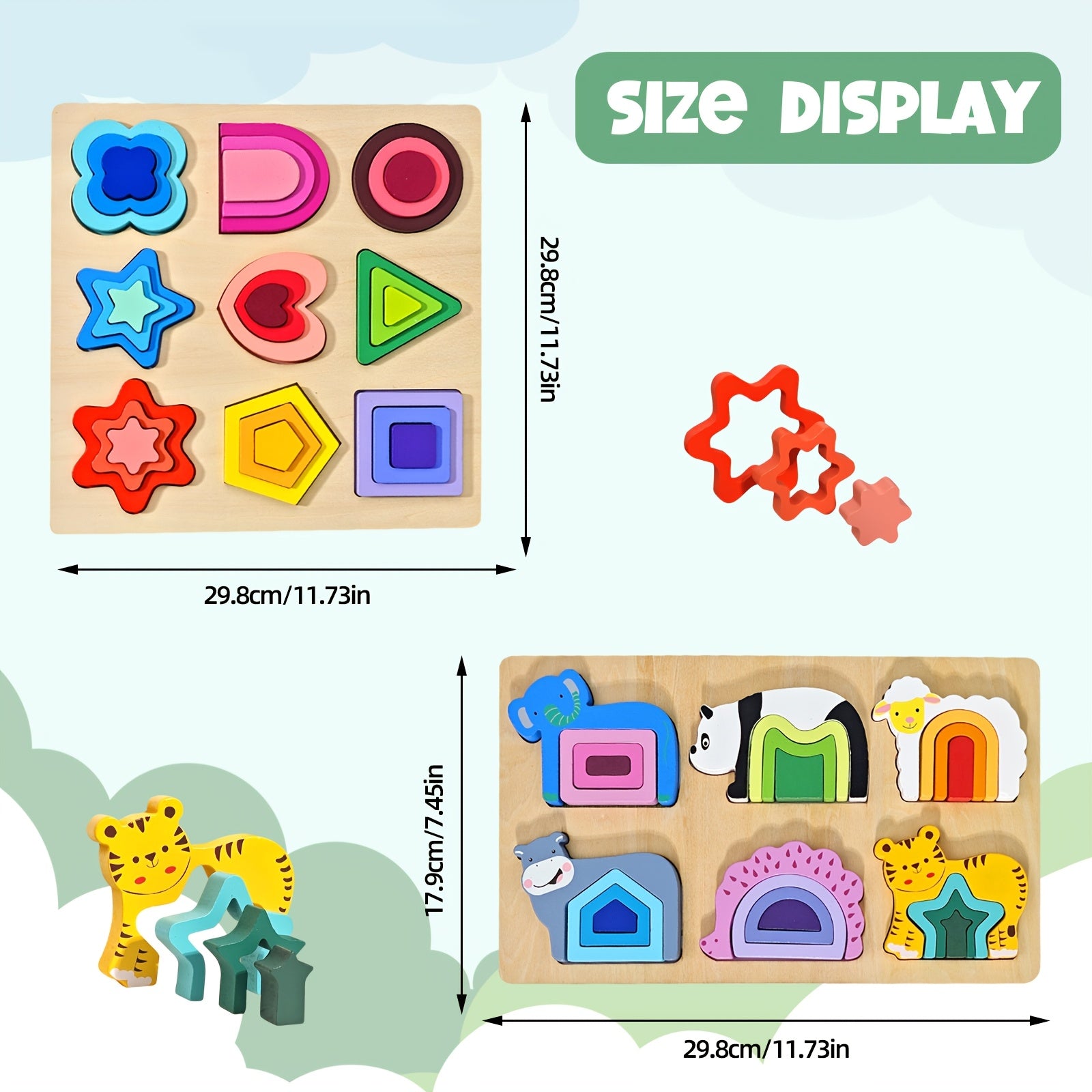 These wooden puzzle toys are designed to spark curiosity and develop key skills in toddlers. With bright colors and engaging designs like animals and geometric shapes, they encourage children to match, sort, and solve puzzles while having fun.