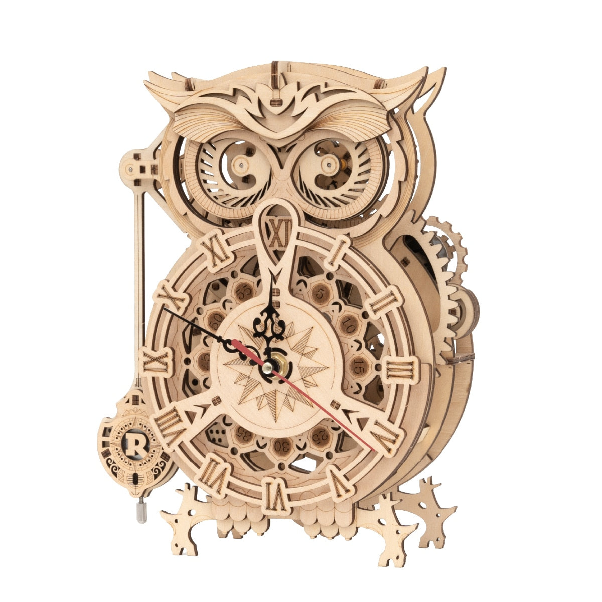 Mechanical gear clock with a beautiful owl shape and battery movement. It has a wind-up pendulum with a wind-up timer. When the time is up, the timer bell will ring! We have offered you everything you need to build this mechanical gear 3D wooden puzzle kit. Have fun assembling your own clock!