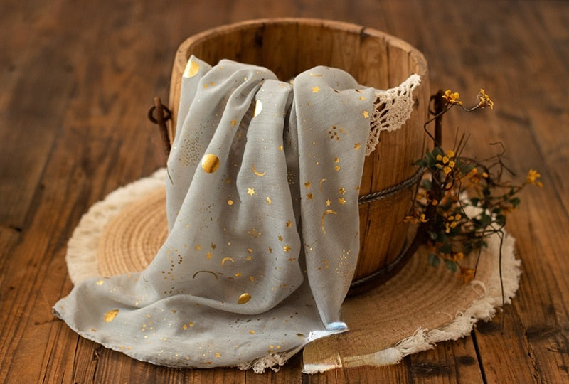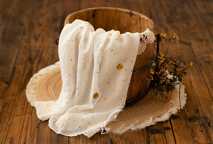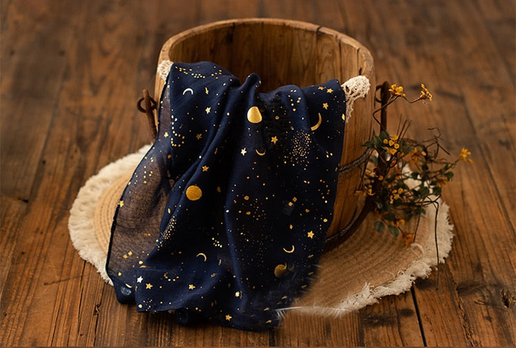 A soft fabric cover with a star and sparkling moon print will add a highlight to the photo backdrop for your baby. This fabric cover can make a baby swaddle and the material does not affect the baby's delicate skin.
